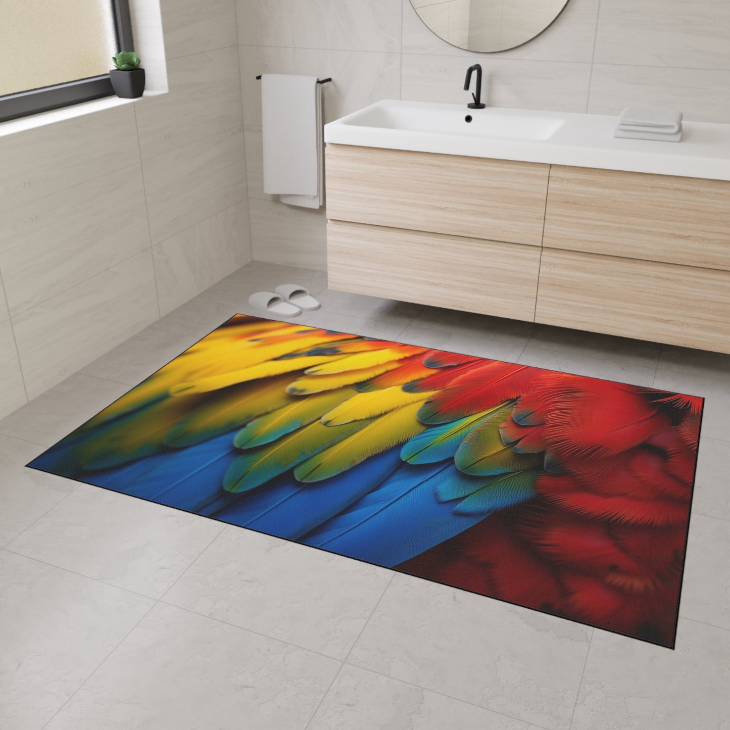 Heavy Duty Floor Mat, 5 Sizes – Tropical Area Rug for Home Décor / Macaw Feathers