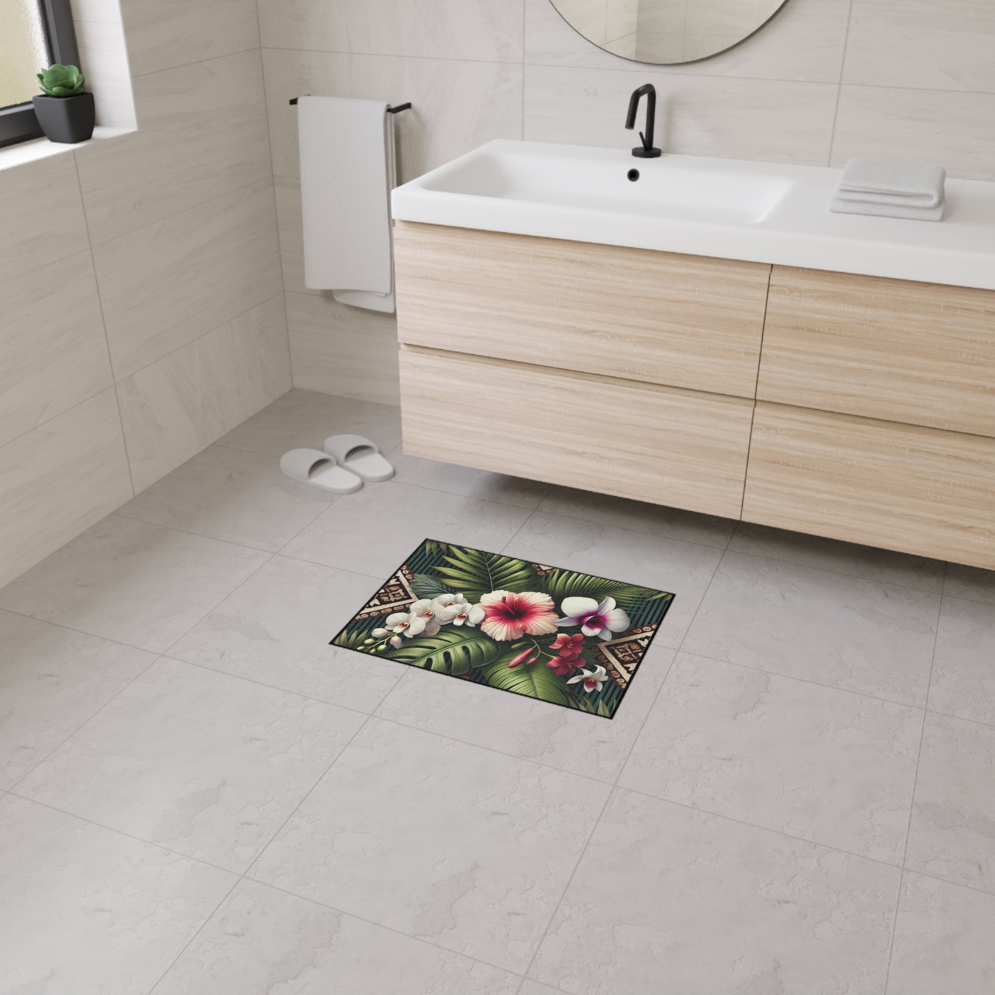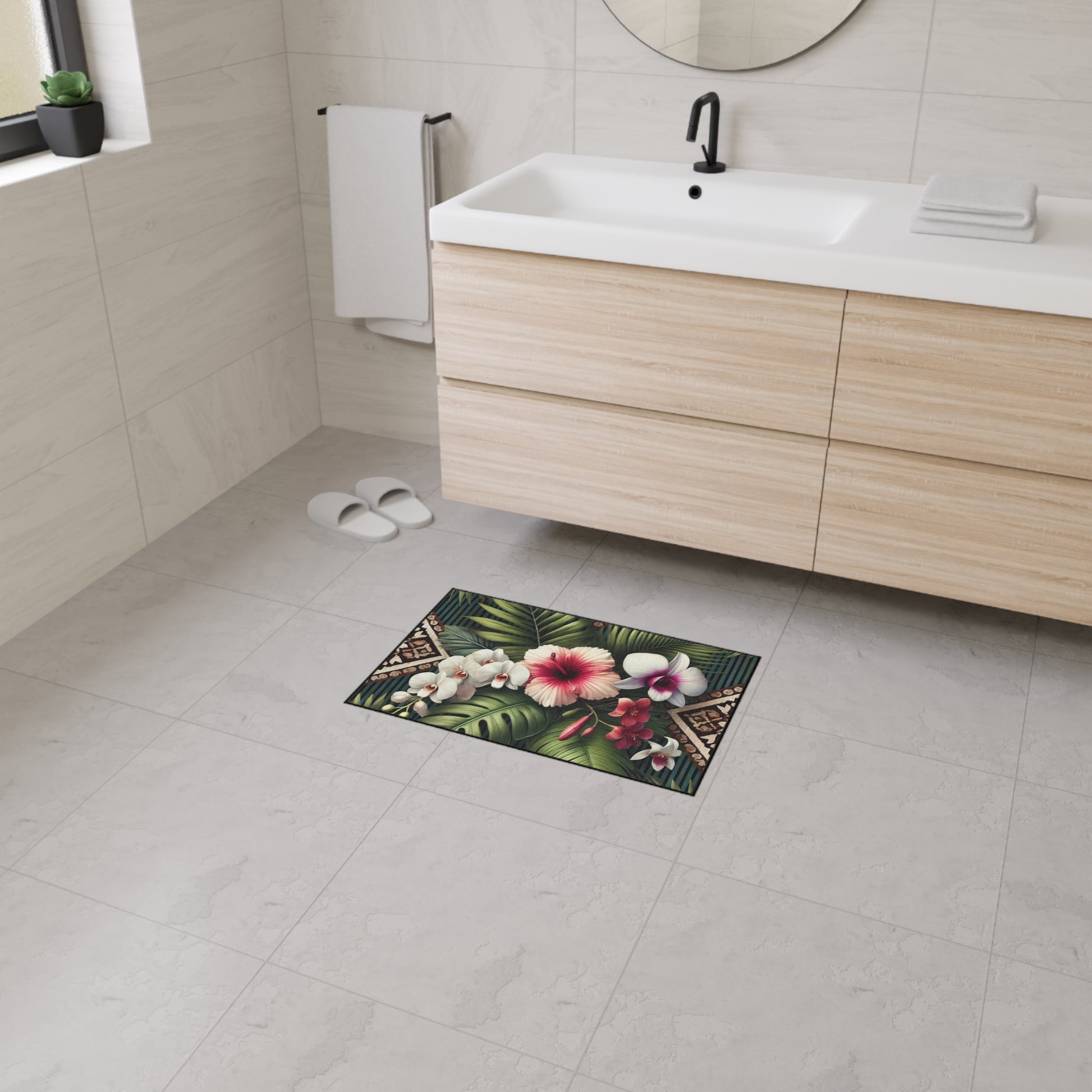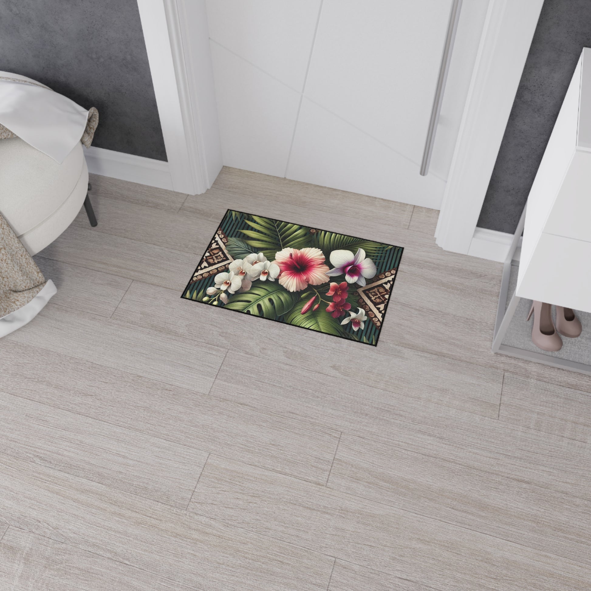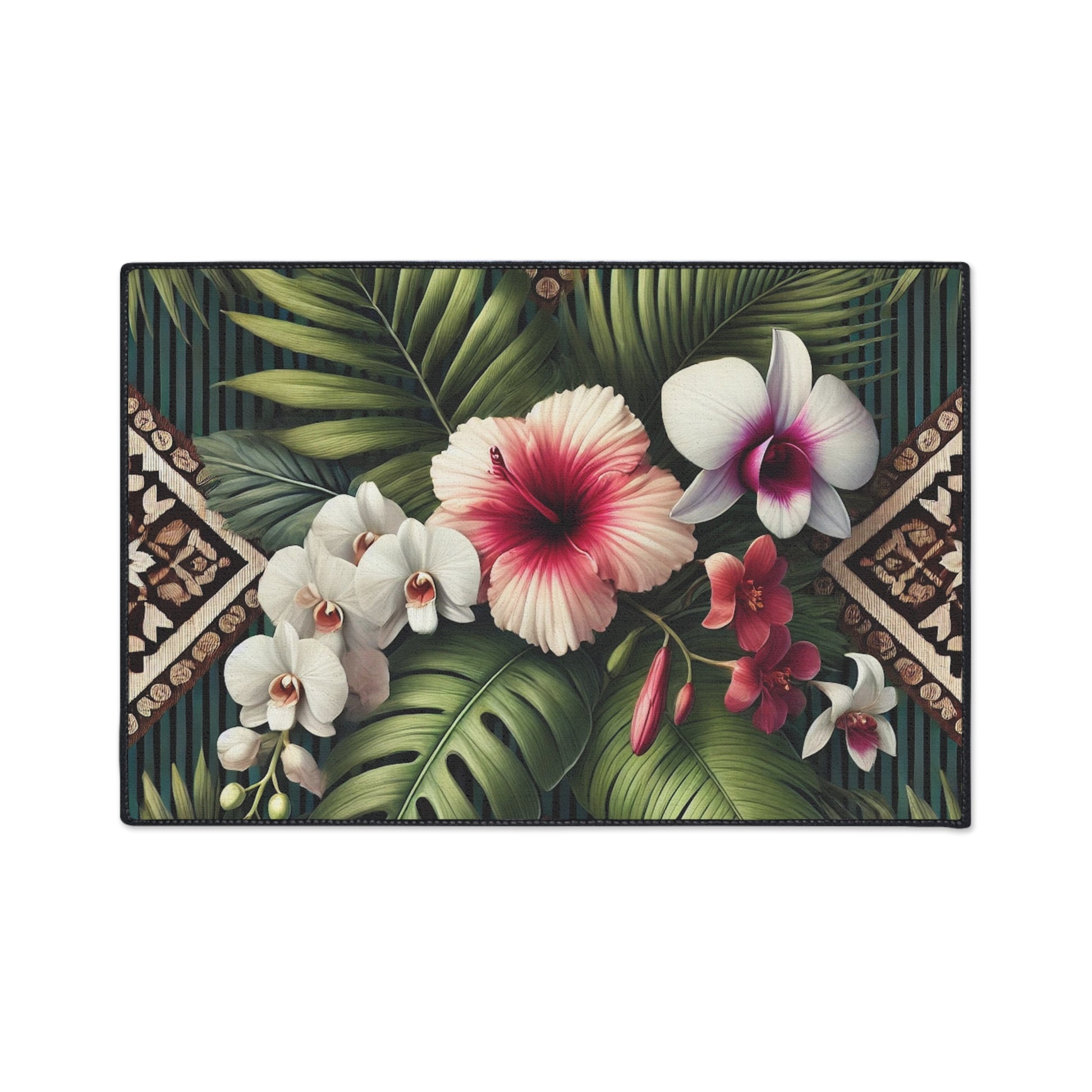 Heavy Duty Floor Mat, 5 Sizes – Tropical Area Rug for Home Décor / Tiki Orchids