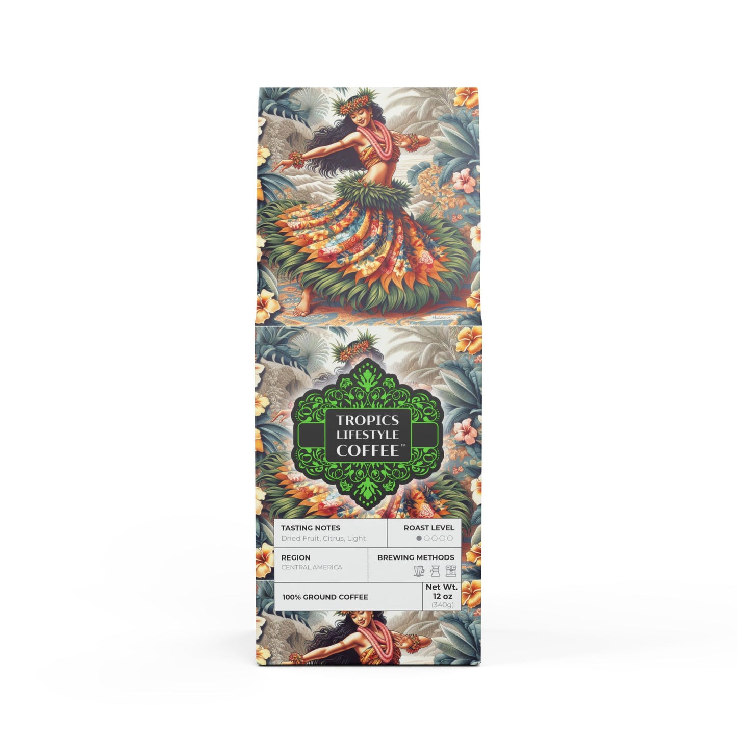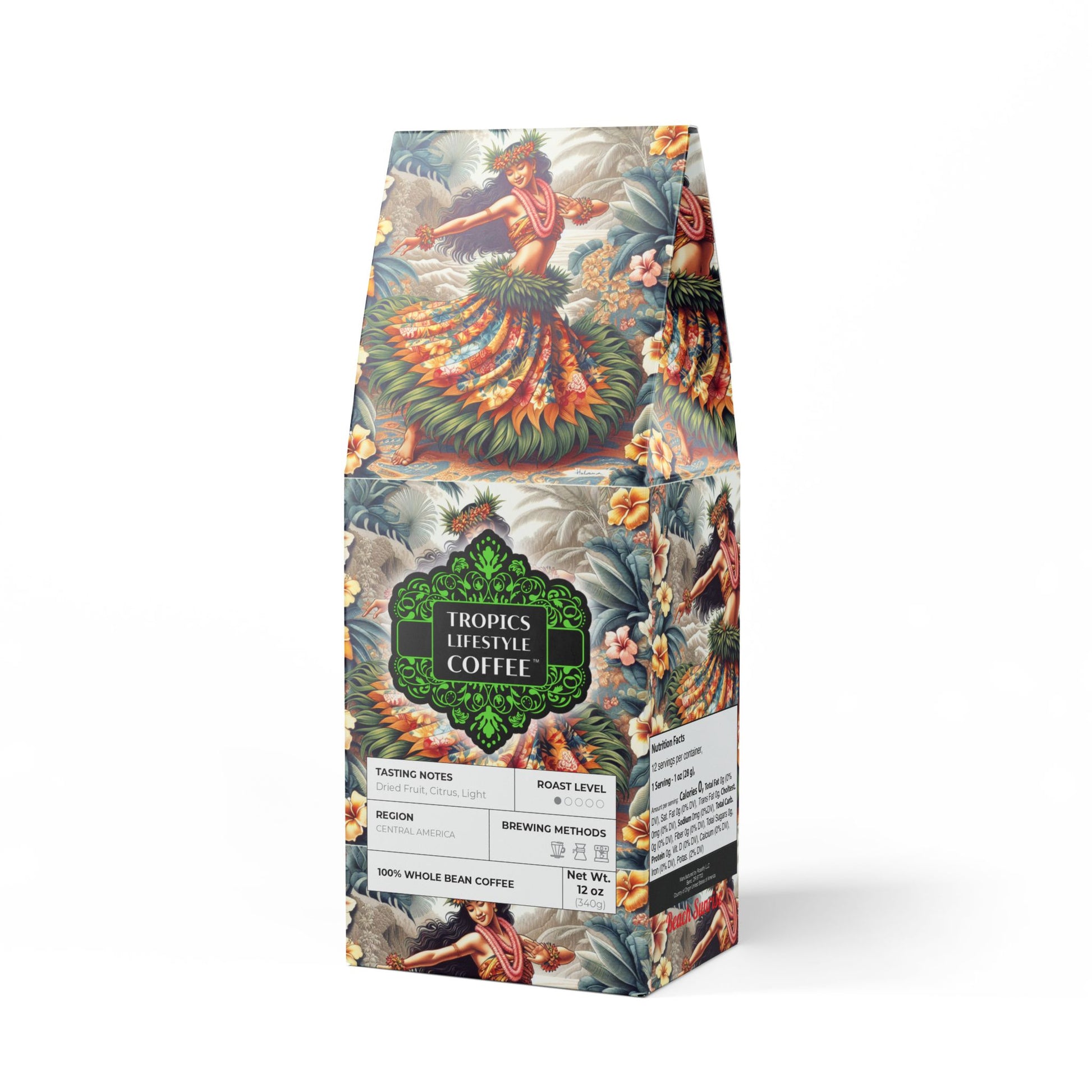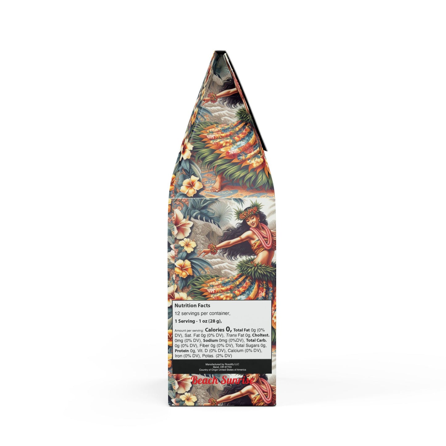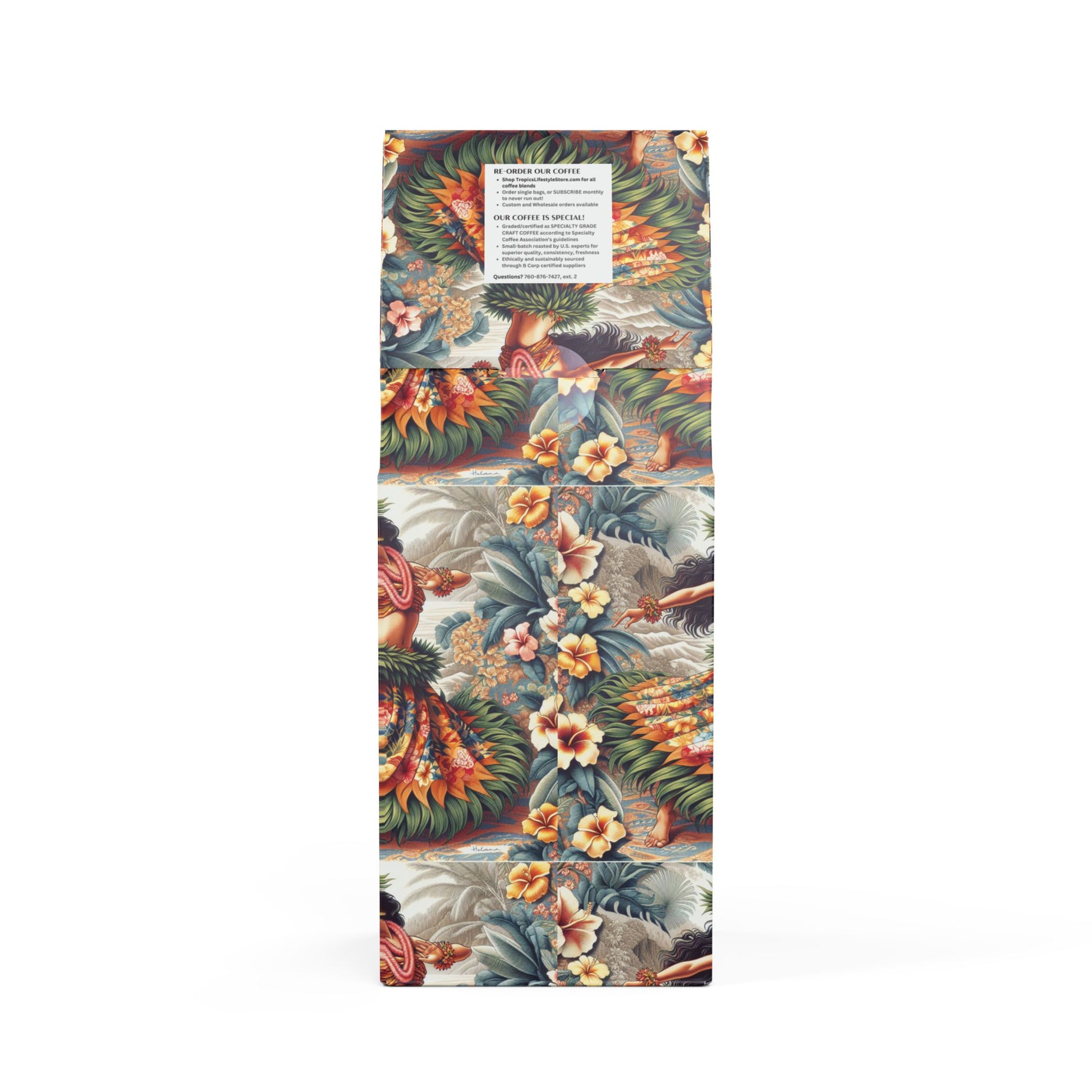 The Beach Sunrise Blend™ is a light roast from South and Central America that is perfect as a daily staple thanks to its light body. Each cup comes with dried fruit and citrus flavors with hints of milk chocolate and almonds. Perfect for pour-over, Aeropress, Espresso, or a delightful cold brew. Available in 12oz packs of whole bean and ground options. Roasted with care right here in the USA and certified as "Specialty Grade Craft Coffee." Top 10% of coffee produced in the world! Limted-edition box art features our original Hawaiian Dancer design. Don't run out! Join our monthly Subscription coffee plan.