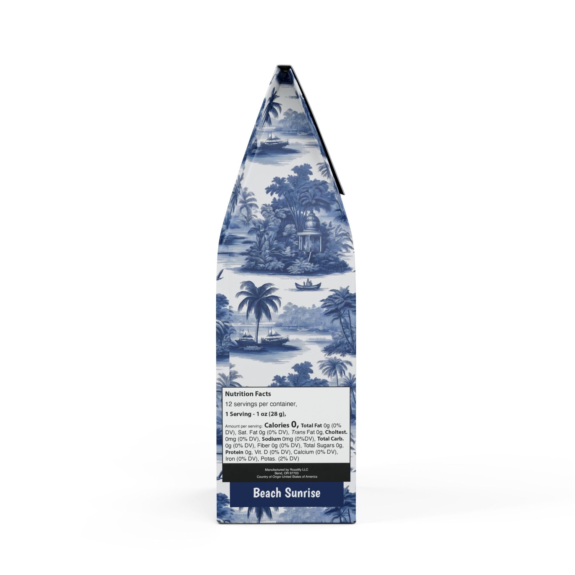 The Beach Sunrise Blend™ is a light roast from South and Central America that is perfect as a daily staple thanks to its light body. Each cup comes with dried fruit and citrus flavors with hints of milk chocolate and almonds. Perfect for pour-over, Aeropress, Espresso, or a delightful cold brew. Available in 12oz packs of whole bean and ground options. Roasted with care right here in the USA and certified as "Specialty Grade Craft Coffee." Top 10 percent of all coffee in the world! Limited-edition box art features our original Tropical Toile design, evoking feelings of a dreamy tropical destination with plenty of lovely toile images of palm trees, people, islands, ships and more. Don't run out! Join our monthly Subscription coffee plan.