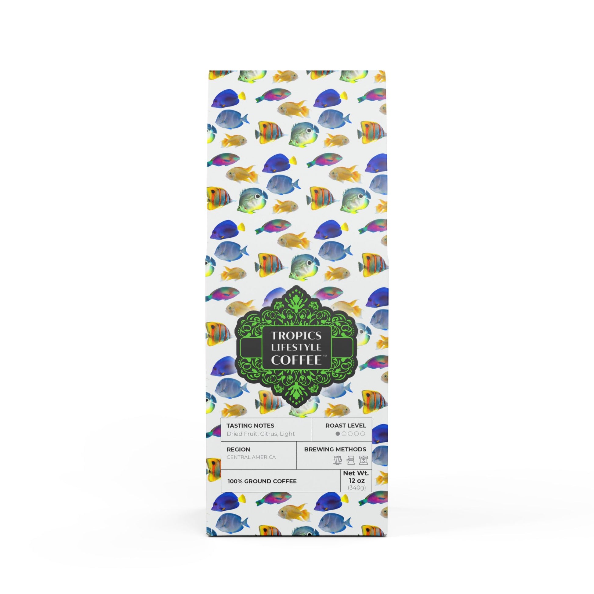 The Beach Sunrise Blend™ is a light roast from South and Central America that is perfect as a daily staple thanks to its light body. Each cup comes with dried fruit and citrus flavors with hints of milk chocolate and almonds. Perfect for pour-over, Aeropress, Espresso, or a delightful cold brew. Available in 12oz packs of whole bean and ground options. Roasted with care right here in the USA. and graded/certified as "Specialty Grade Craft Coffee." Top 10 percent of all coffee worldwide. Limited-edition bag art features our original School of Fish design, with all kinds of colorful fish living their best lives in a tropical ocean. Don't run out! Join our monthly Subscription coffee plan.