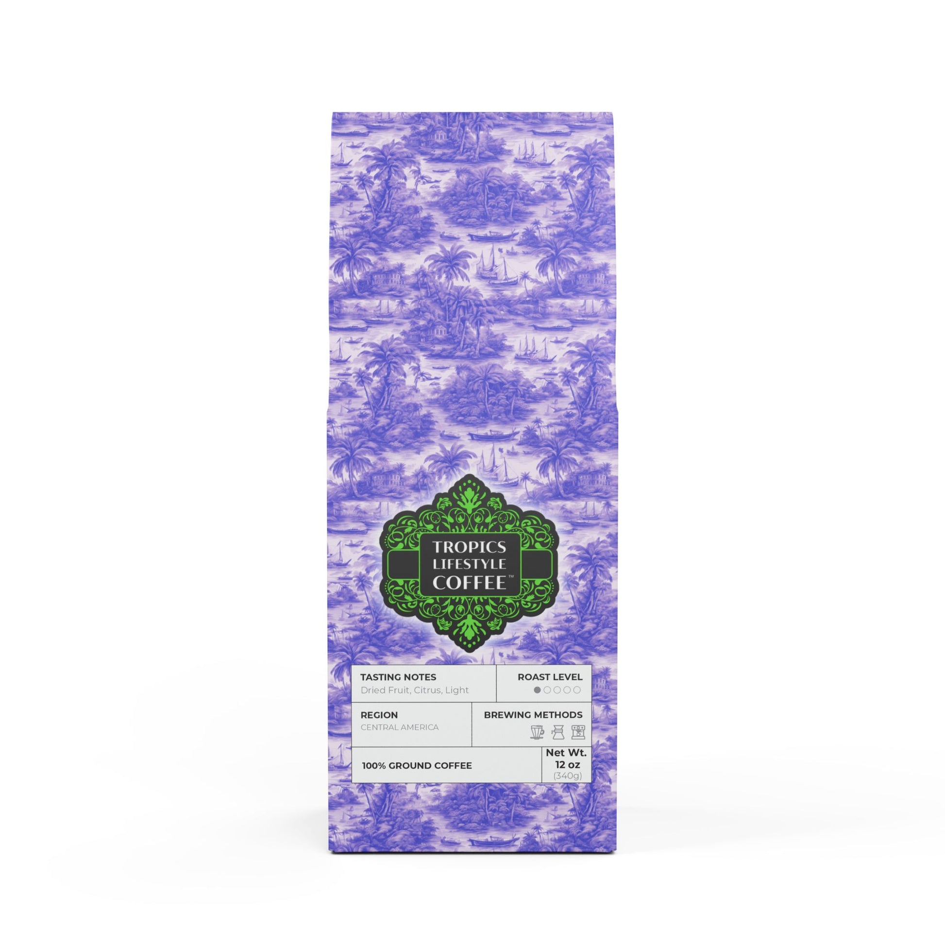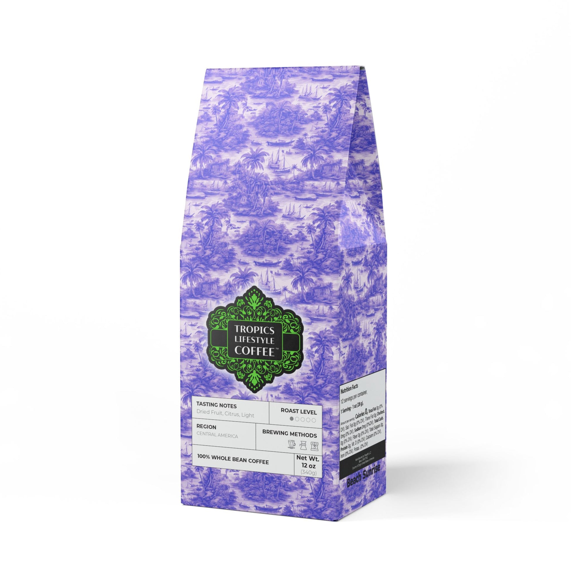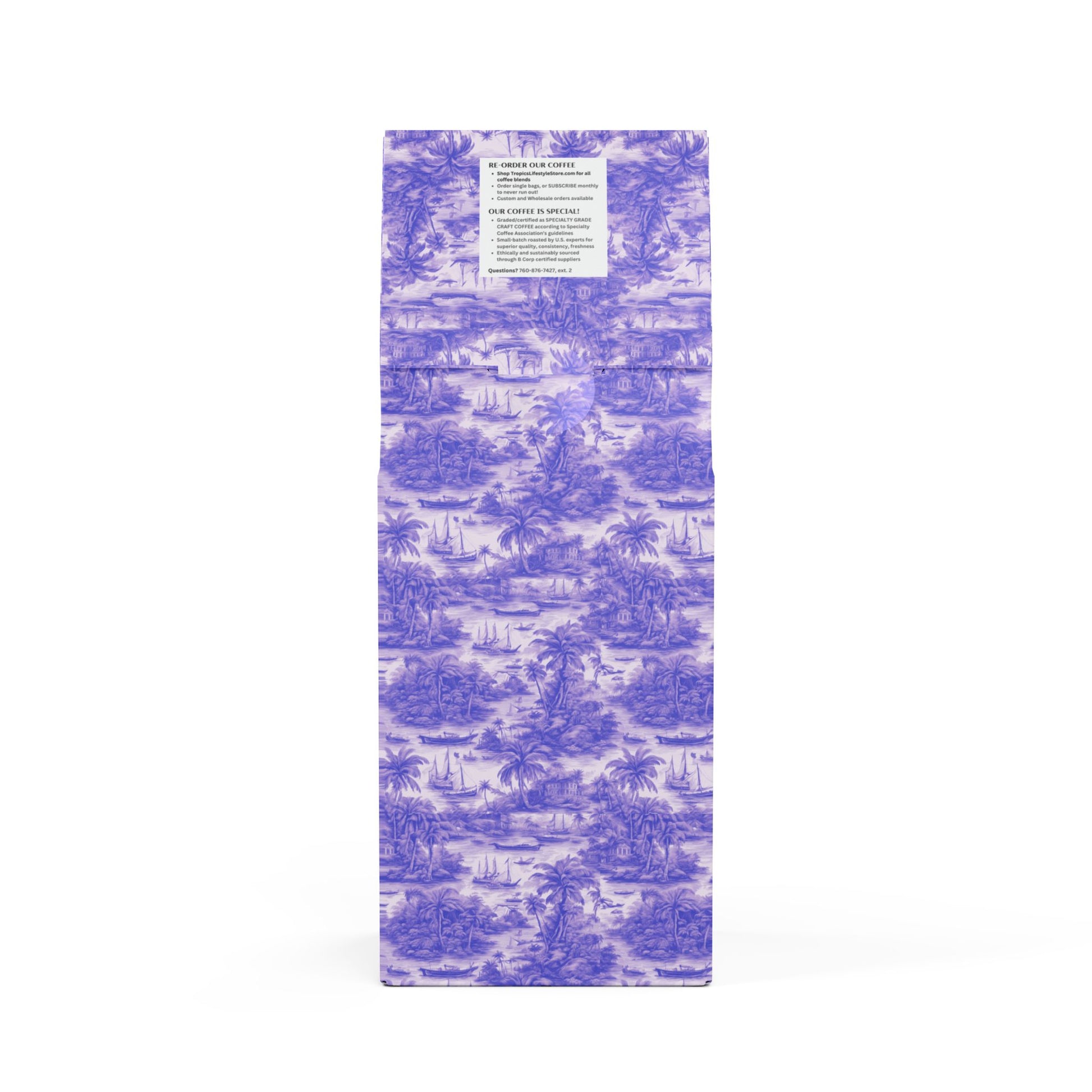 Beach Sunrise Blend™ (Light Roast) Specialty Grade Craft Coffee / Tropical Toile, Purple