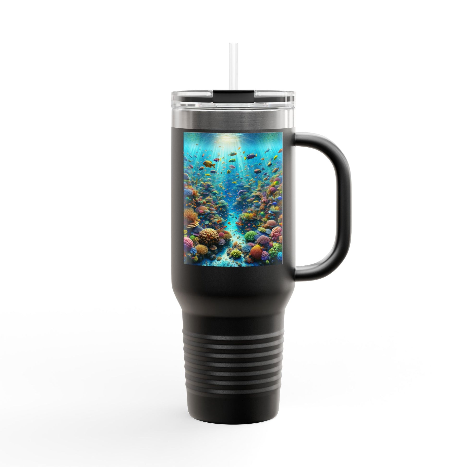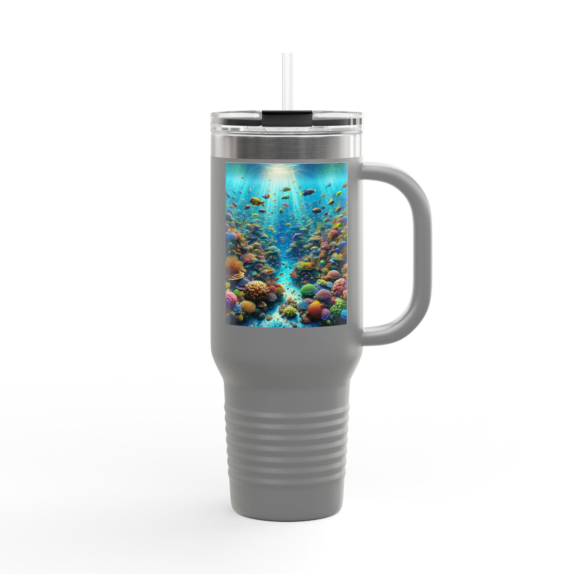 Insulated Travel Mug, 40oz / Busy Coral Reef - Perfect for Outdoor Adventures