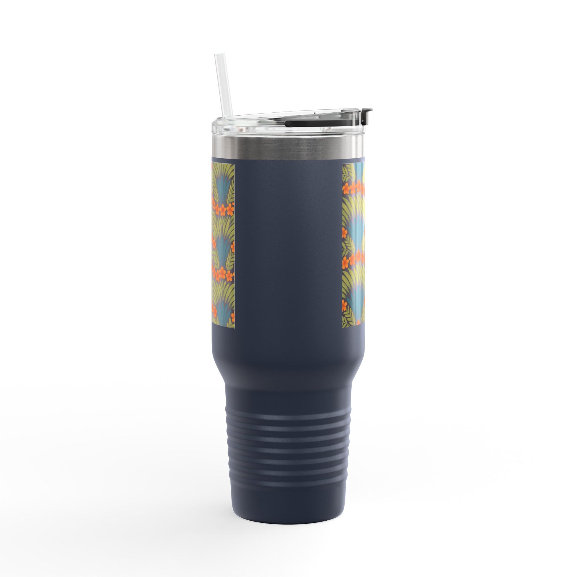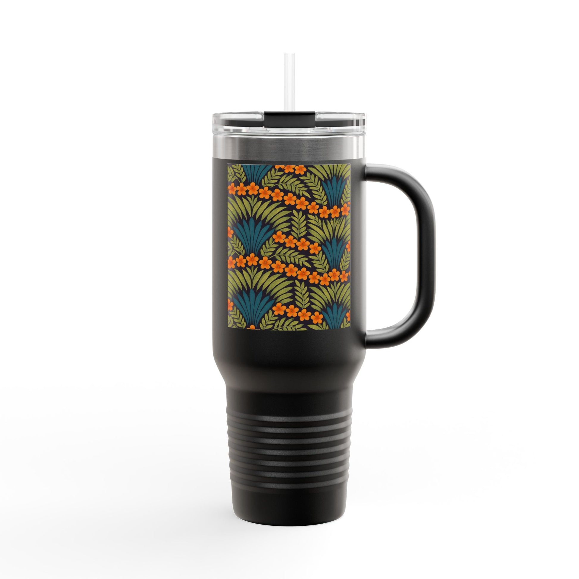 Insulated Travel Mug, 40oz / Hibiscus Fan Dance, Orange - Perfect for Outdoor Adventures