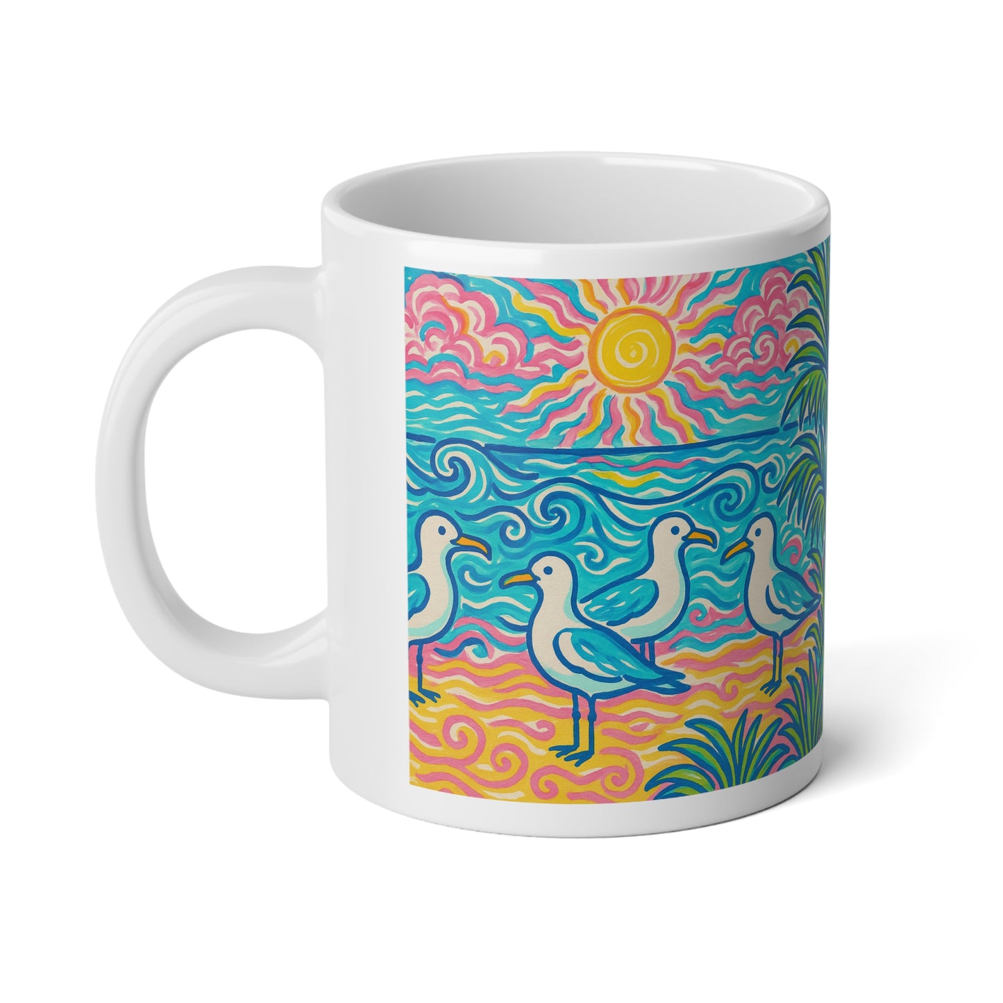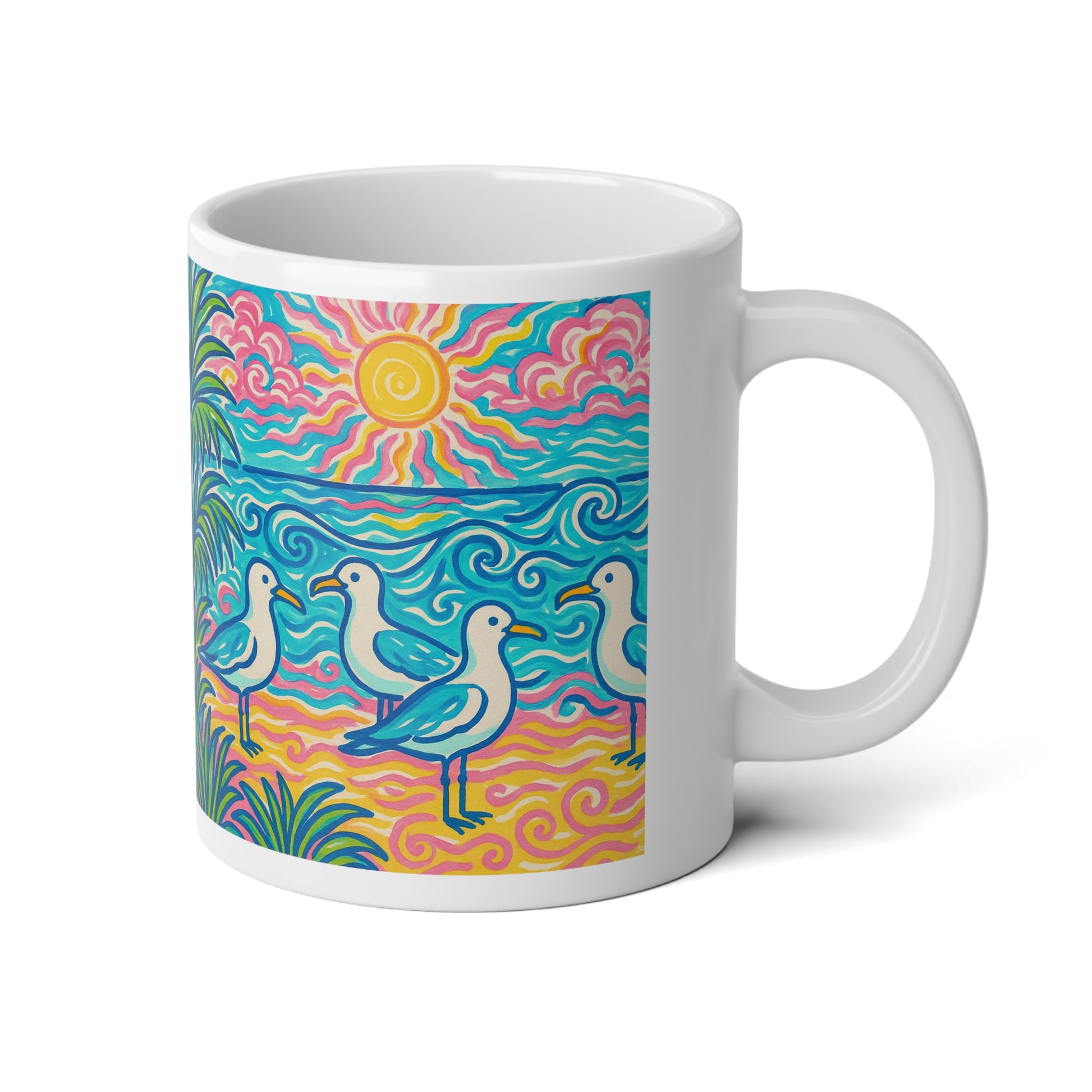 Jumbo Mug, 20oz, Beach Seagulls | Tropical Coffee Cup, Gift for Ocean Lovers