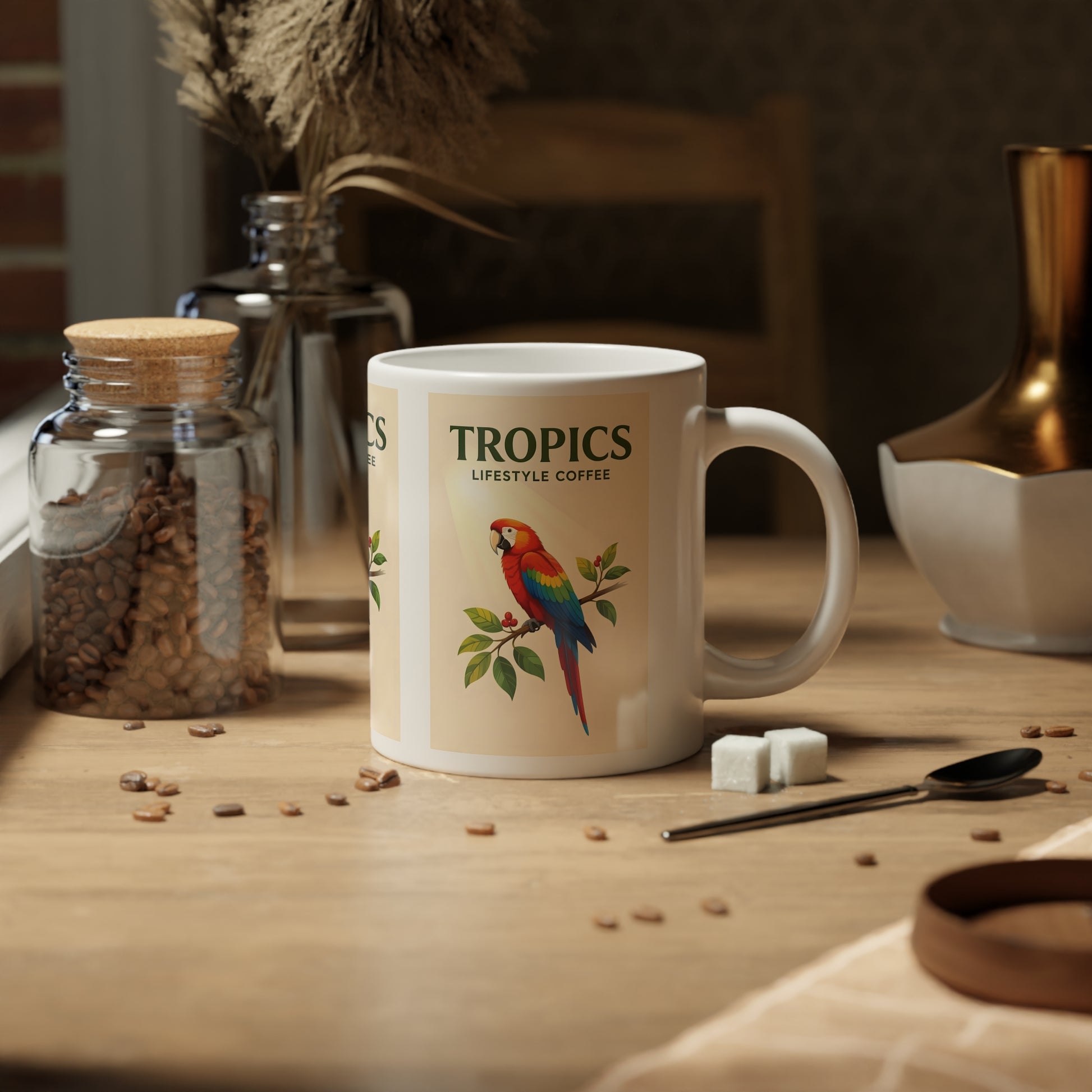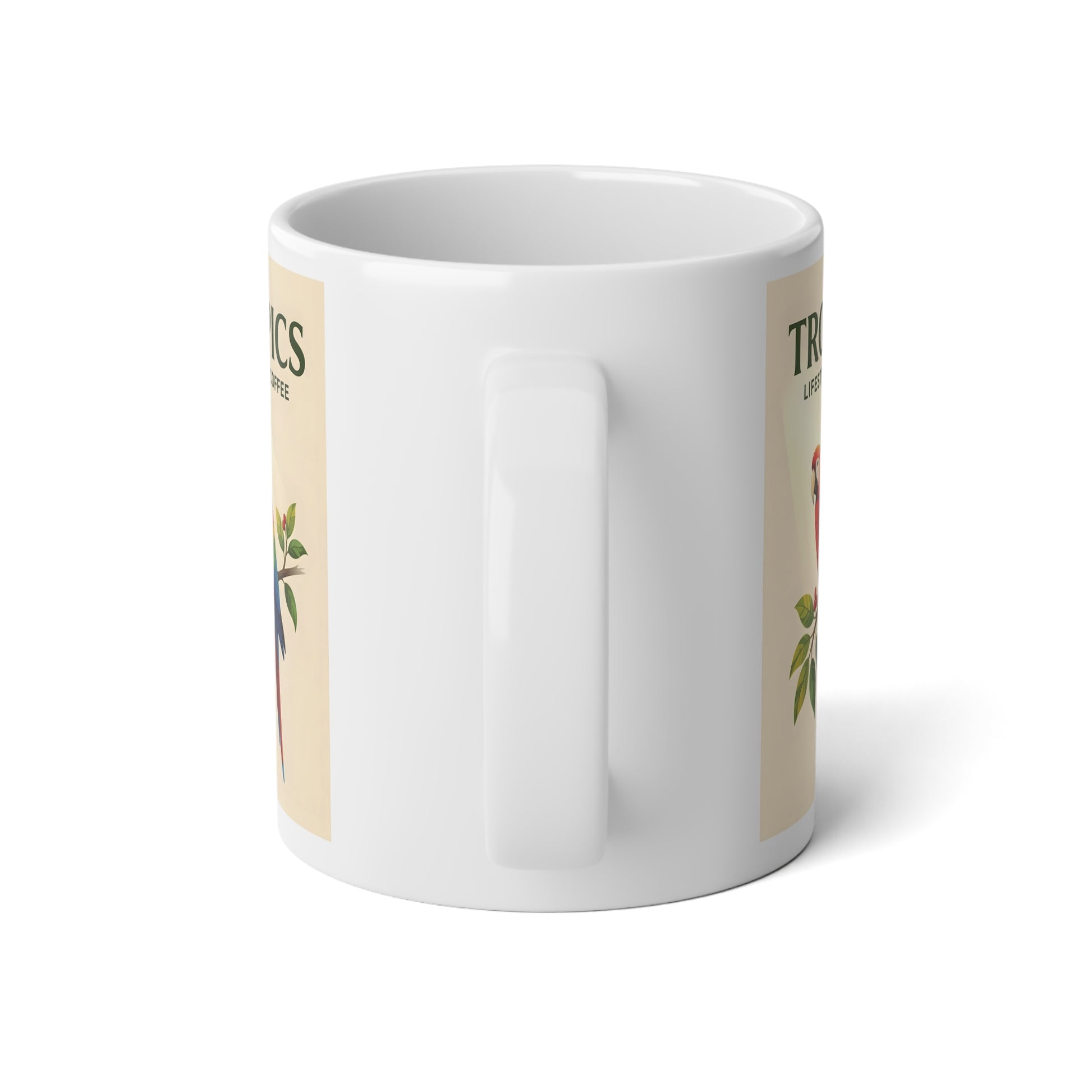 Jumbo Mug, 20oz, Colorful Parrot on Branch TLCoffee Logo | Tropical Coffee Cup