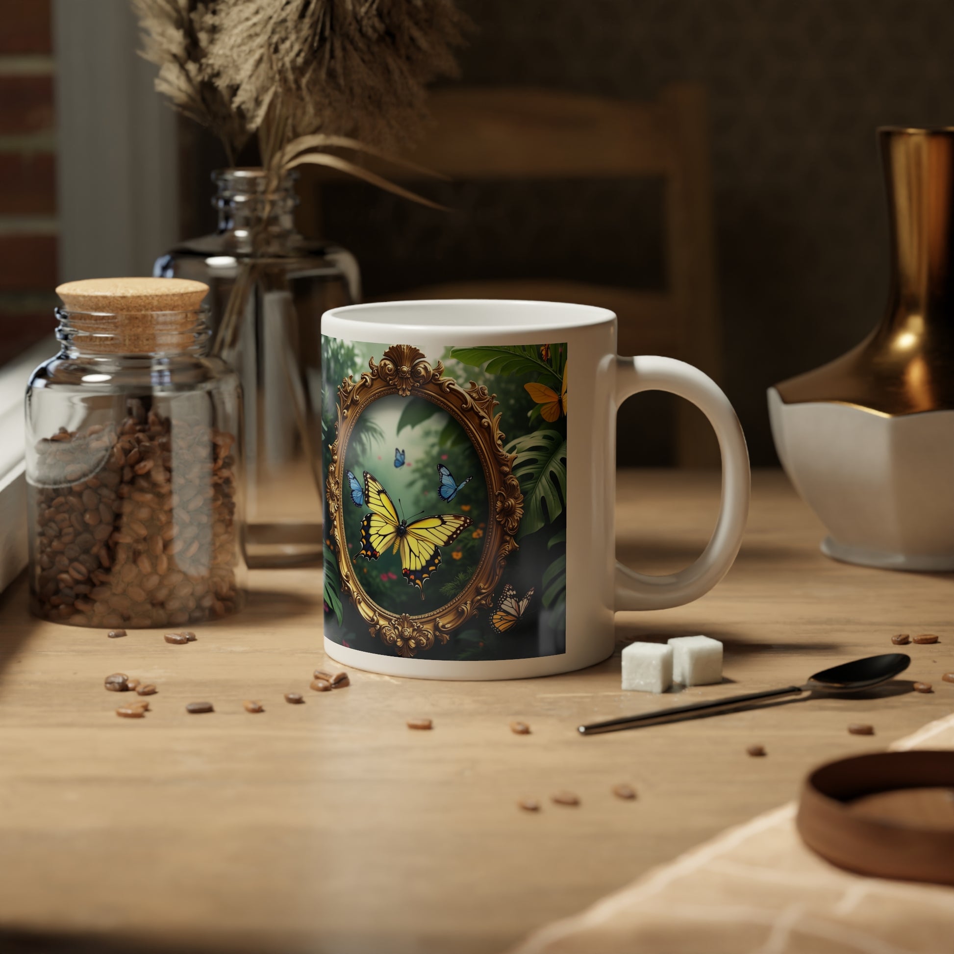 Jumbo Mug, 20oz, Framed Butterfly Party | Tropical Coffee Cup