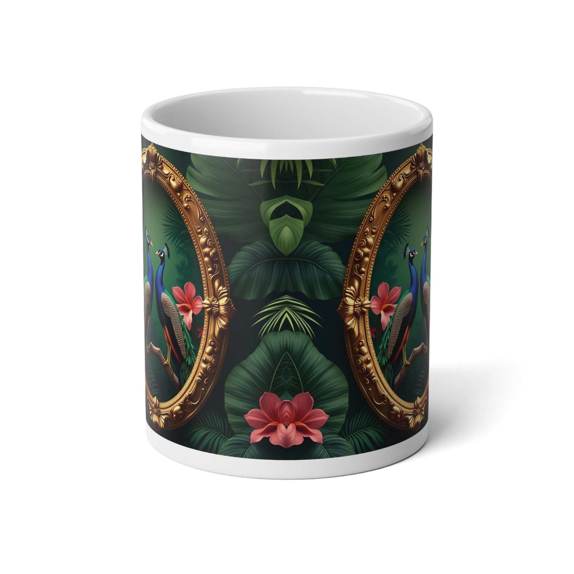 Jumbo Mug, 20oz, Framed Peacocks | Tropical Coffee Cup
