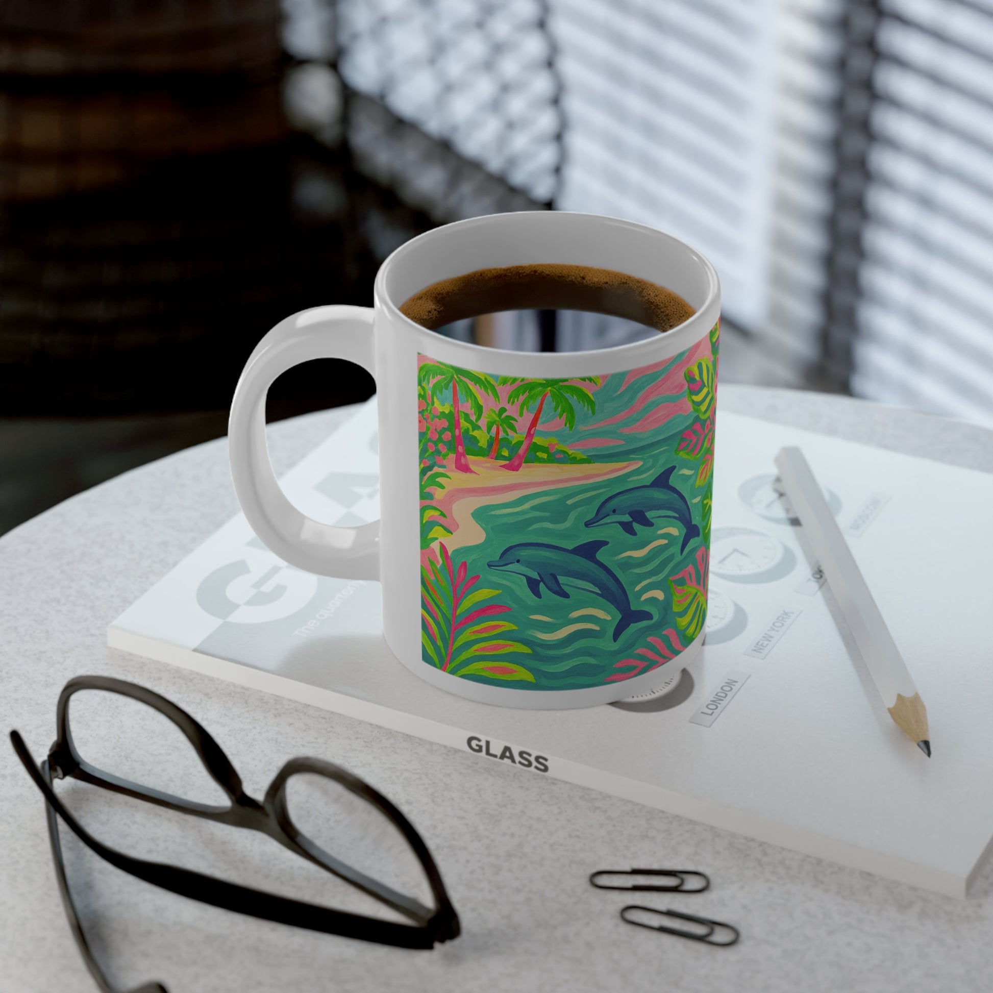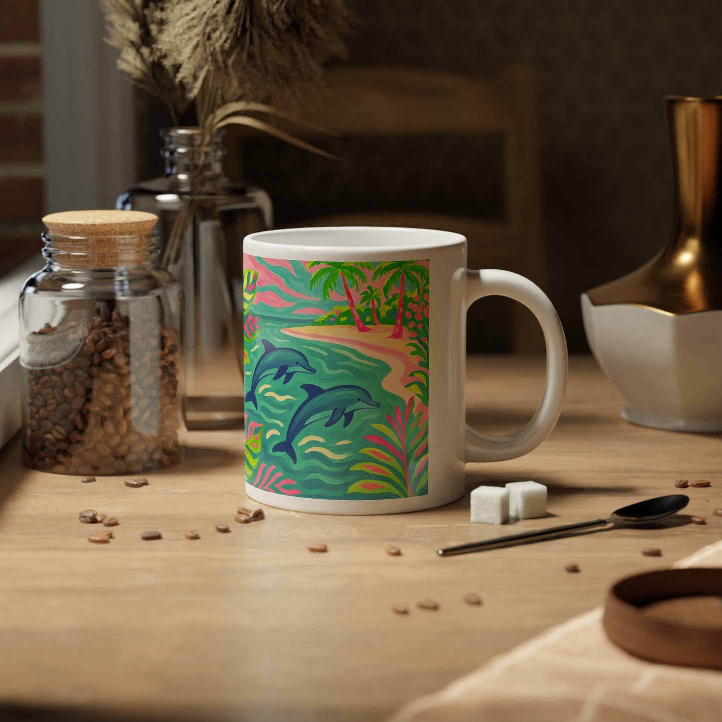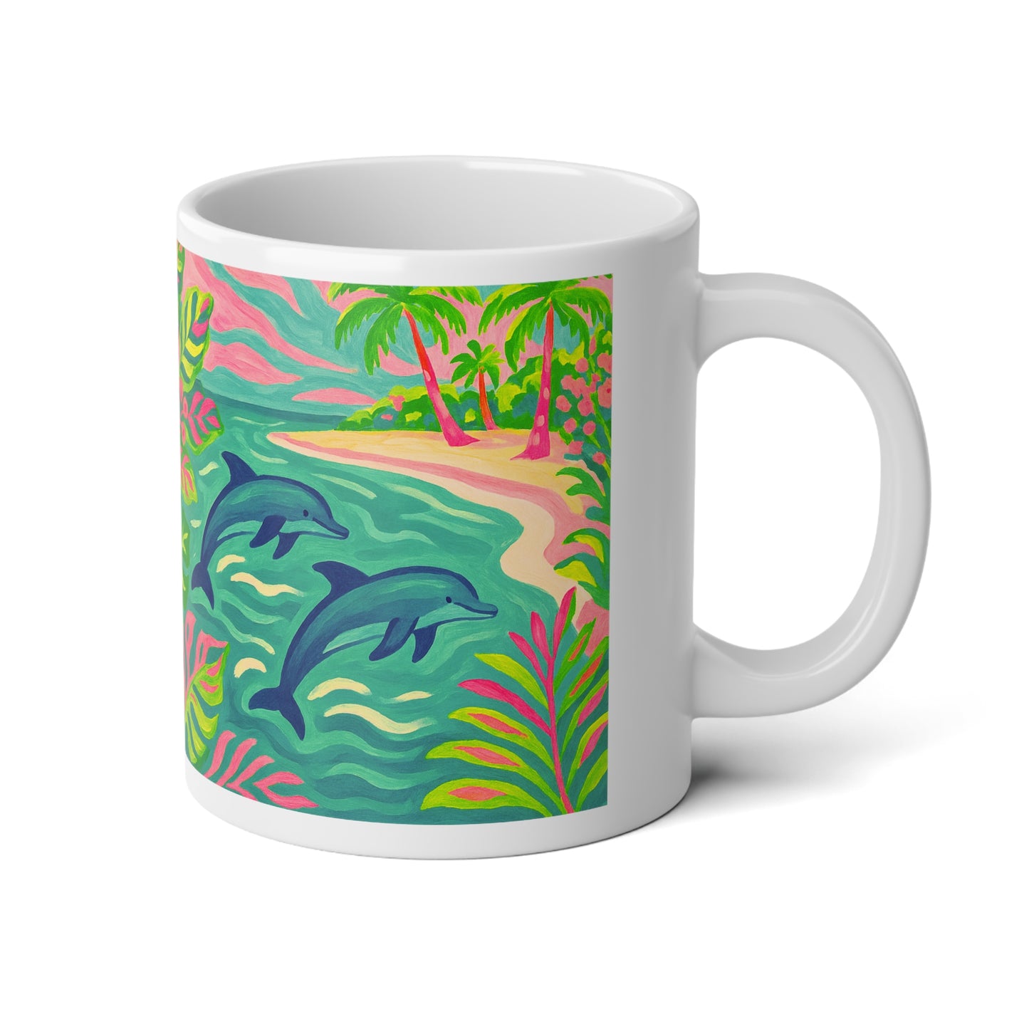 Jumbo Mug, 20oz, Jumping Dolphins | Tropical Coffee Cup