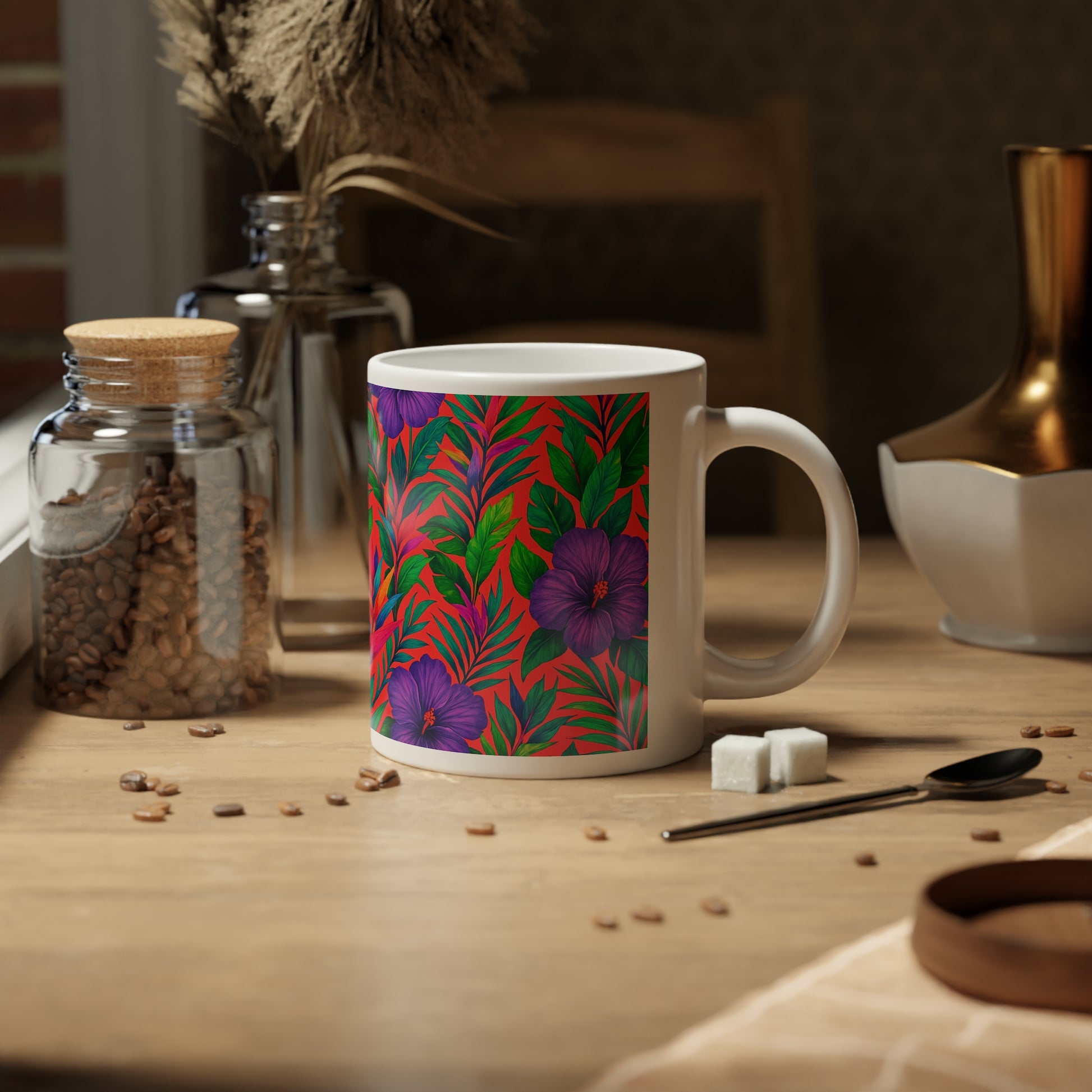 Jumbo Mug, 20oz, Midnight Flower Coral | Tropical Coffee Cup