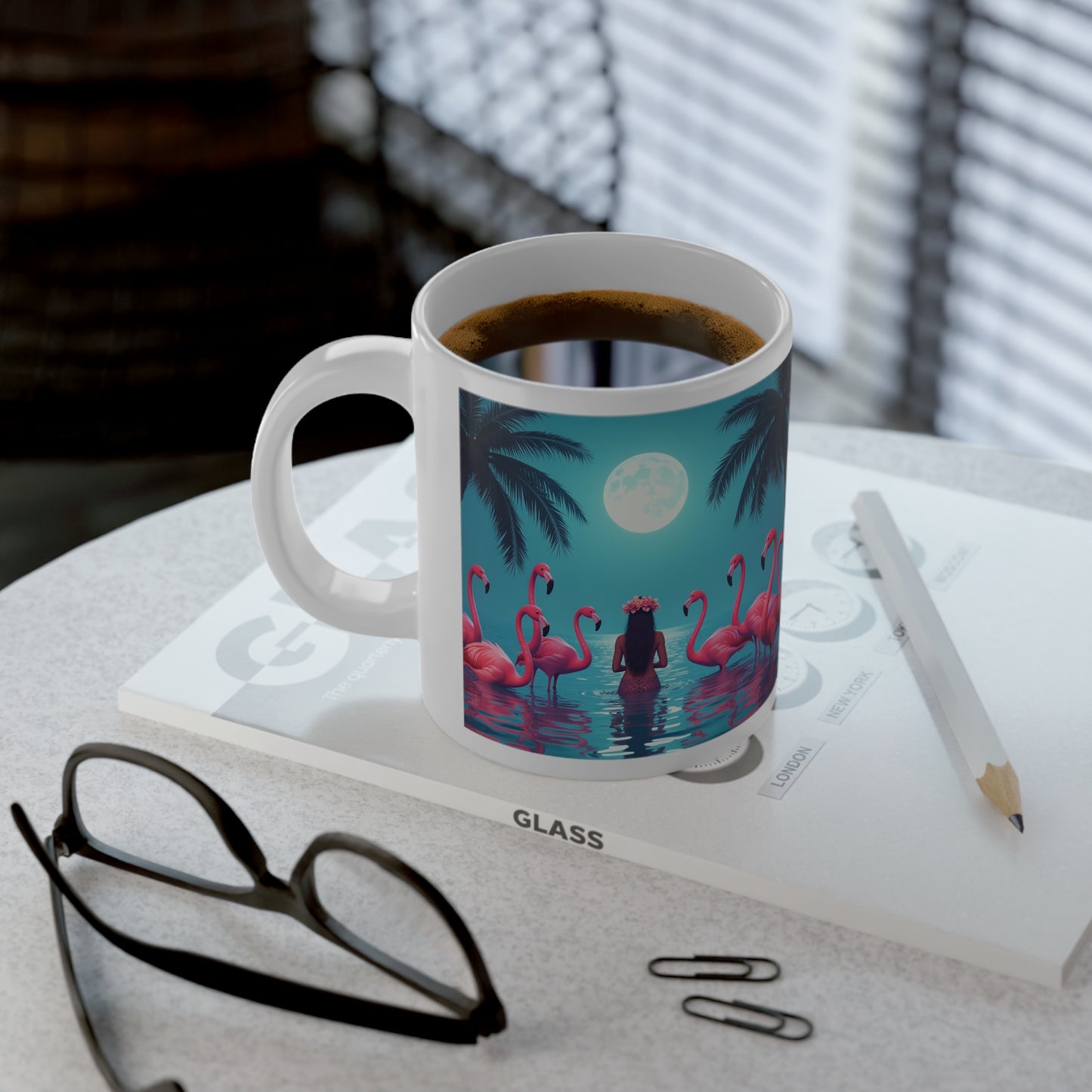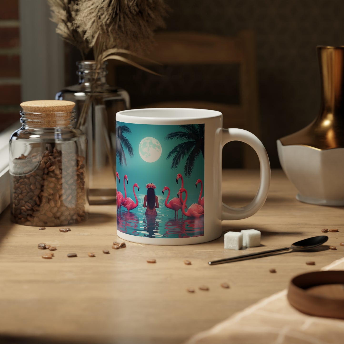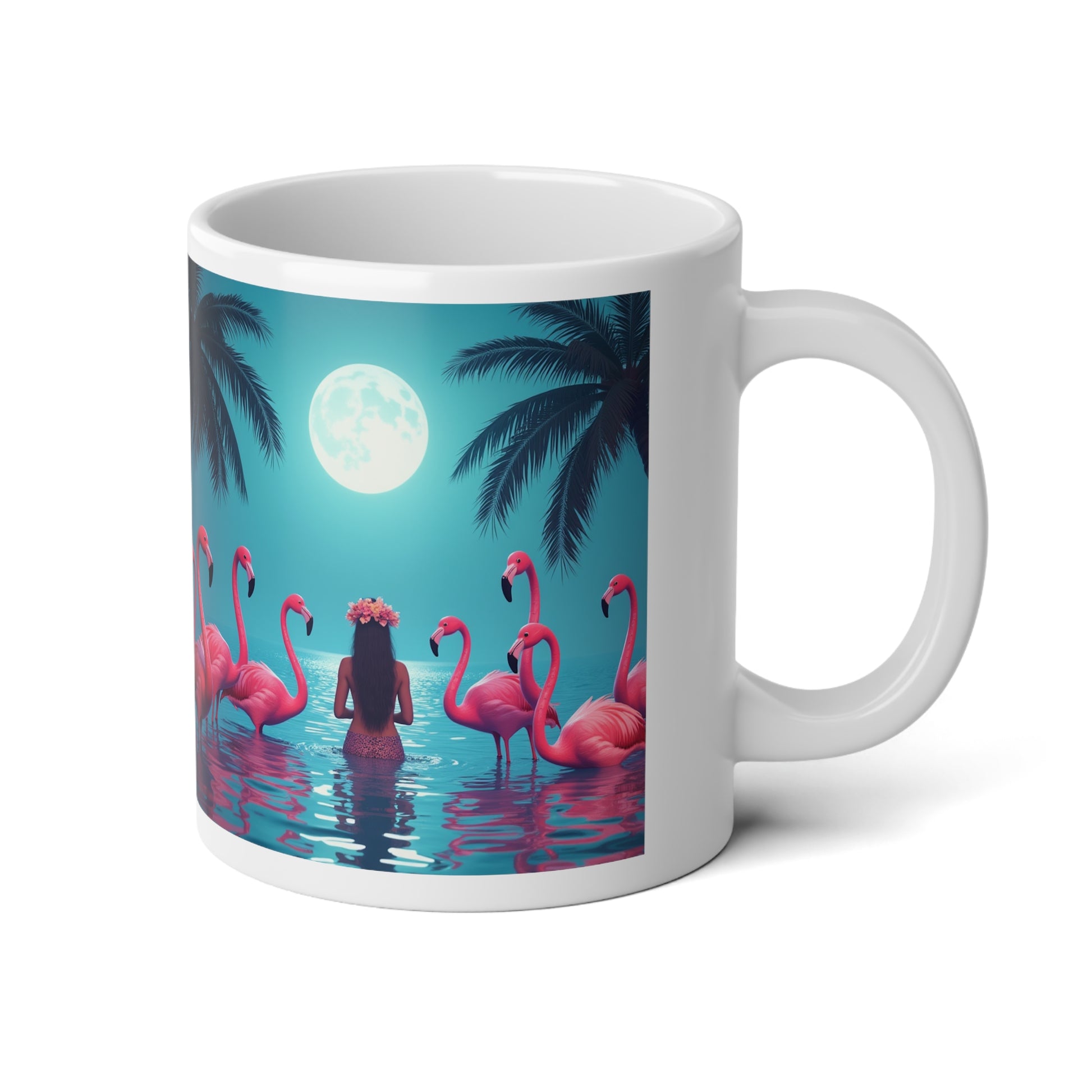 Jumbo Mug, 20oz, Moonlit Mermaid and Flamingos | Tropical Coffee Cup