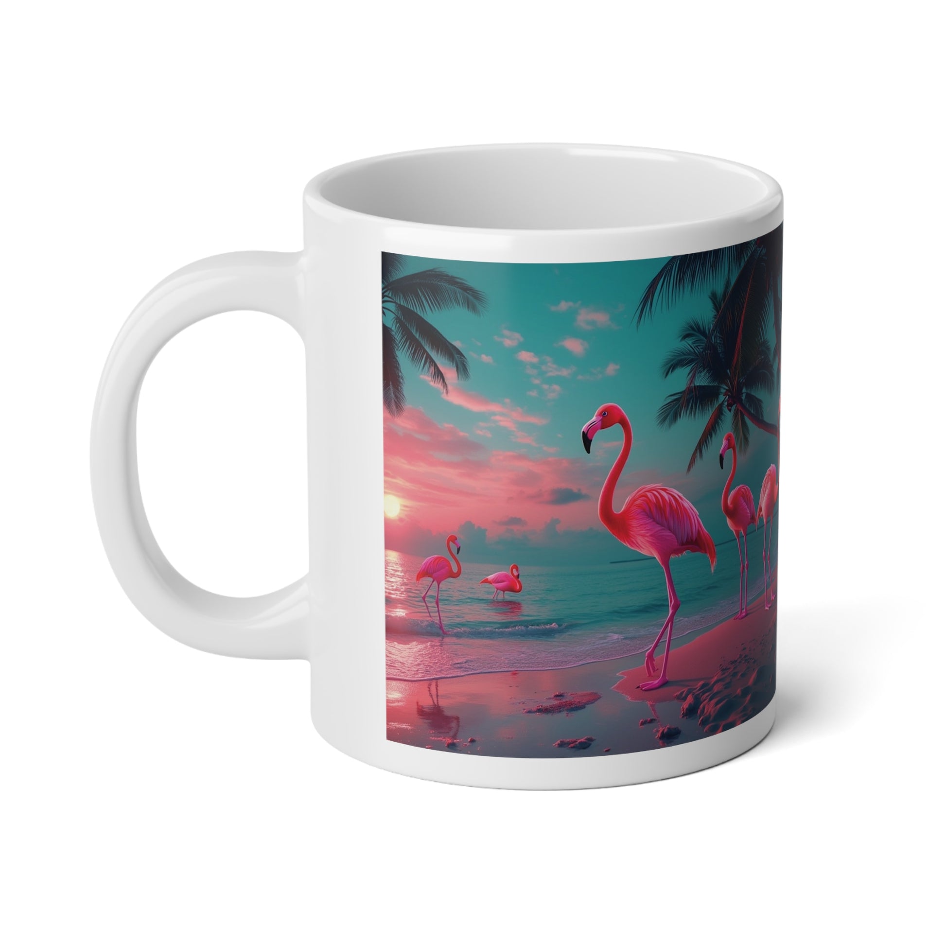 Jumbo Mug, 20oz, Neon Flamingo at Night | Tropical Coffee Cup