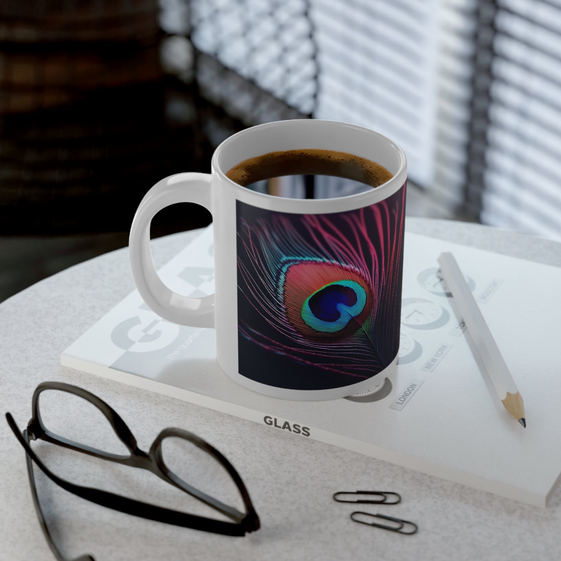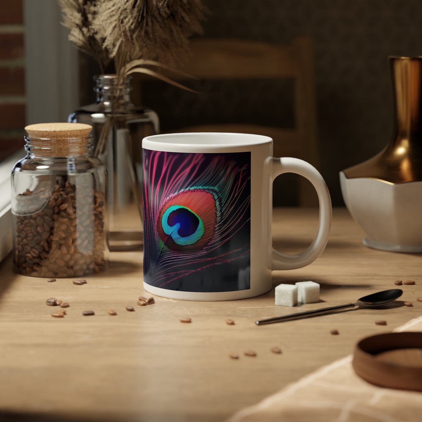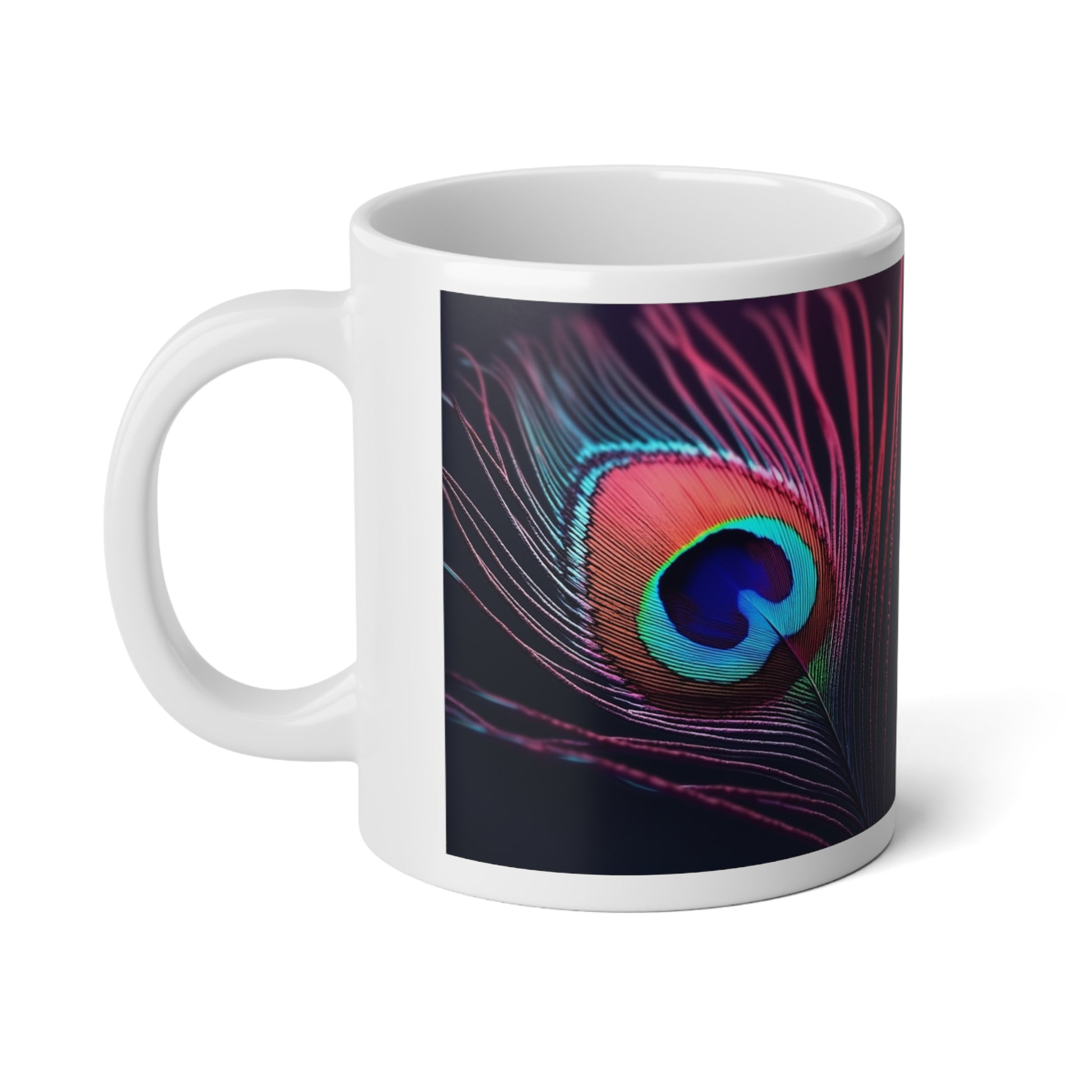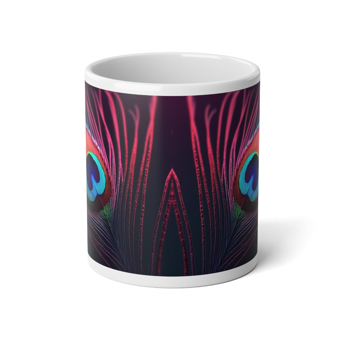 Jumbo Mug, 20oz, Peacock Eye Feather, Magenta | Tropical Coffee Cup