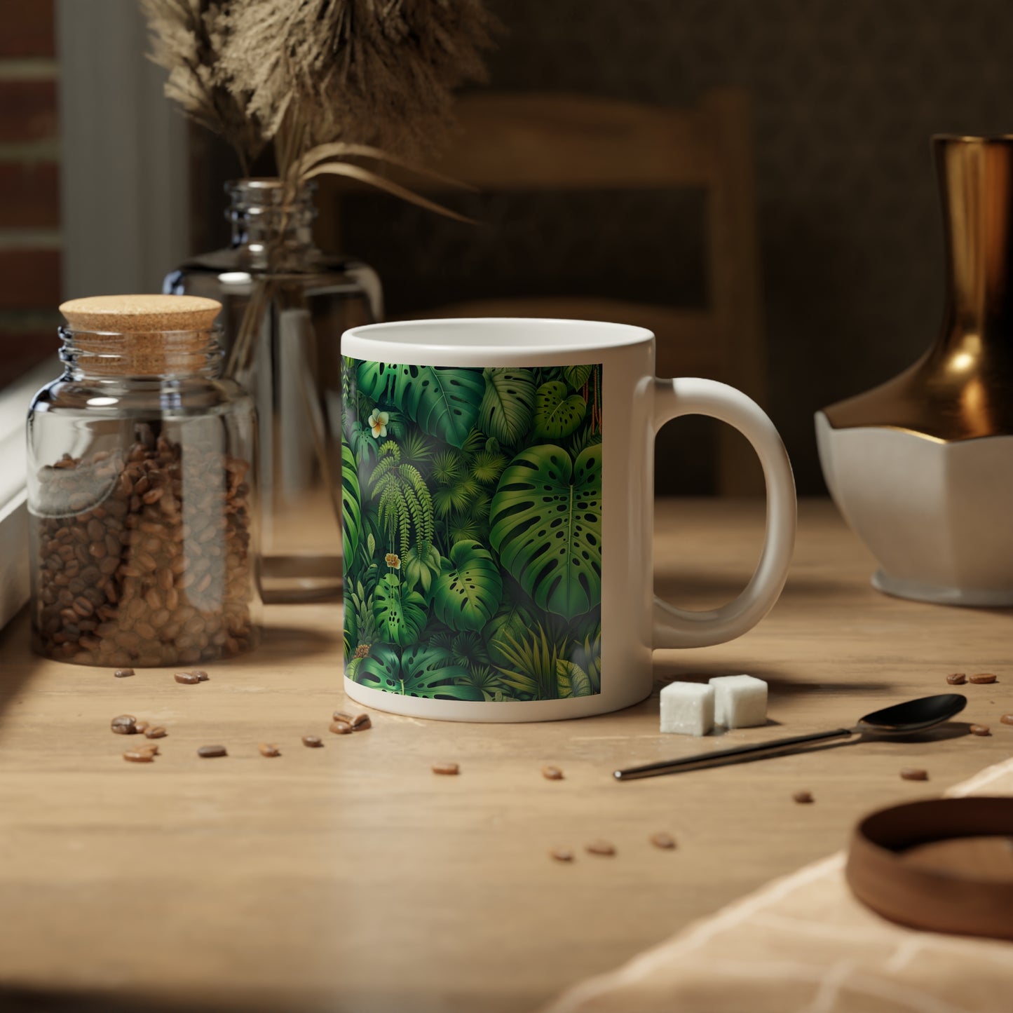 Jumbo Mug, 20oz, Rainforest Greenery | Tropical Coffee Cup, Gift for Plant Lovers