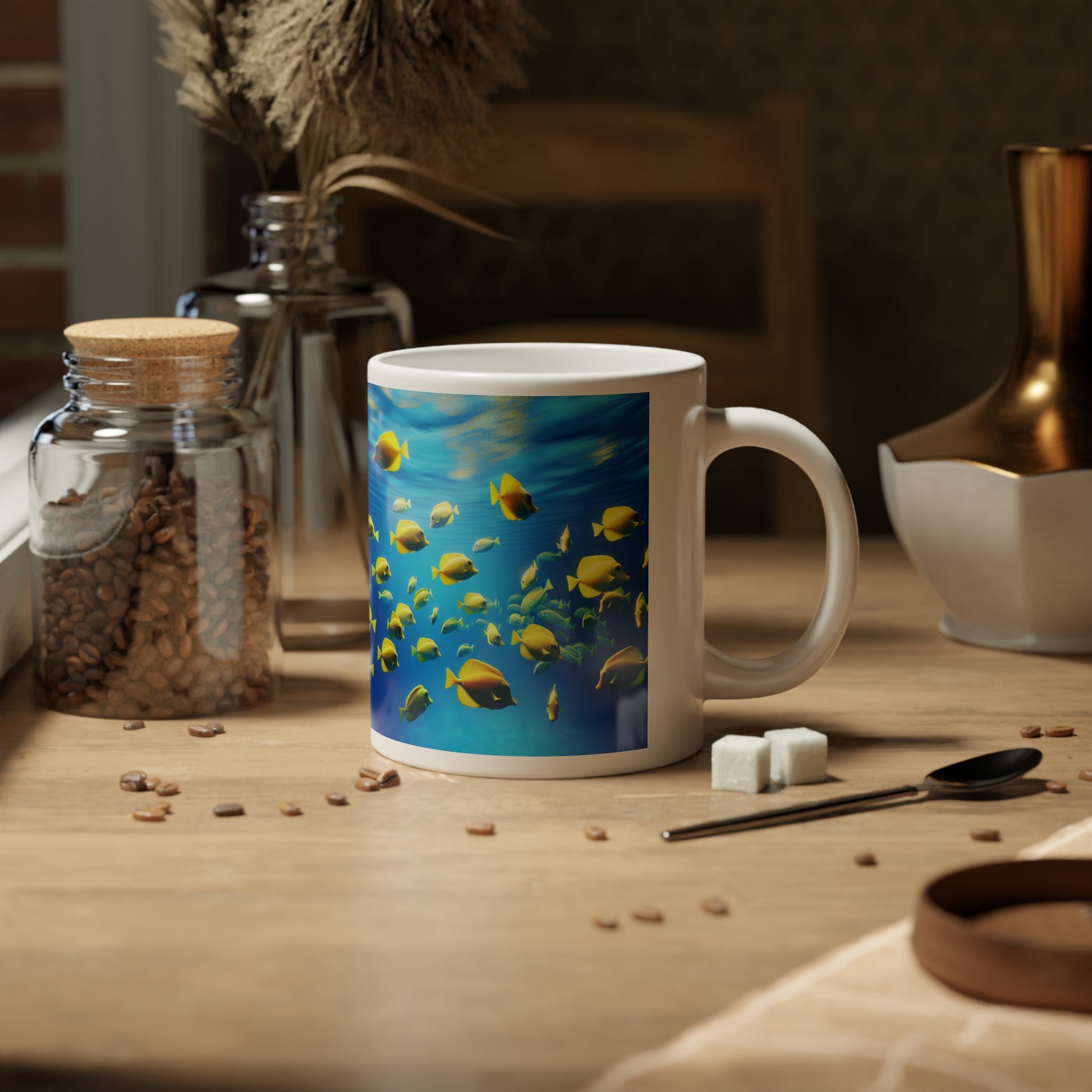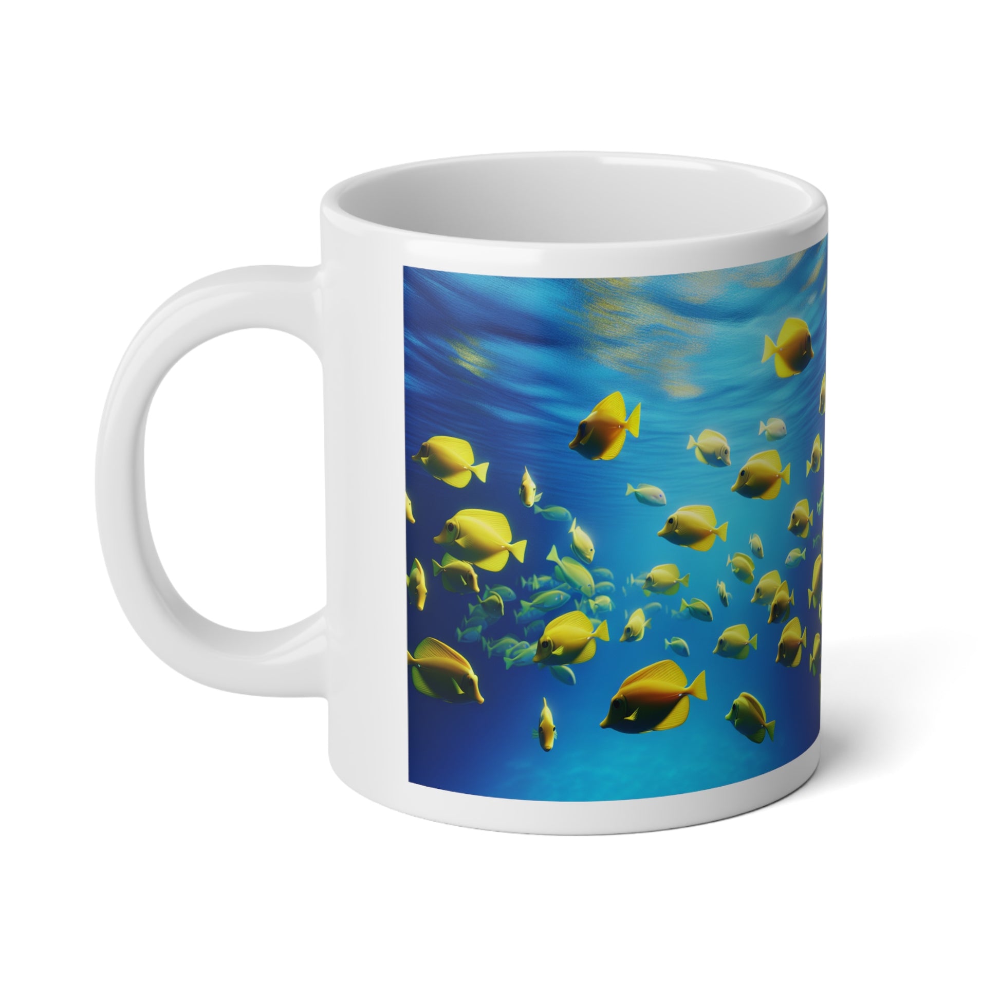 Jumbo Mug, 20oz, School of Fish, Yellow Tangs | Tropical Coffee Cup, Gift for Fish Lovers