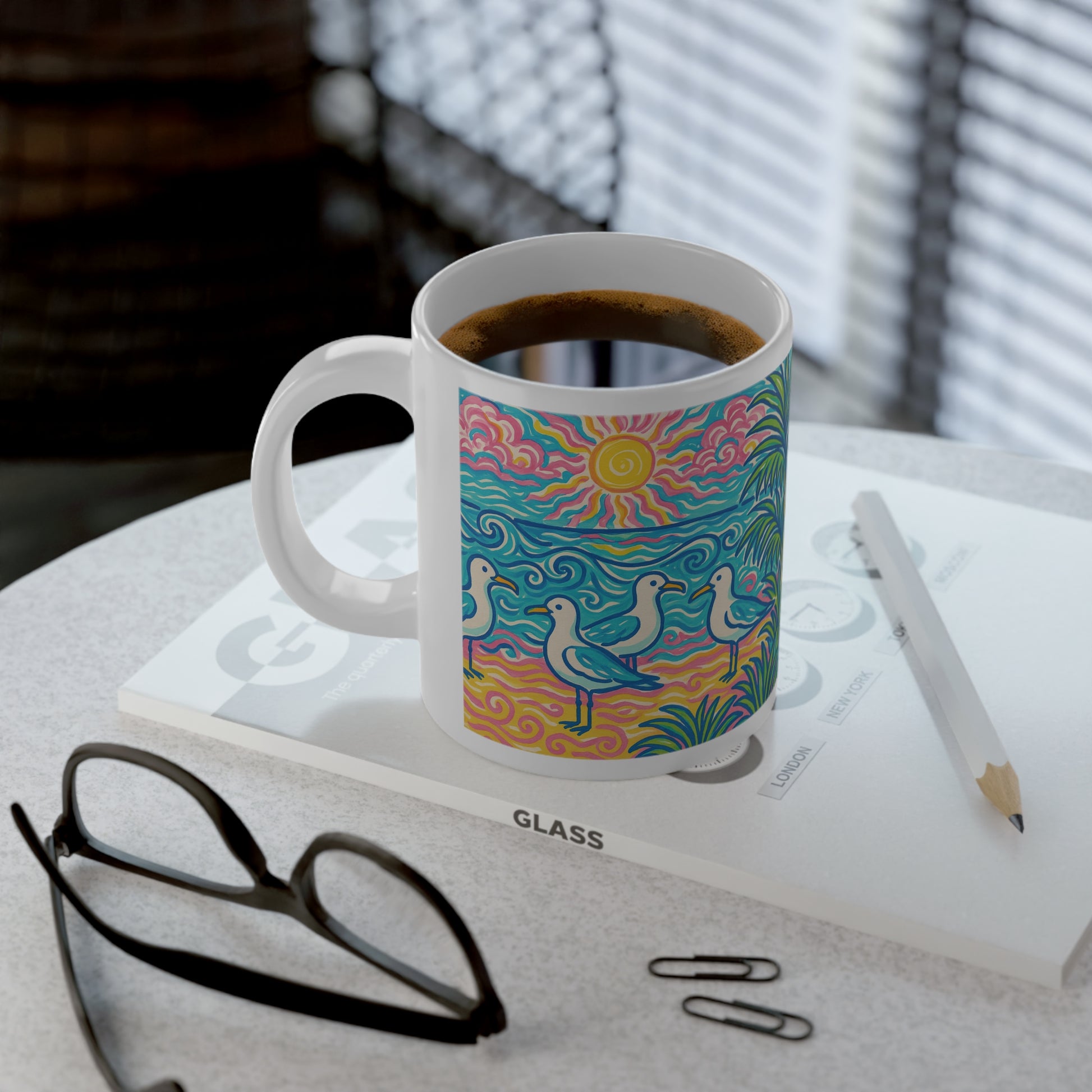 Jumbo Mug, 20oz, Seagulls on Beach | Tropical Coffee Cup