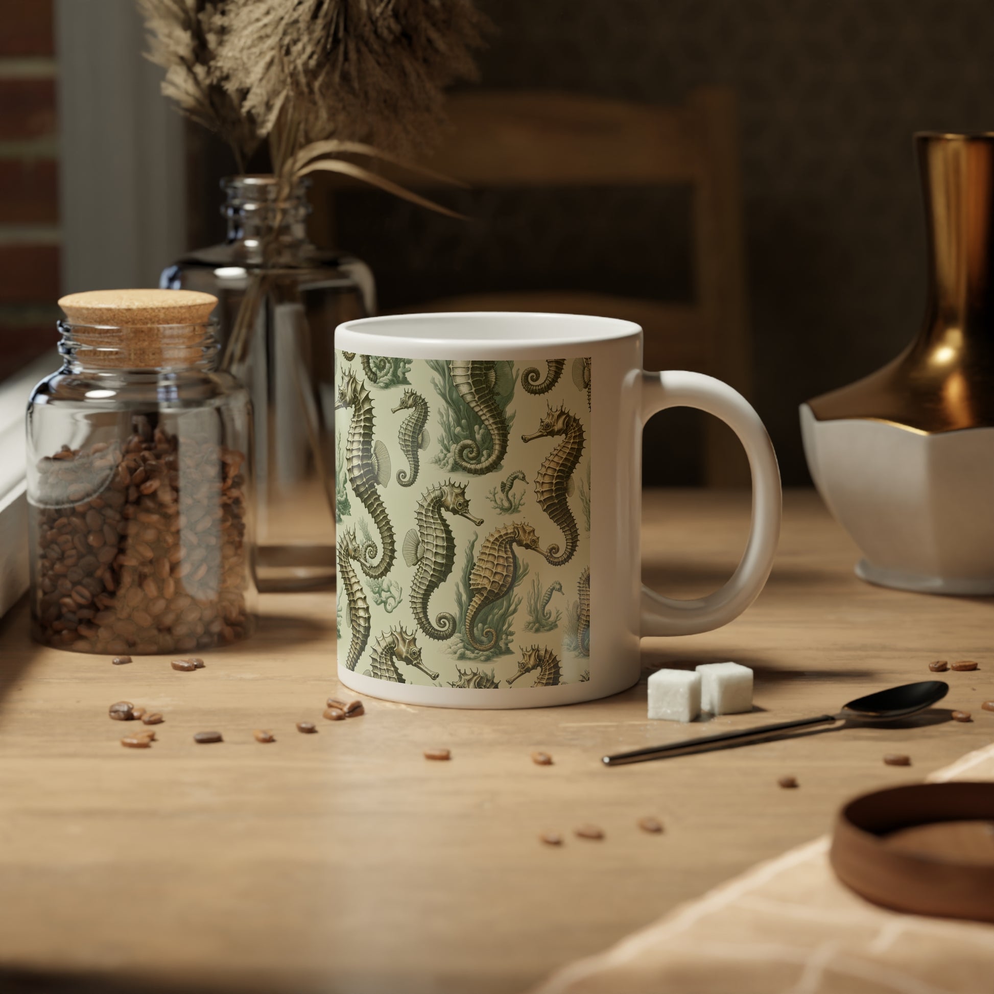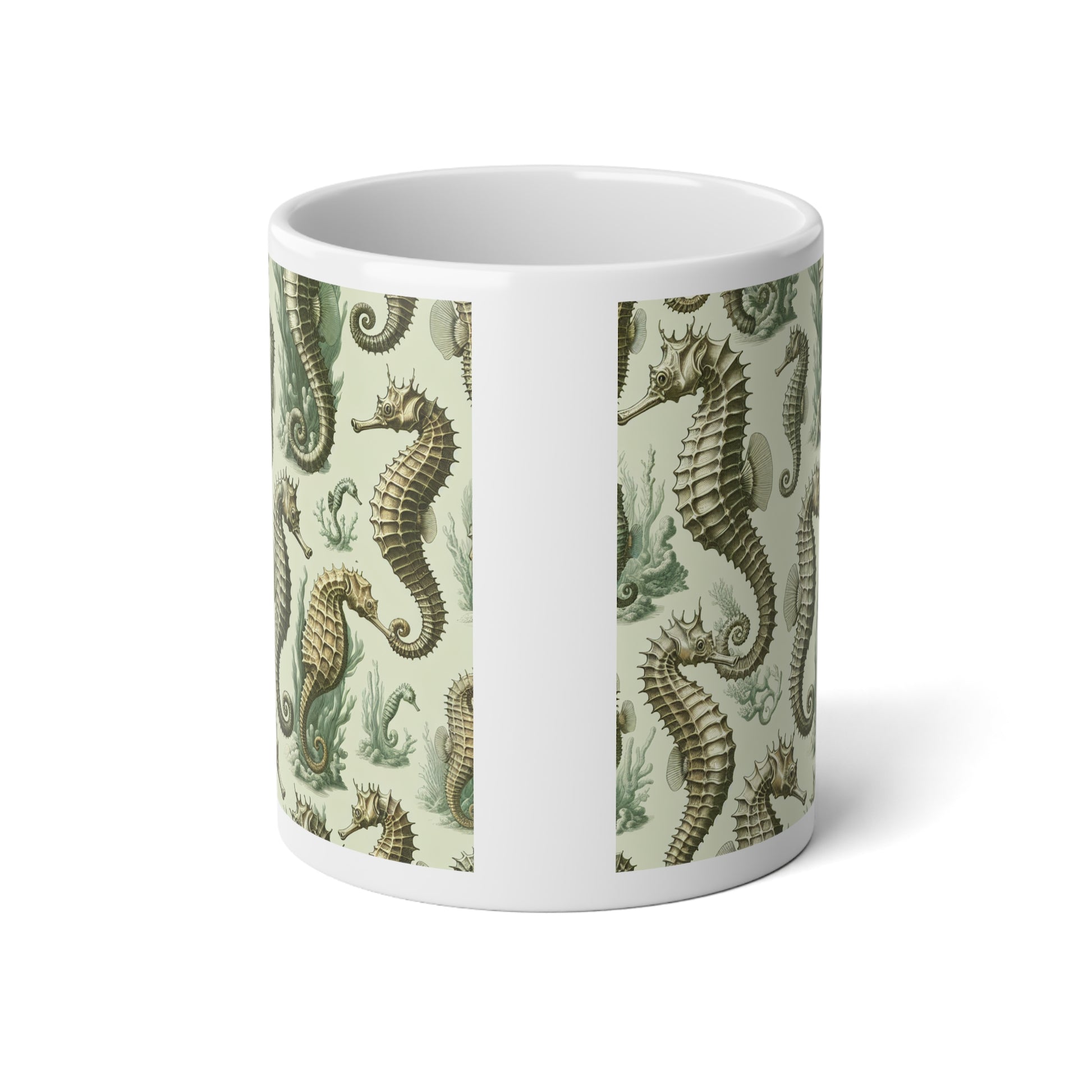 Jumbo Mug, 20oz, Seahorse Toile | Tropical Coffee Cup