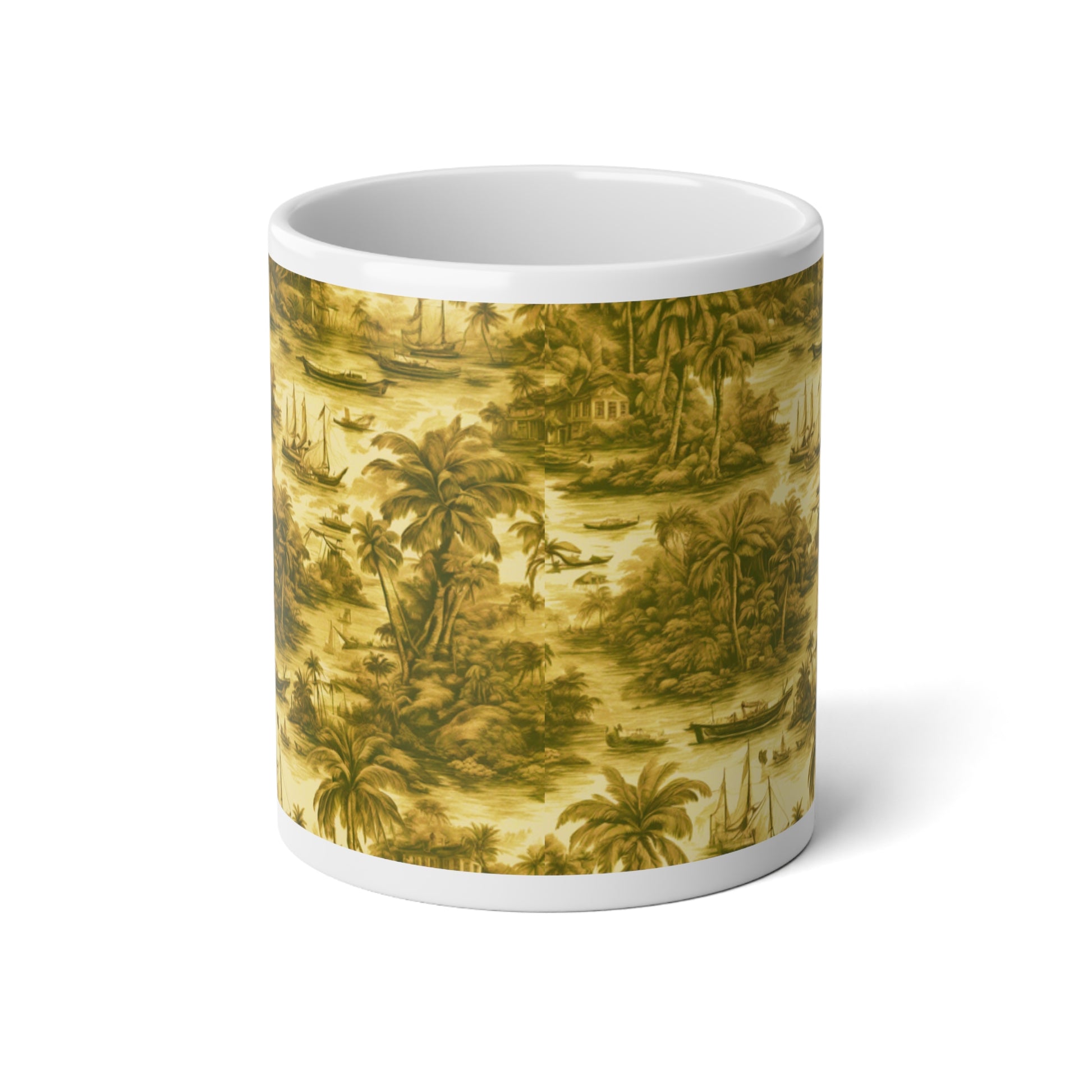 Jumbo Mug, 20oz, Tropical Toile, Gold | Tropical Coffee Cup, Gift for Ocean Lovers