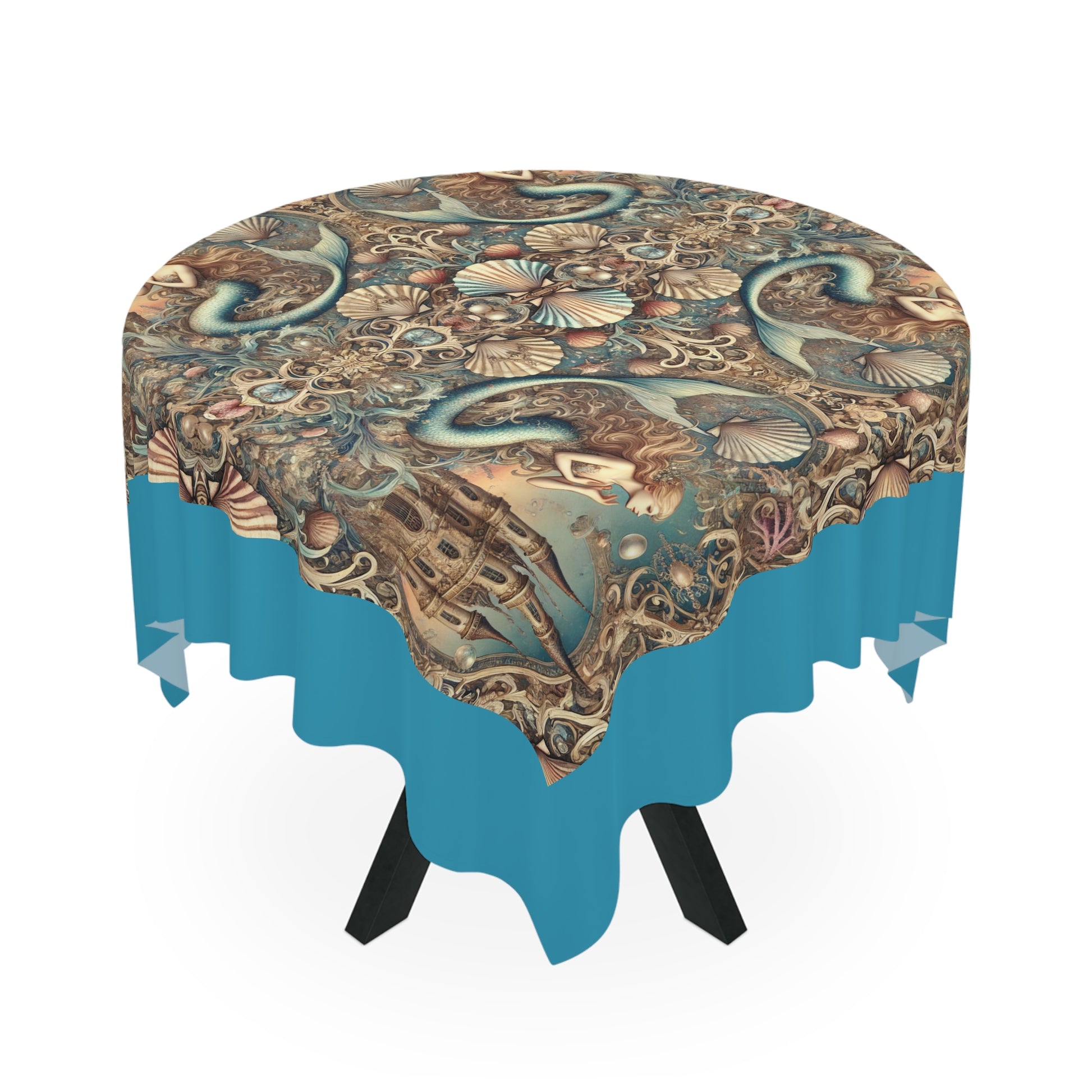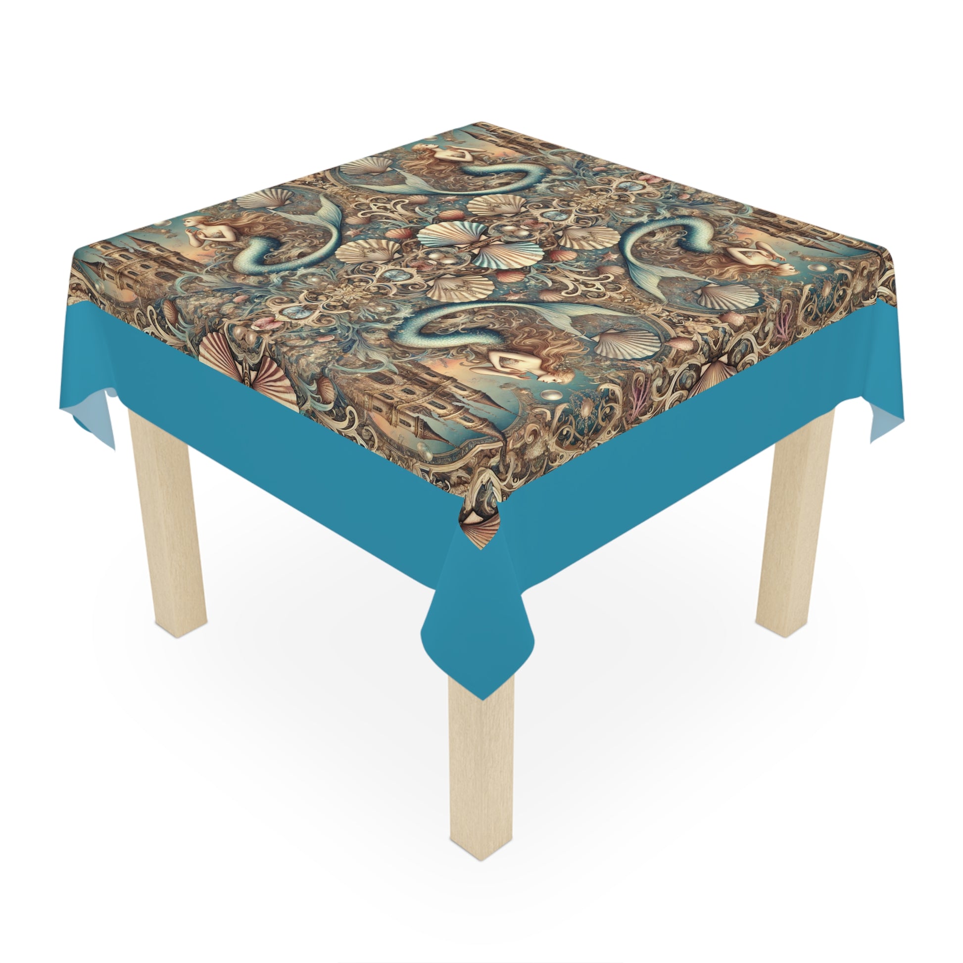 Add a touch of vibrant tropical art to your dining experience with this beautiful tablecloth. Crafted from 100% polyester, this one-size 55.1" x 55.1" square table decor it's not only durable but also retains its shape while drying quickly. The full-print mermaid royale repeat design brings to life a stunning array of colors, making it the perfect centerpiece for any meal or gathering. Lightweight and soft to the touch, this tablecloth creates an inviting atmosphere, ideal for both casual family dinners and festive occasions. Perfect for those who love to host, entertain, or simply enjoy a beautifully adorned table. This tablecloth is ideal for holidays, celebrations, or cozy dinners at home, enriching every event with its lively charm. Suitable for enthusiasts of home decor, gardening, and nature-inspired designs, it adds a splash of style to any setting.