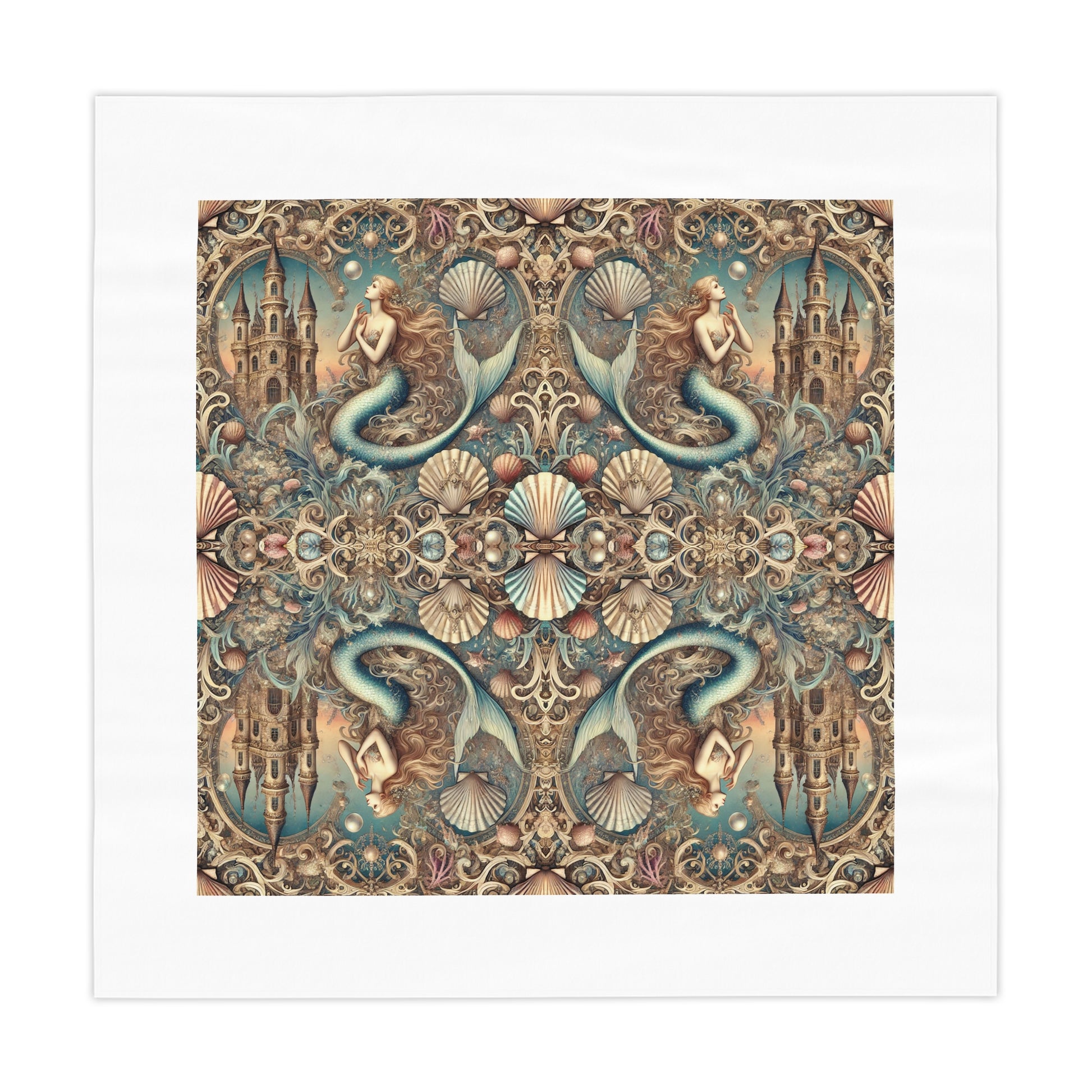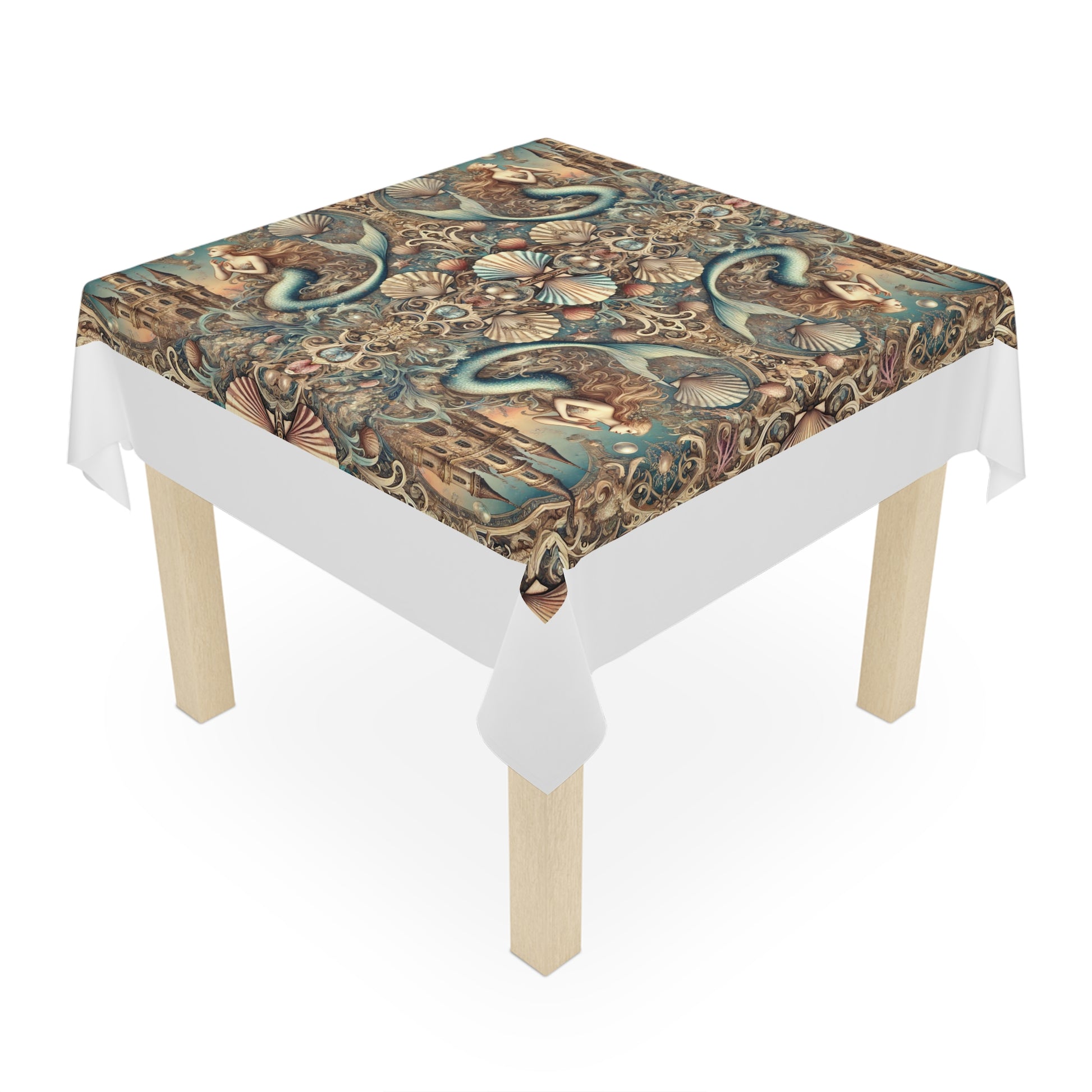 Add a touch of vibrant tropical art to your dining experience with this beautiful tablecloth. Crafted from 100% polyester, this one-size 55.1" x 55.1" square table decor it's not only durable but also retains its shape while drying quickly. The full-print mermaid royale repeat design brings to life a stunning array of colors, making it the perfect centerpiece for any meal or gathering. Lightweight and soft to the touch, this tablecloth creates an inviting atmosphere, ideal for both casual family dinners and festive occasions. Perfect for those who love to host, entertain, or simply enjoy a beautifully adorned table. This tablecloth is ideal for holidays, celebrations, or cozy dinners at home, enriching every event with its lively charm. Suitable for enthusiasts of home decor, gardening, and nature-inspired designs, it adds a splash of style to any setting.