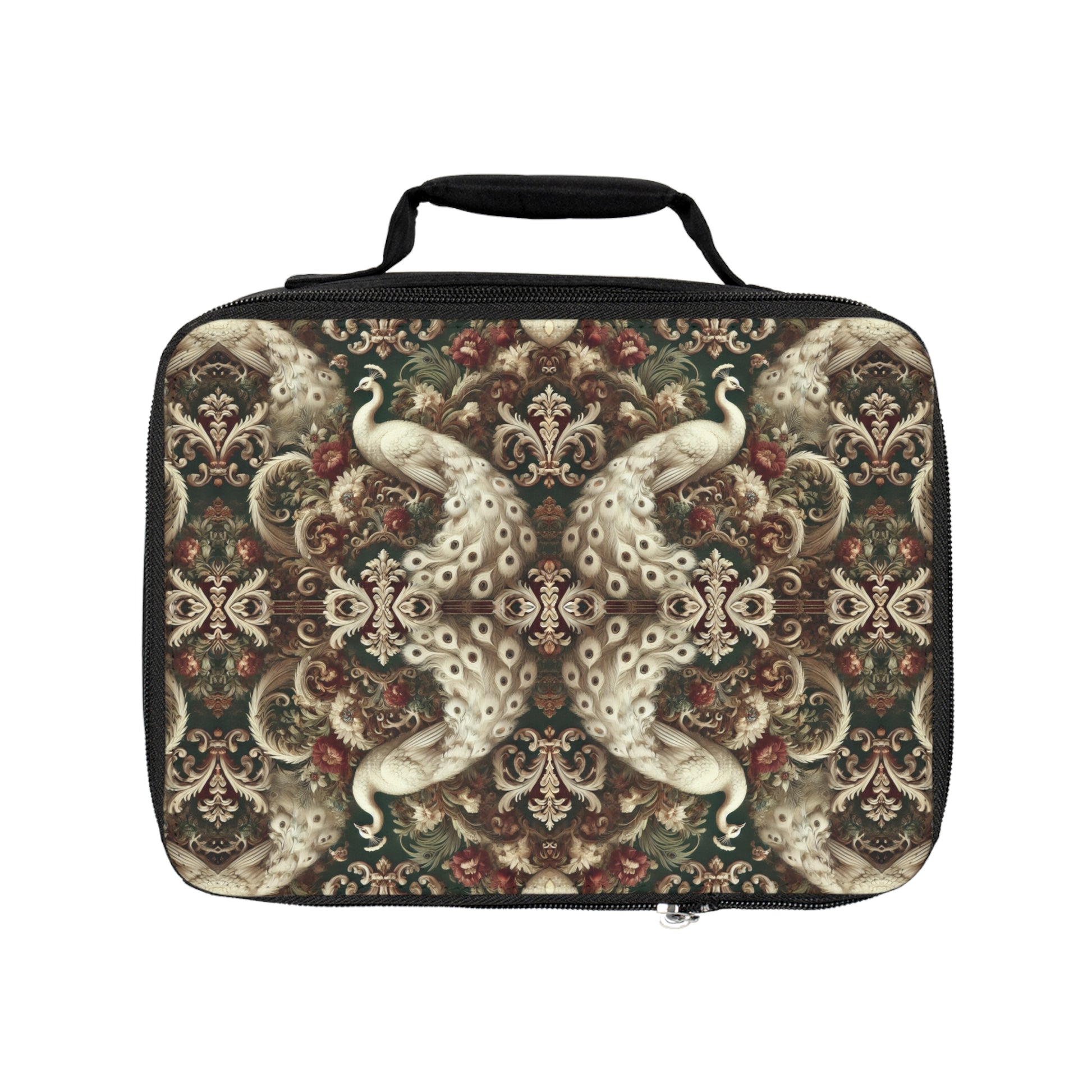 Kaleido White Peacocks Royals Lunch Bag - Eco-Friendly Insulated Tote, Adult and Child Lunchbox / Perfect for Picnics, Beach Outings