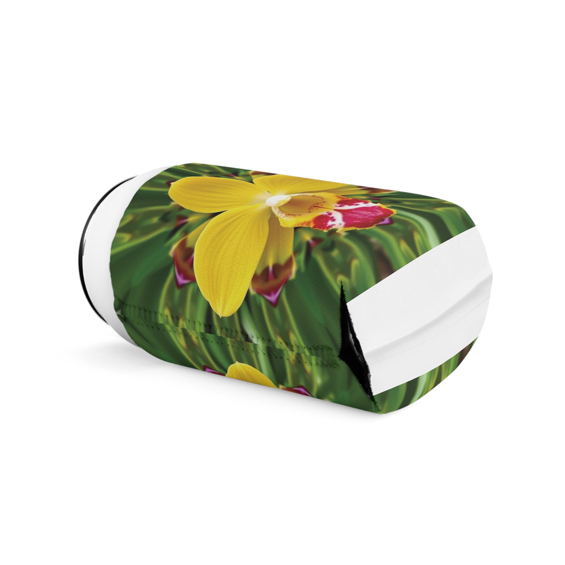 Kaleido Yellow Orchid Can Cooler Sleeve - Perfect for Outdoor Picnics