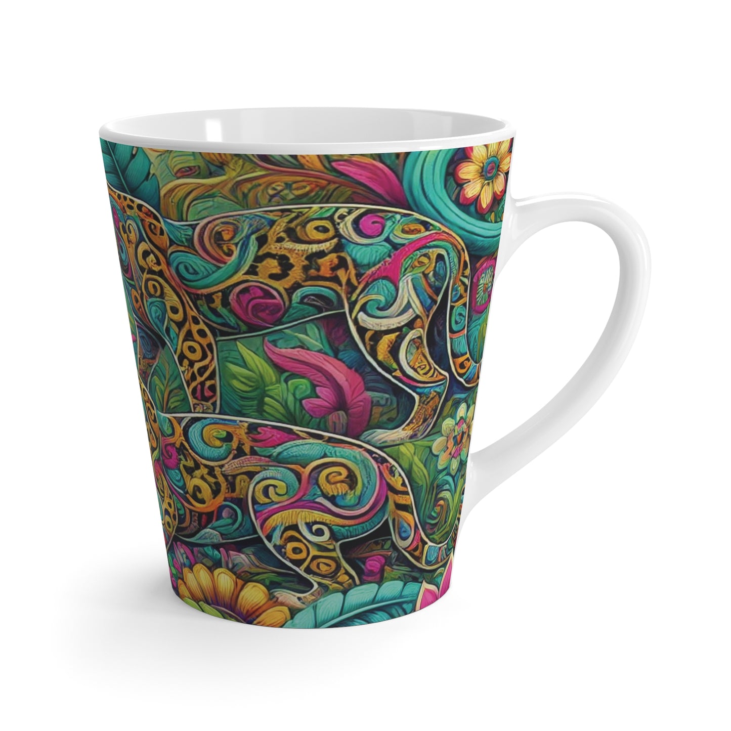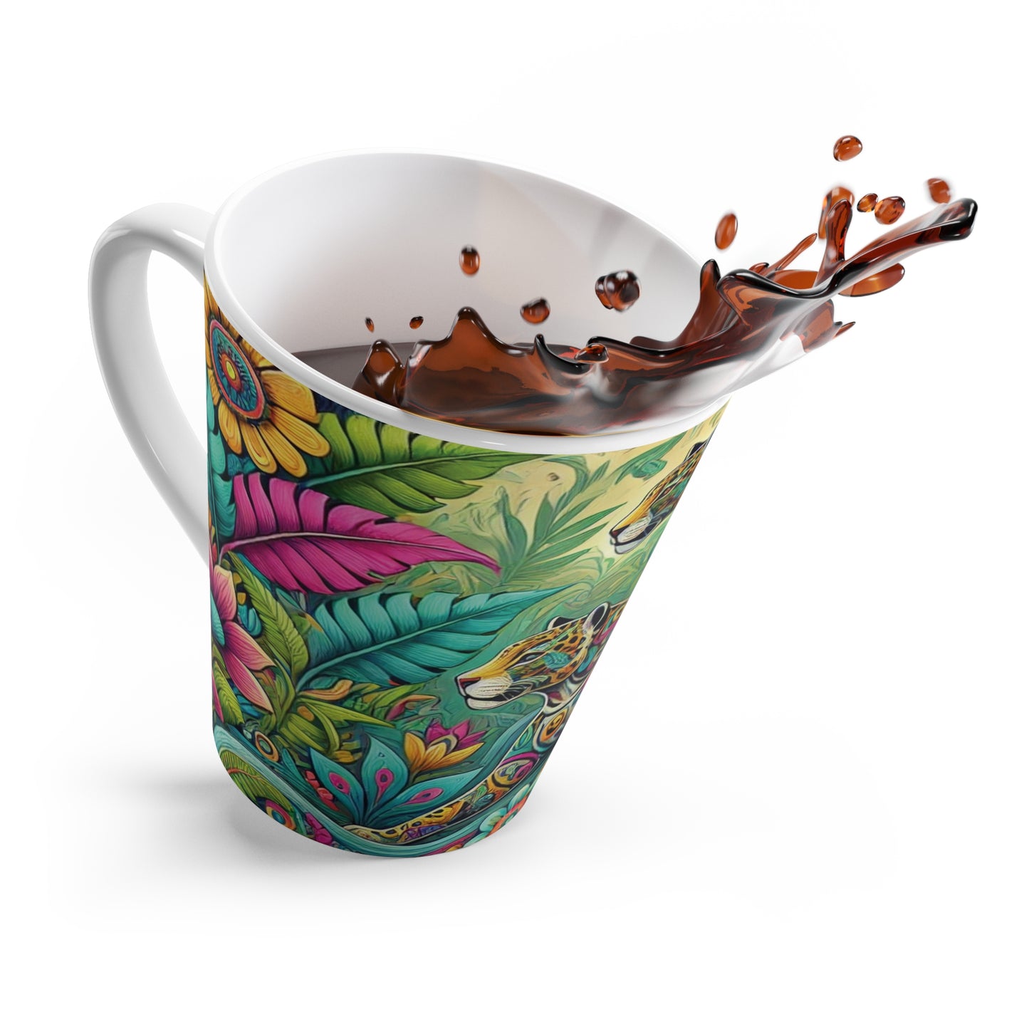 Introducing our vibrant Latte Mug, a delightful addition to your kitchenware collection. Featuring a cool design of sleek jaguars on the prowl in a rainforest, this colorful mug radiates a fresh, lively vibe that can brighten your mornings and elevate your coffee experience. Perfect for anyone who appreciates nature-inspired aesthetics, this mug is ideal for coffee lovers, tea enthusiasts, or anyone looking to enjoy their favorite beverages in style.