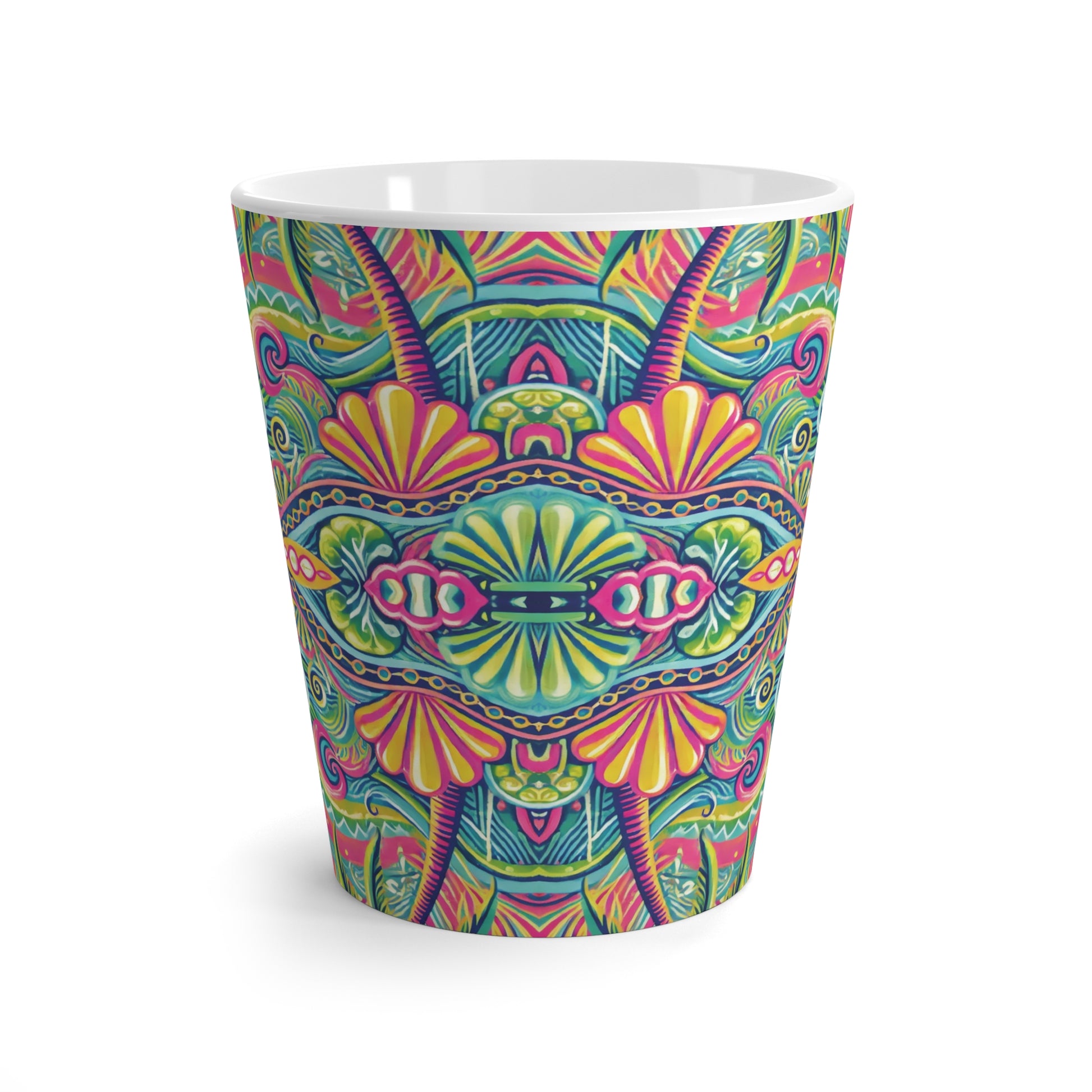 Introducing our vibrant Latte Mug, a delightful addition to your kitchenware collection. Featuring our cool design of flowers and coastal motifs made using a kaleidoscope filter, this colorful mug radiates a fresh, lively rainforest vibe that can brighten your mornings and elevate your coffee experience. Perfect for anyone who appreciates nature-inspired aesthetics, this mug is ideal for coffee lovers, tea enthusiasts, or anyone looking to enjoy their favorite beverages in style.