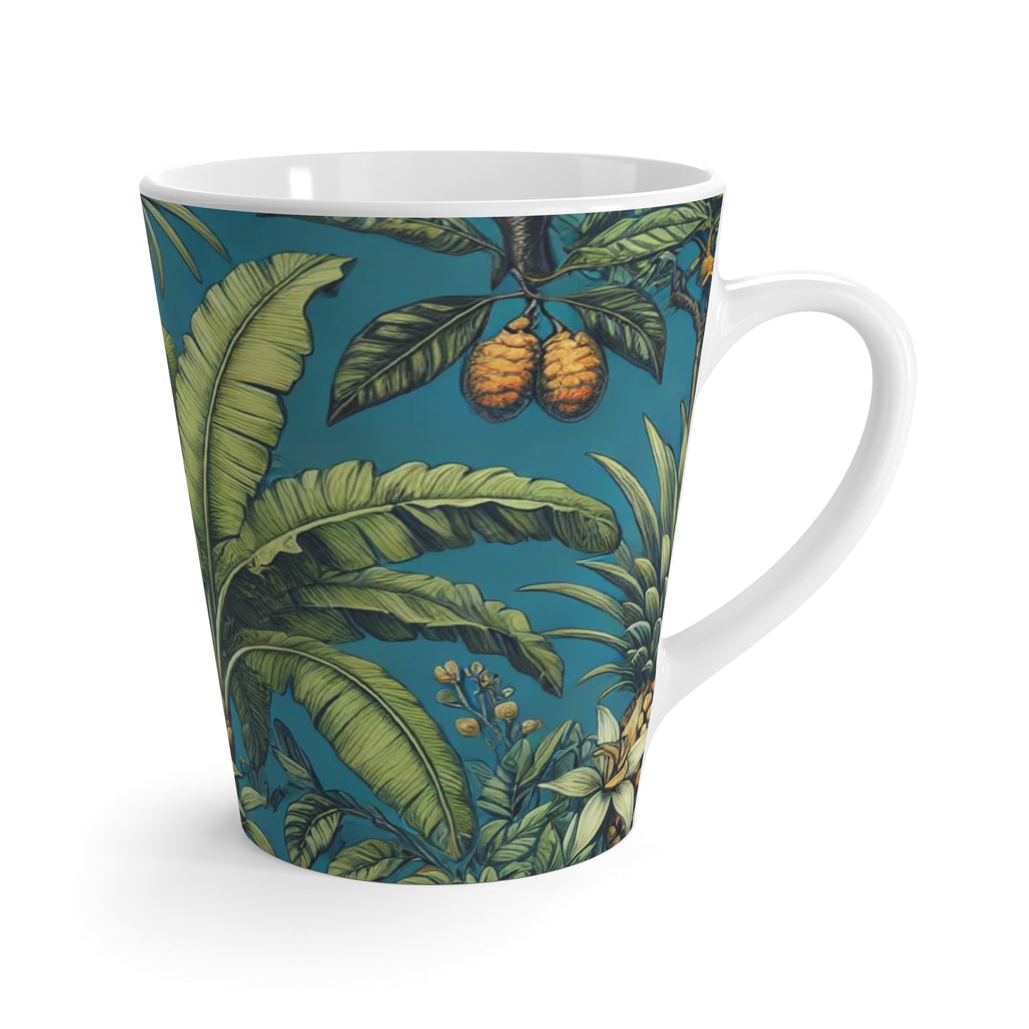 Introducing our vibrant Latte Mug, a delightful addition to your kitchenware collection. Featuring a classical design of rainforest palms, fruit and other exotic plants. this colorful mug radiates a fresh, lively vibe that can brighten your mornings and elevate your coffee experience. Perfect for anyone who appreciates nature-inspired aesthetics, this mug is ideal for coffee lovers, tea enthusiasts, or anyone looking to enjoy their favorite beverages in style.