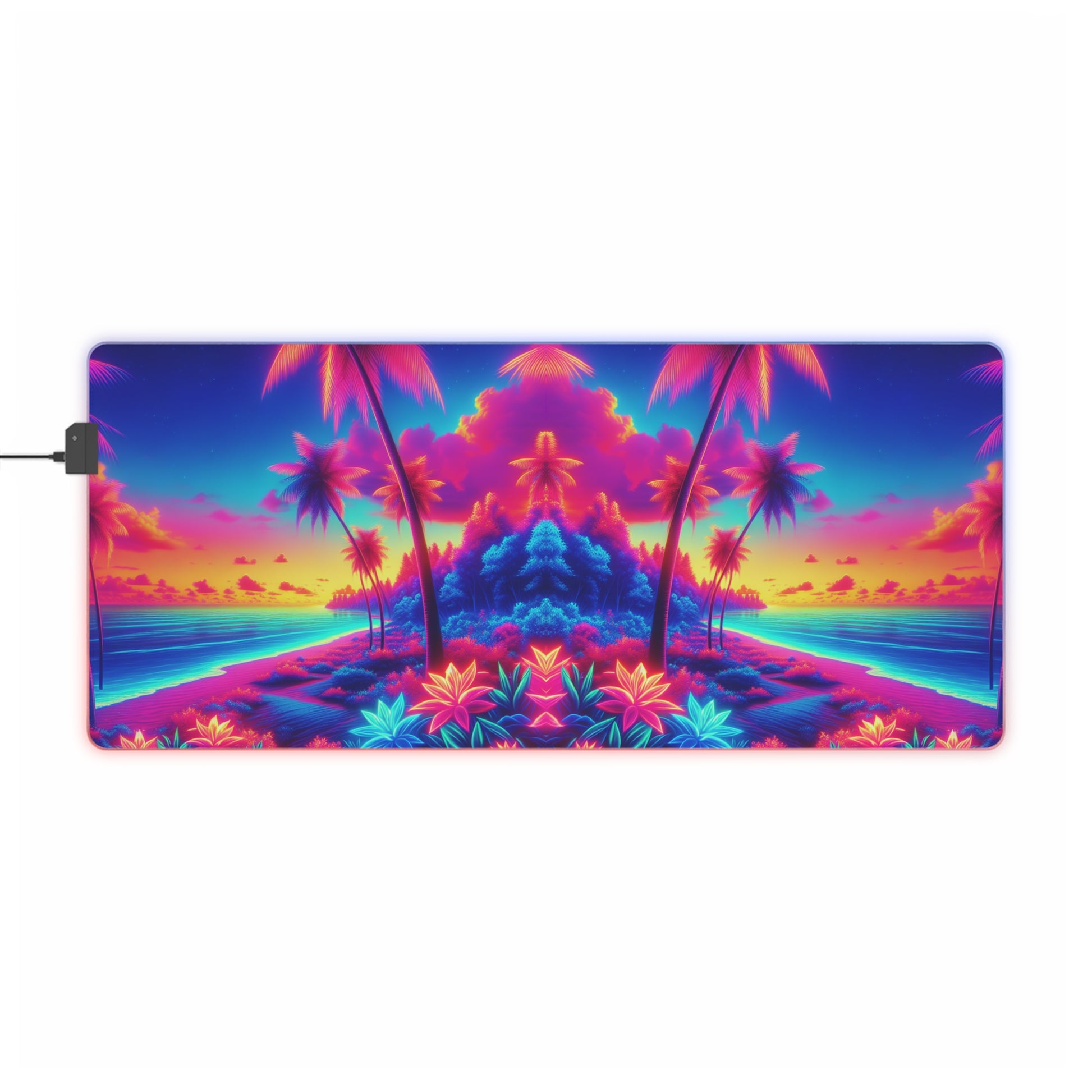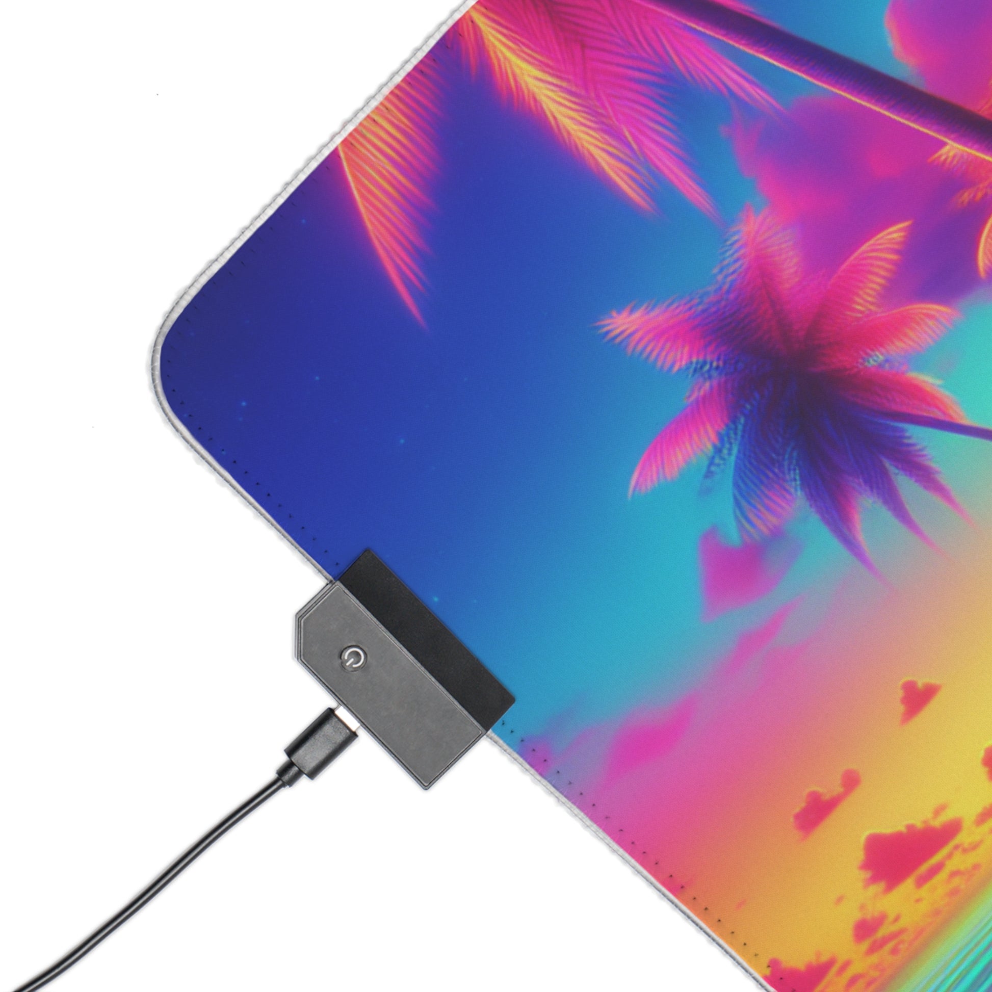 LED Gaming Mouse Pad With Vibrant RGB Lighting, 4 Sizes / Glorious Skies Neon Beach