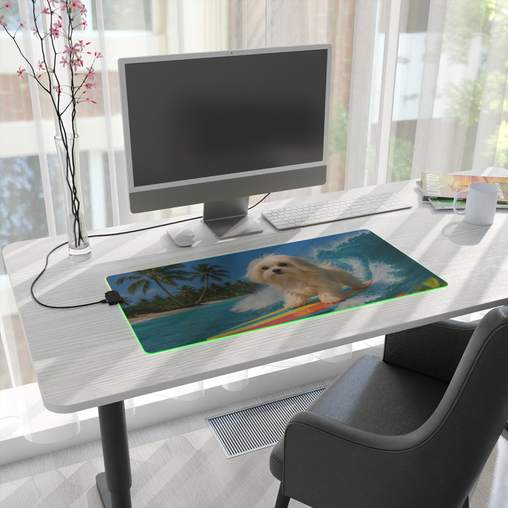 LED Gaming Mouse Pad With Vibrant RGB Lighting, 4 Sizes / Puppy Ariel the Dog Surfer