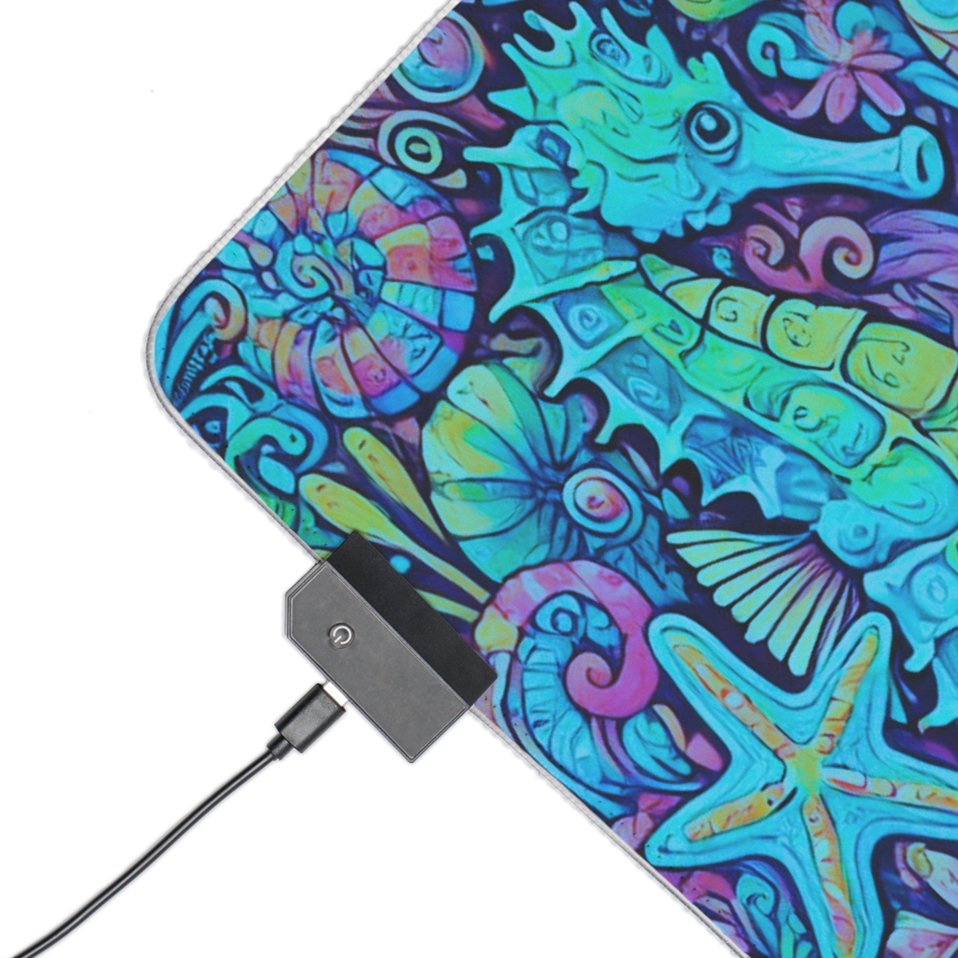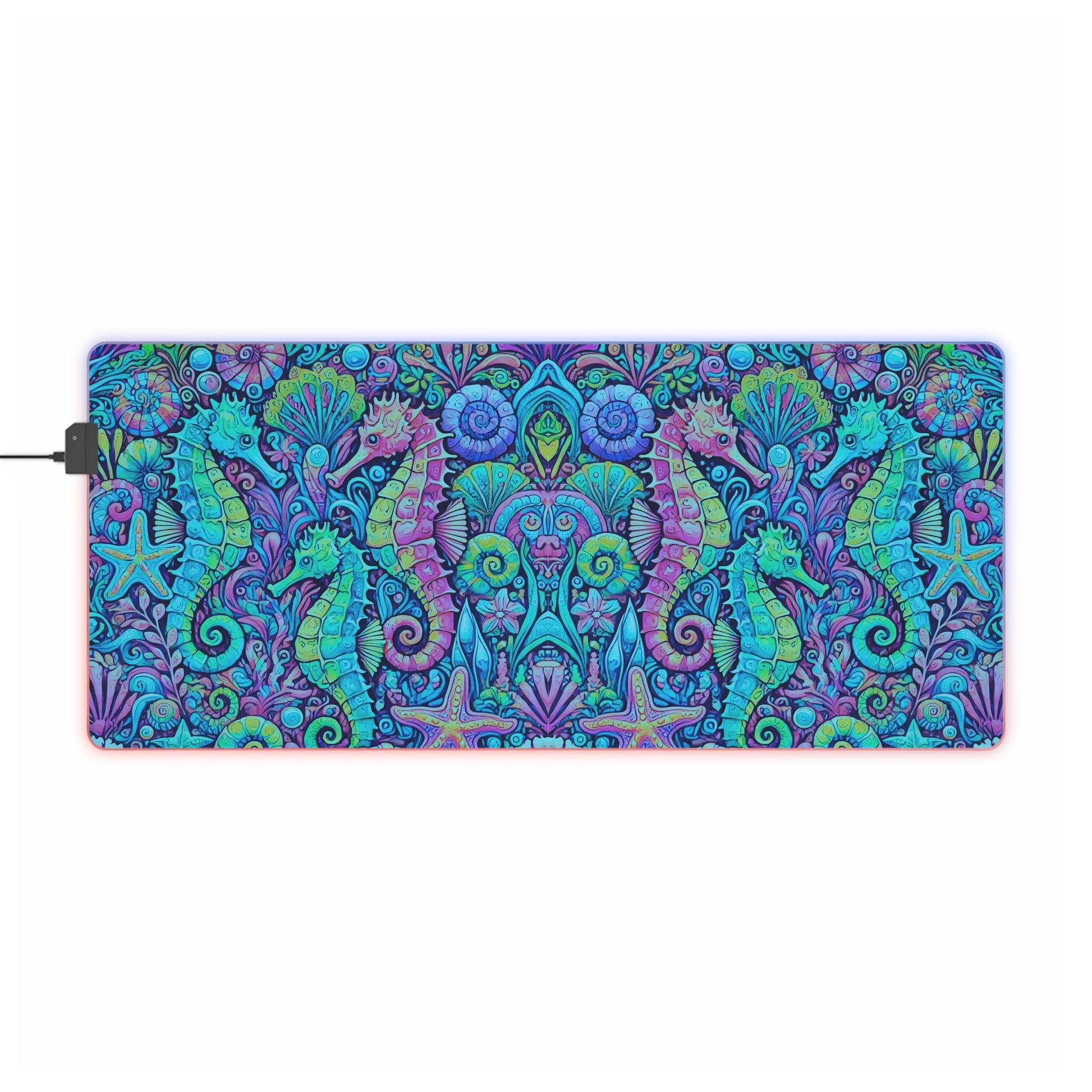 LED Gaming Mouse Pad With Vibrant RGB Lighting, 4 Sizes / Seahorse Trio, Turquoise Pop