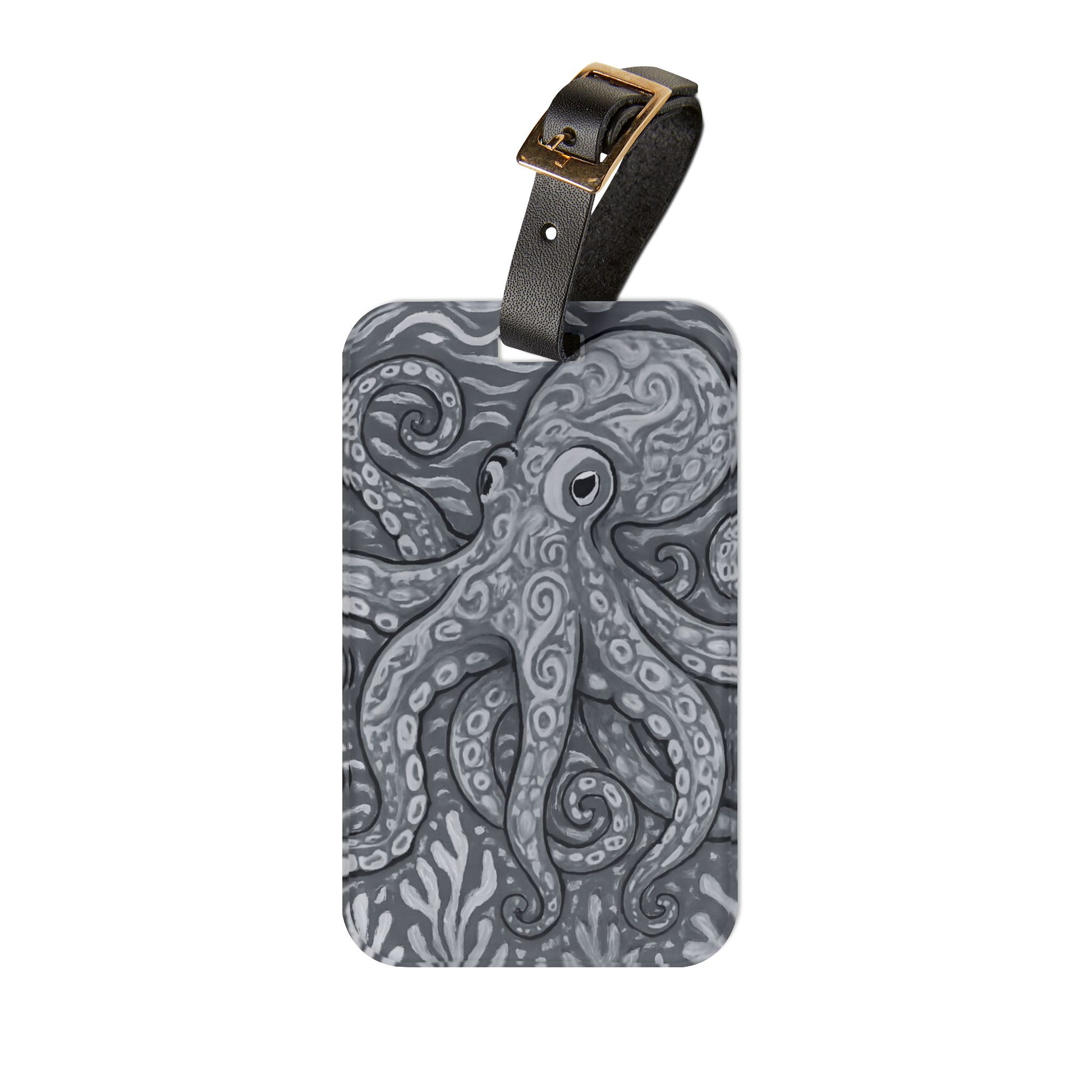 Our custom acrylic luggage tag is made with a business card insert on the back side where you can enter your contact information. It's super lightweight,, and comes with a durable genuine leather strap. On the front side is where the visual tropical party is happening!