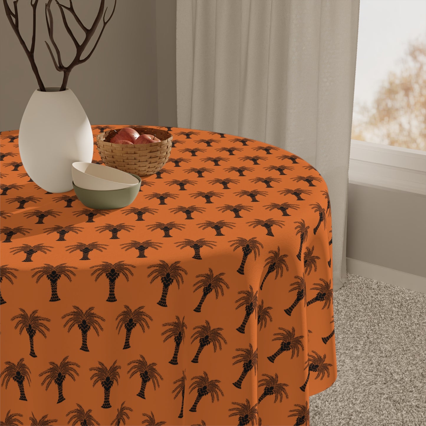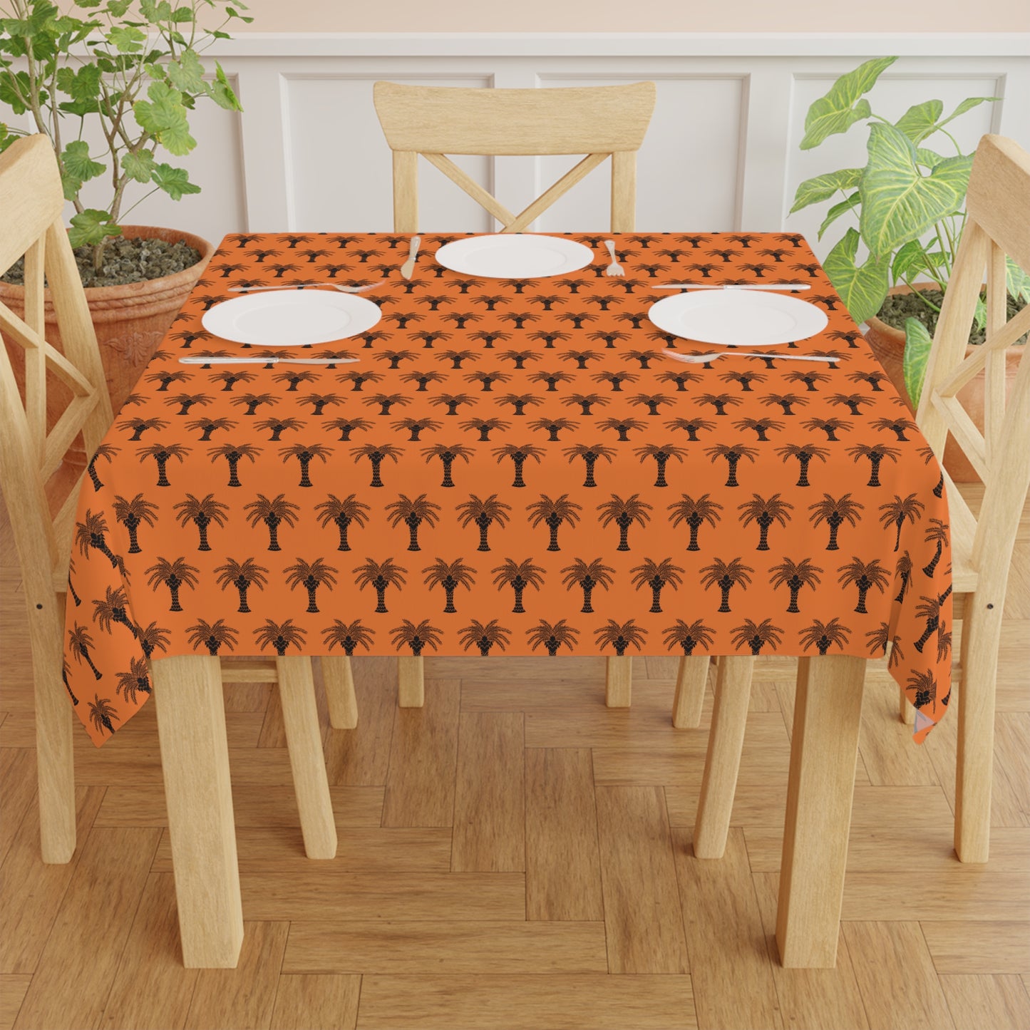 Micro Palm Glory/Crusta Orange ~ Square Tablecloth, 55" x 55"