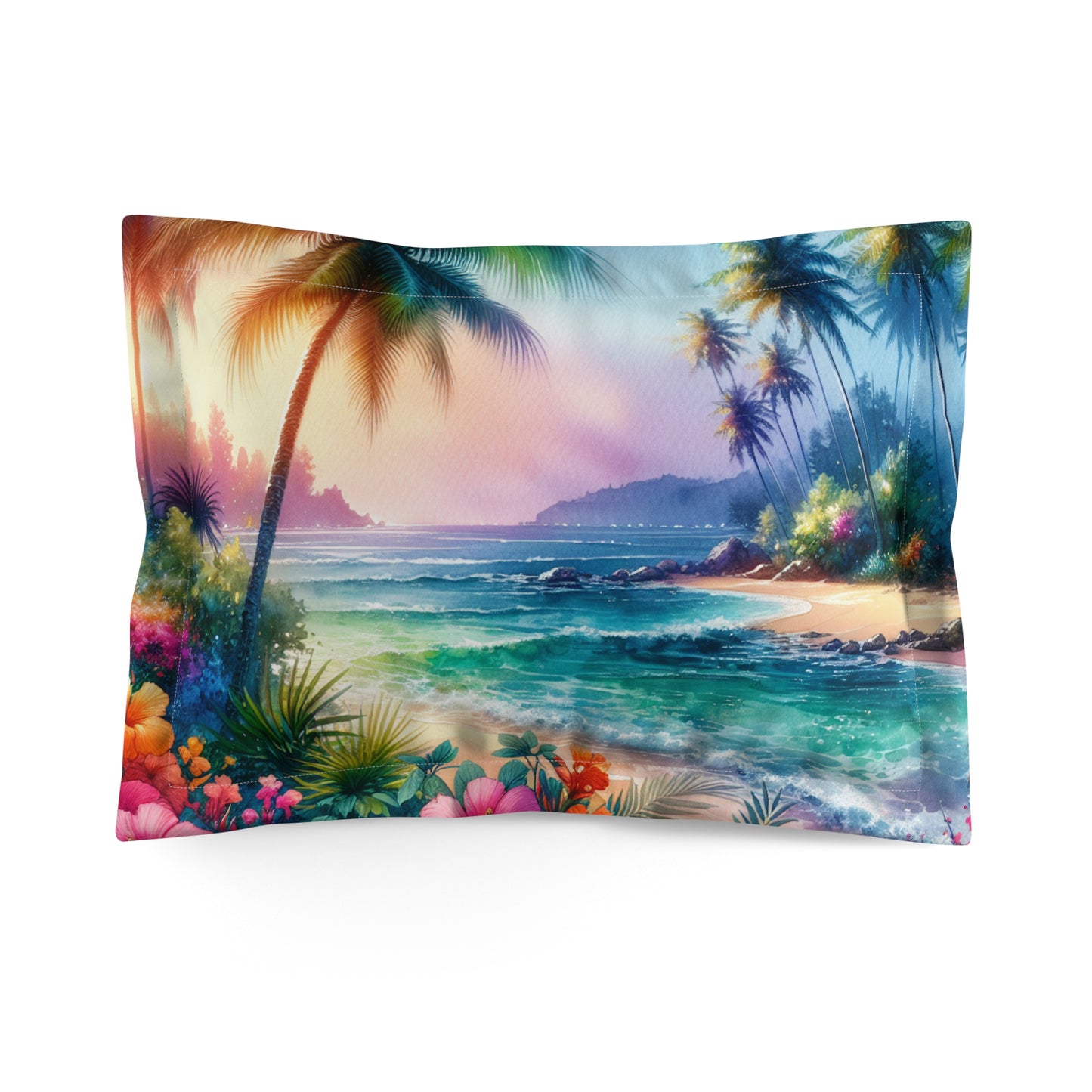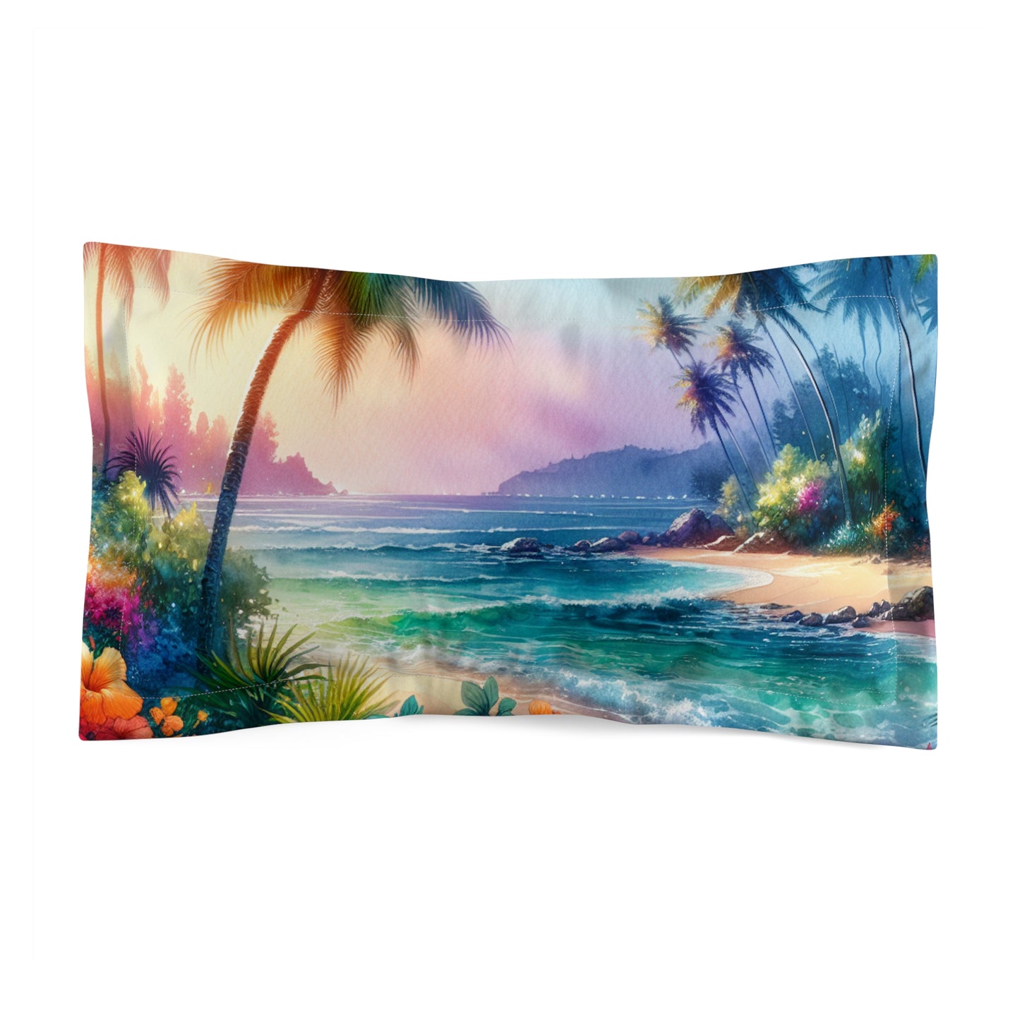 Microfiber Pillow Sham, 2 Sizes | Tropical Vibes for Relaxation / Bay of Peace