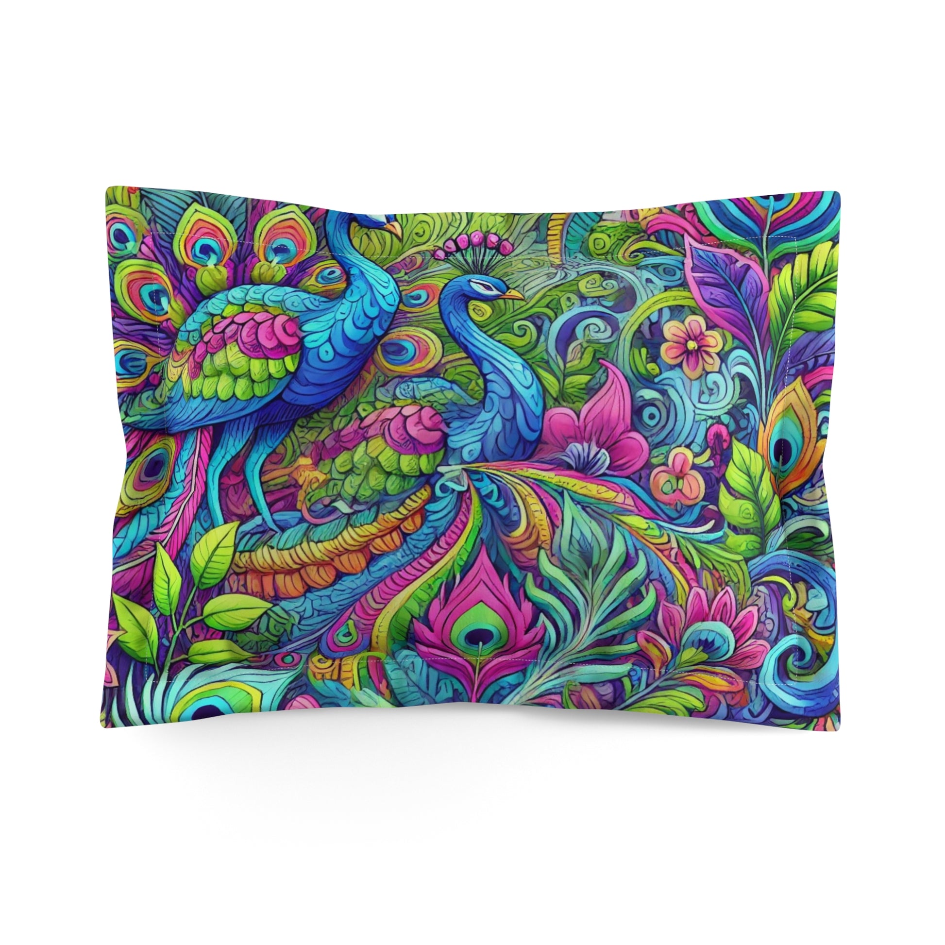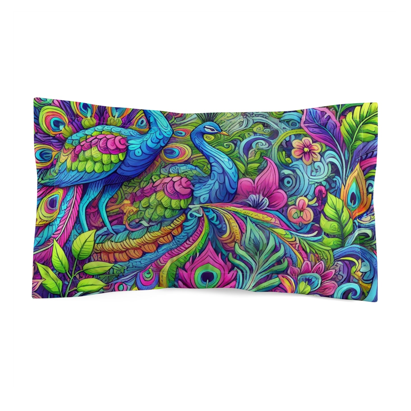 Microfiber Pillow Sham, 2 Sizes | Tropical Vibes for Relaxation / Peacock Prism
