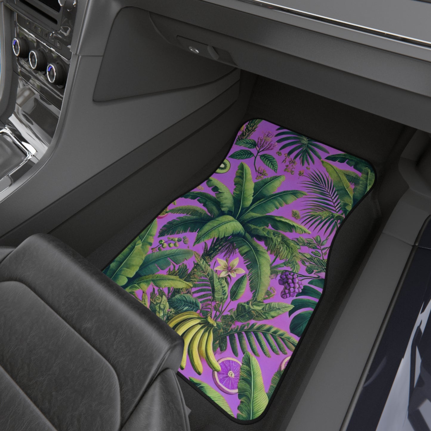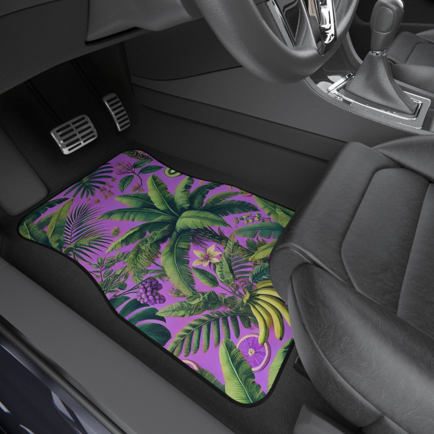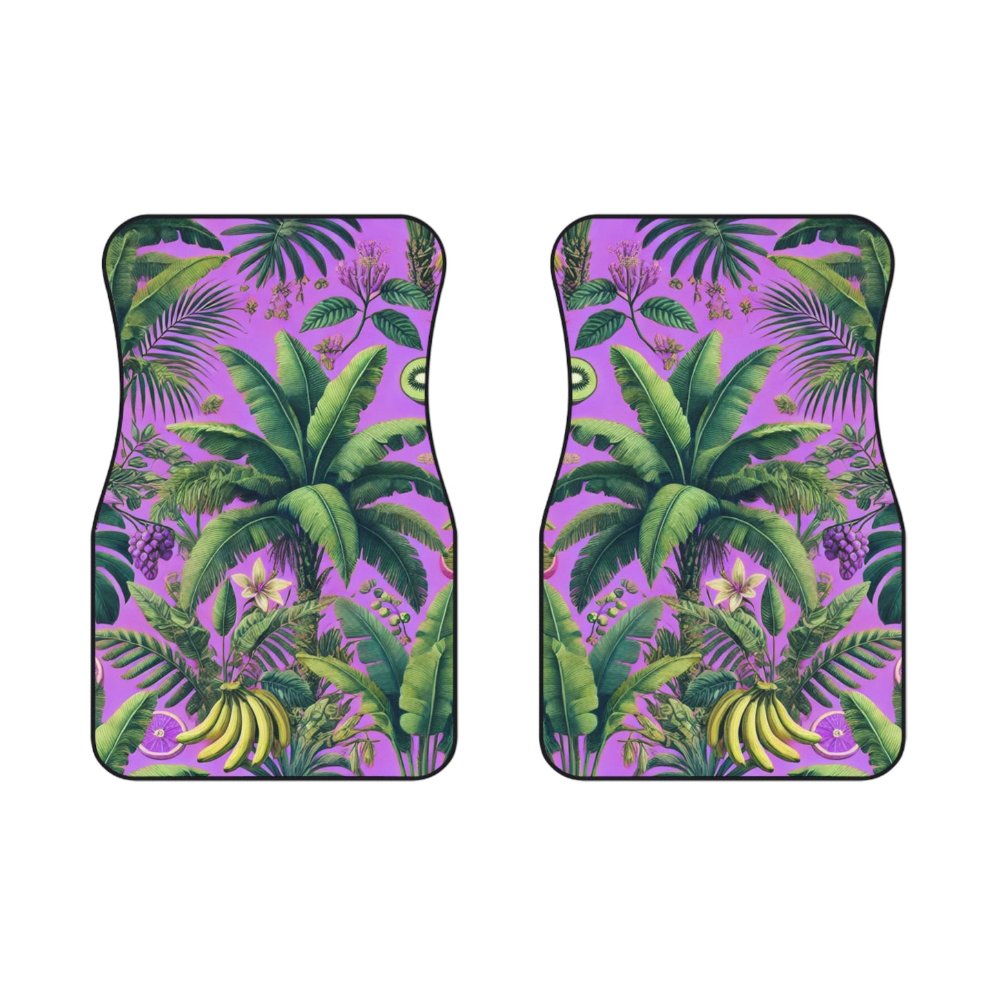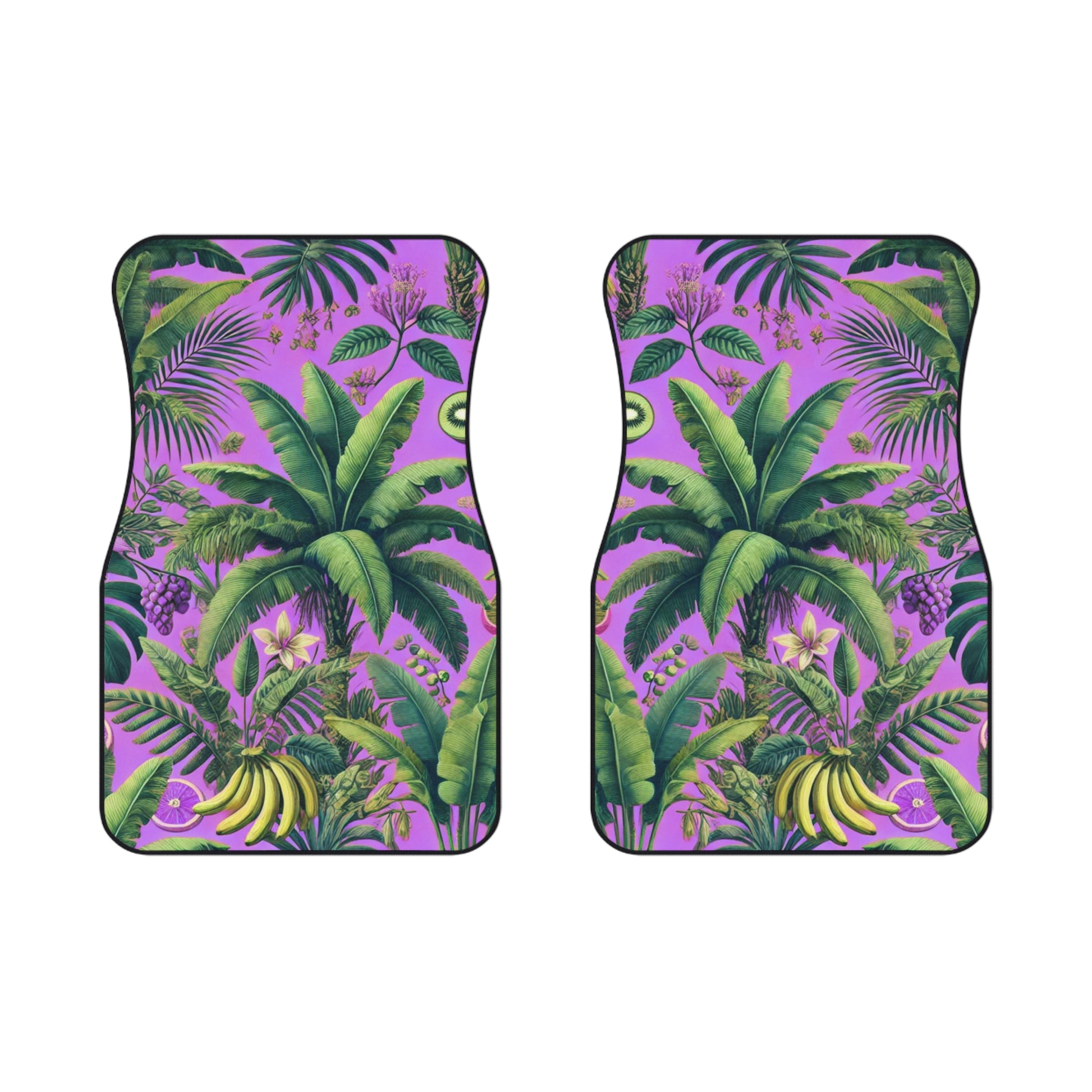 Transform your vehicle's interior with this two-piece set of vibrant Car Mats! Designed to bring a tropical atmosphere to every drive, these tropical mats feature lush plants and fruit from the rainforest on a pink background that elevates your car's decor. Perfect for tropical and botanical lovers and anyone looking to personalize their ride, these mats are ideal for everyday. They also make great gifts for holidays such as birthdays, anniversaries, Mother’s Day or Christmas, especially for those who enjoy a bit of flair and personality in their vehicles. Enjoy traveling in style while keeping your car's flooring protected!