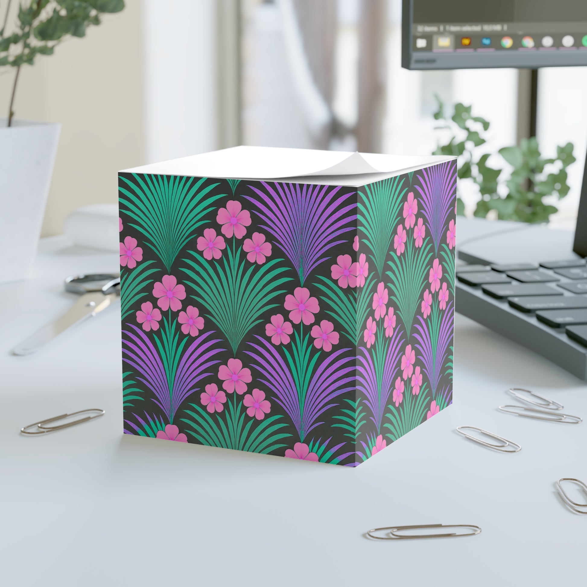 This sticky note cube features 700 sticky sheets to conveniently write notes for every purpose. Place on any surface in your home or office to add coastal vibes to a room. Each cube measures 3.37" (W) by 3.5" (H). Edges feature our exclusive colorful design of stylized hibiscus flowers and palms taking you on a tropical adventure every day! Truly an amazing piece of functional art. Quite a conversation piece.