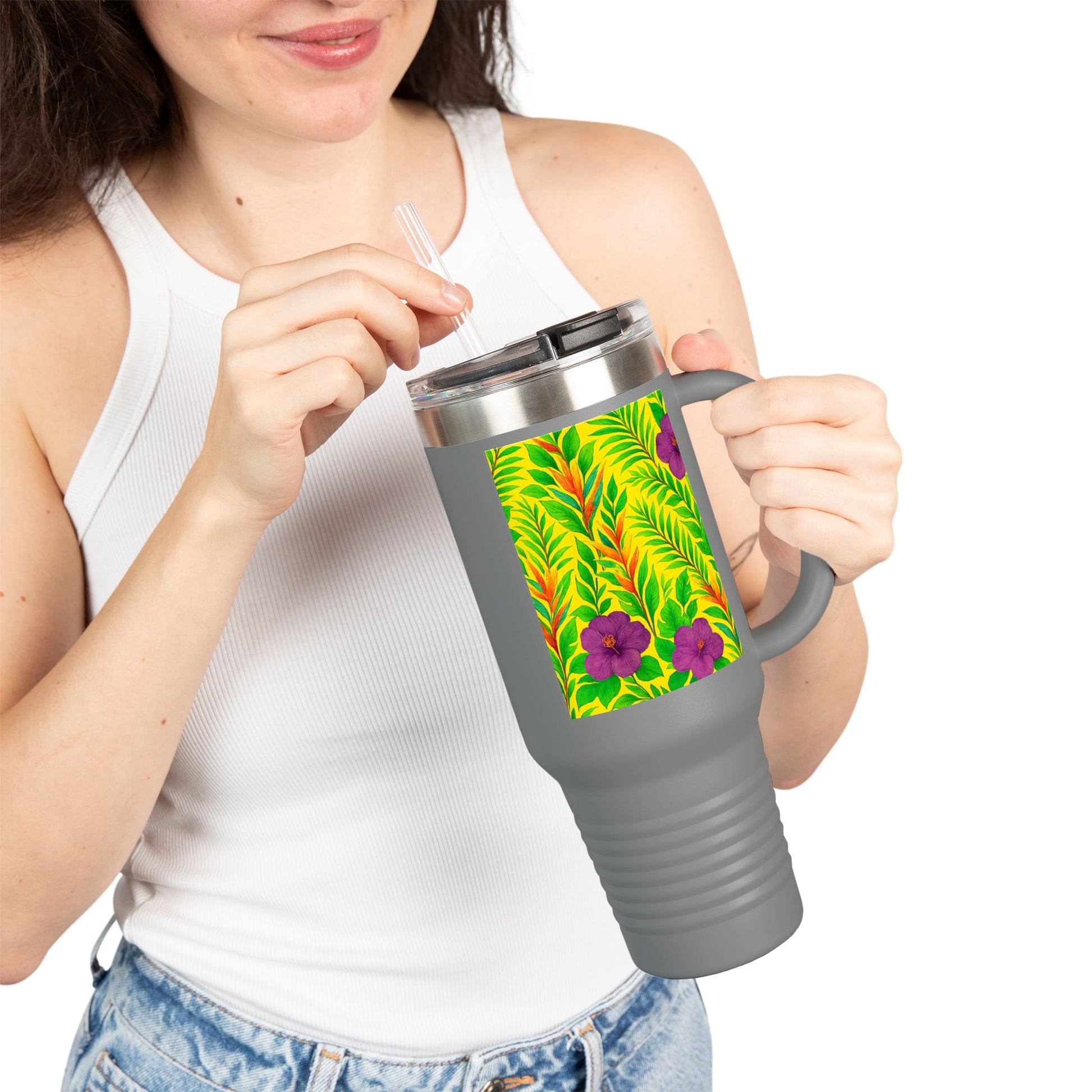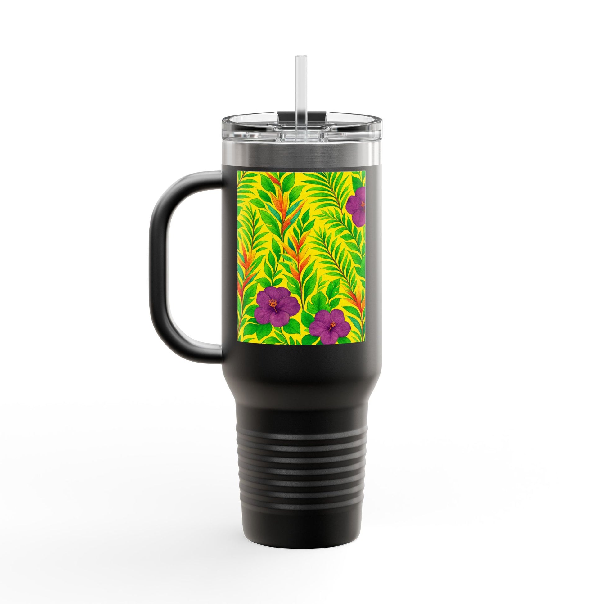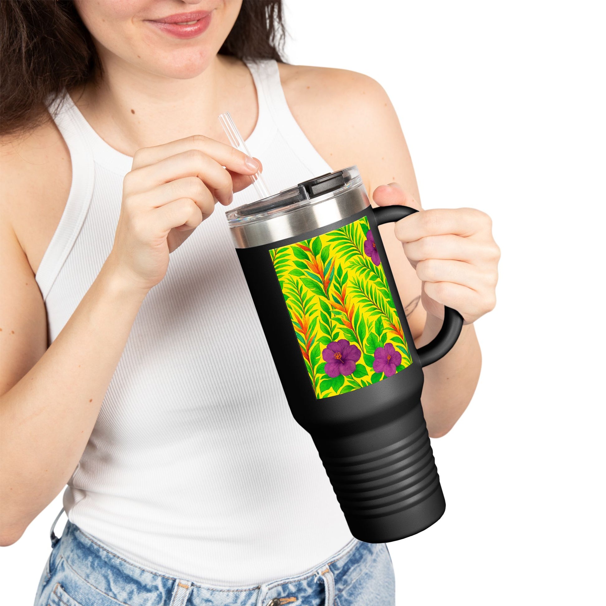 Midnight Flower Yellow Insulated Travel Mug - 40oz - Perfect for Outdoor Adventures