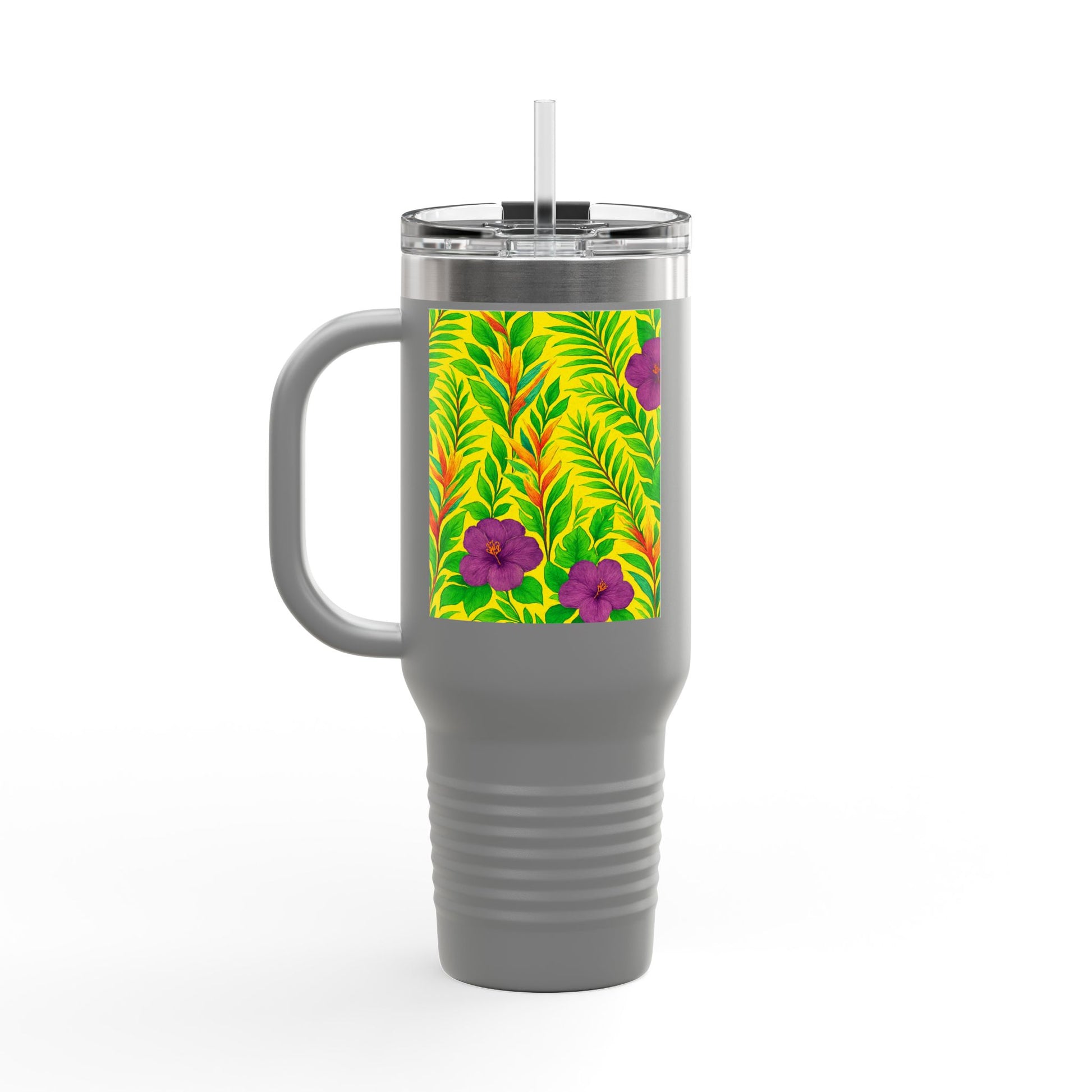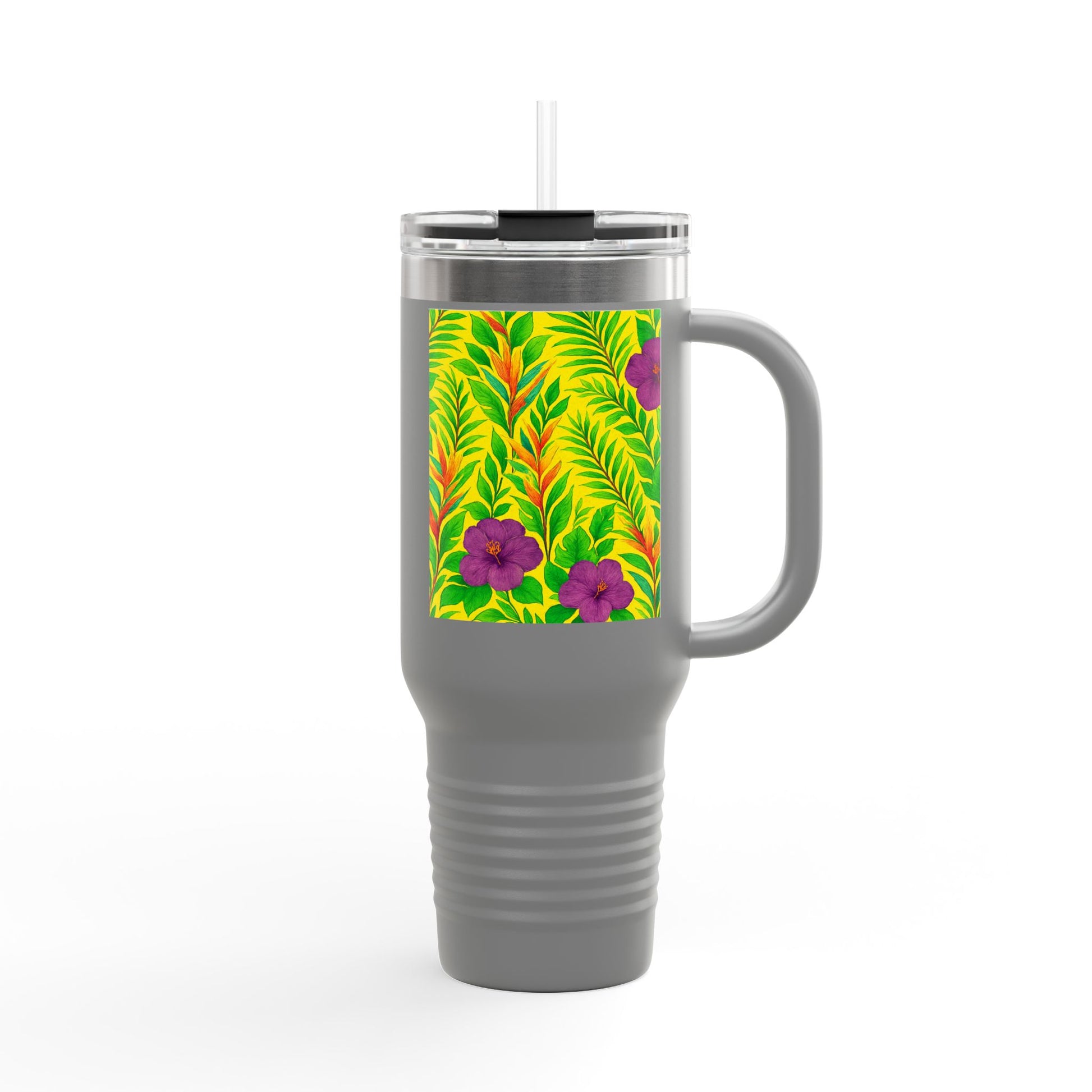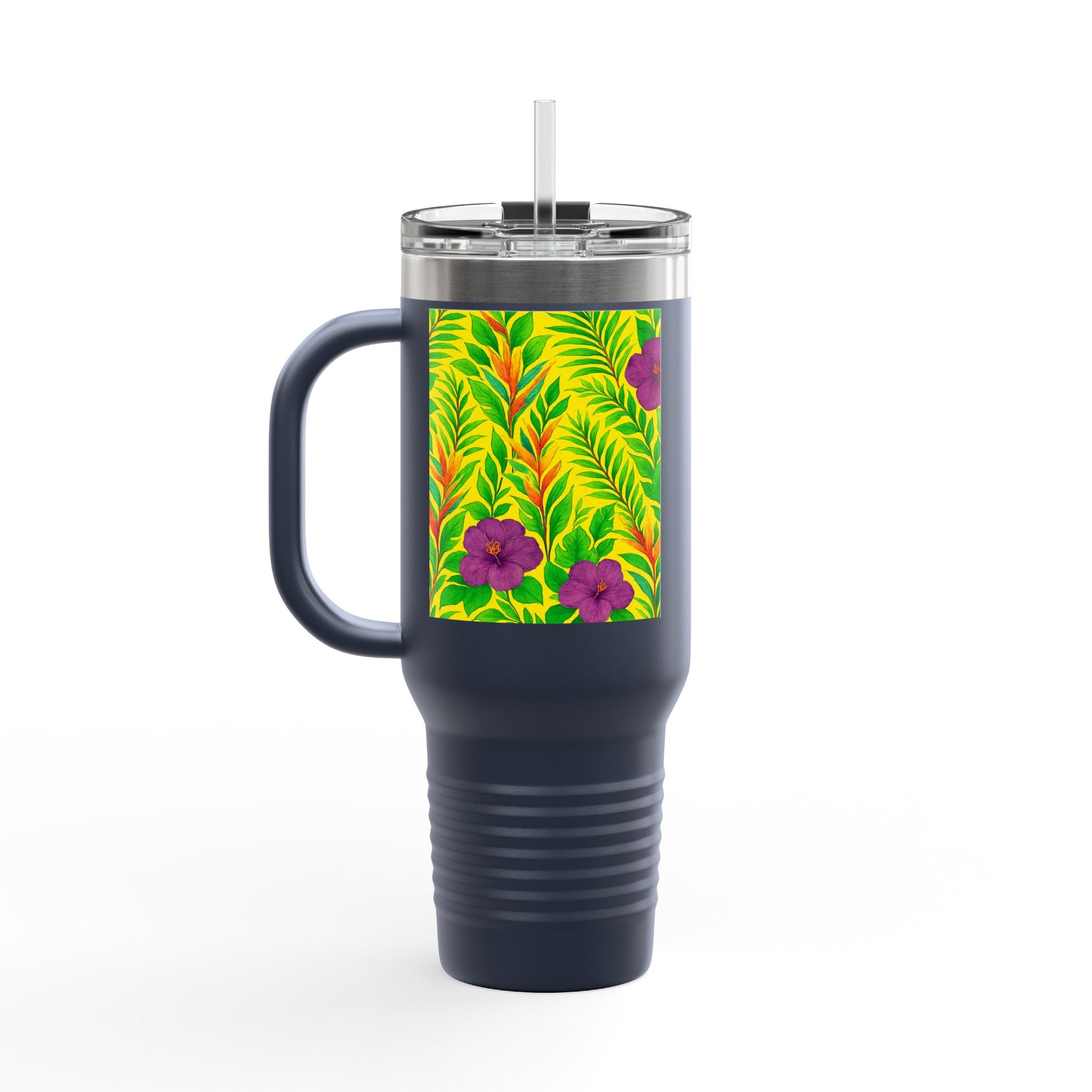 Midnight Flower Yellow Insulated Travel Mug - 40oz - Perfect for Outdoor Adventures