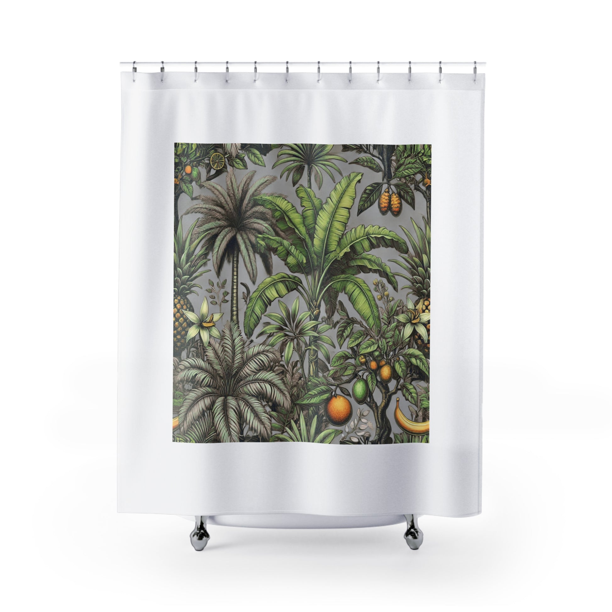 Transform your bathroom into a serene oasis with this vibrant shower curtain with a gorgeous design of palm trees and fruit. Made from 100% durable polyester, this unique design features a captivating blend of colors and patterns that will invigorate your space. Imagine stepping into a warm, relaxing shower surrounded by stylish artistry that reflects your personality. Perfect for adults looking to elevate their home decor, this shower curtain brings a touch of creativity and fun to everyday routines. It's ideal for housewarming gifts, celebrations, or simply as a cheerful addition to your own bathroom. Celebrate life’s moments, from seasonal gatherings to personal milestones, with this eye-catching piece.