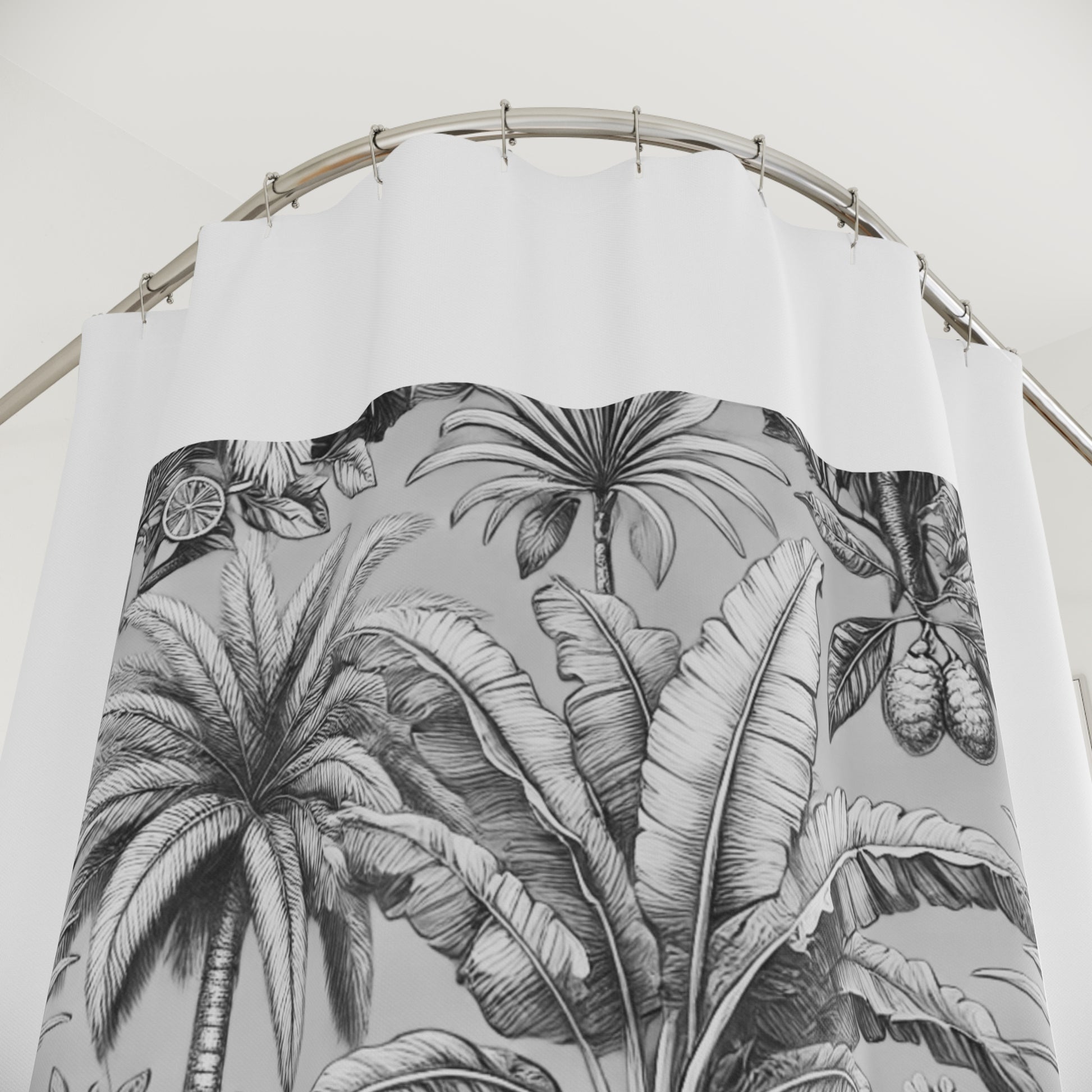 Transform your bathroom into a serene oasis with this vibrant shower curtain with a gorgeous design of palm trees and fruit. Made from 100% durable polyester, this unique design features a captivating blend of colors and patterns that will invigorate your space. Imagine stepping into a warm, relaxing shower surrounded by stylish artistry that reflects your personality. Perfect for adults looking to elevate their home decor, this shower curtain brings a touch of creativity and fun to everyday routines. It's ideal for housewarming gifts, celebrations, or simply as a cheerful addition to your own bathroom. Celebrate life’s moments, from seasonal gatherings to personal milestones, with this eye-catching piece.