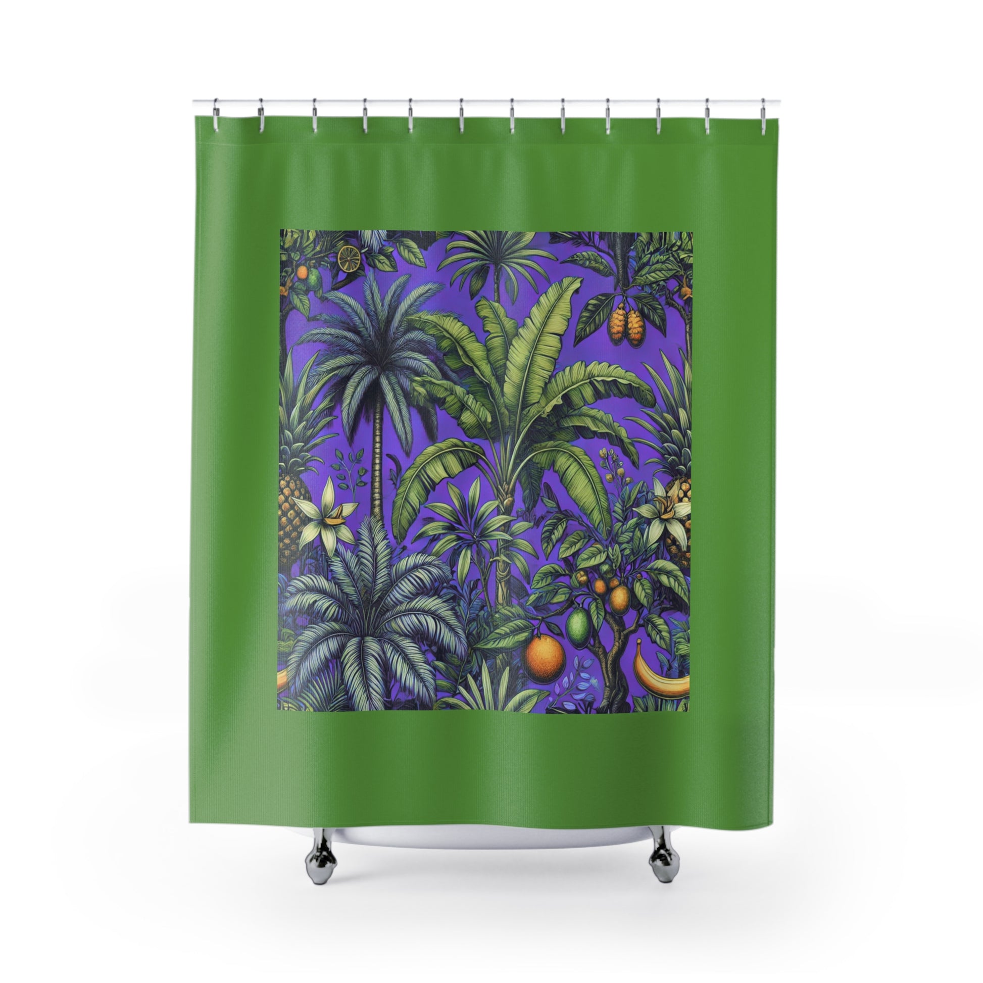Palm Tree Shower Curtain - Ocean Bathroom Decor / Tropical Fruit/Purple, Green
