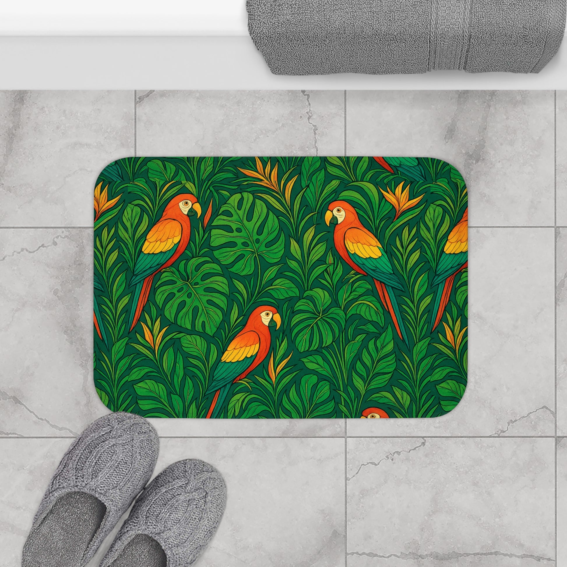 Parrot Family Bath Mat, 2 Sizes - Tropical Vibes for Home Decor