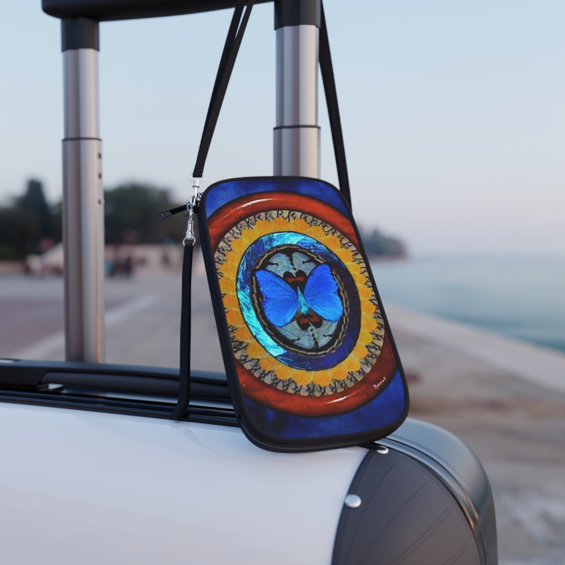 .: Black detachable and adjustable shoulder strap and a black wrist strap