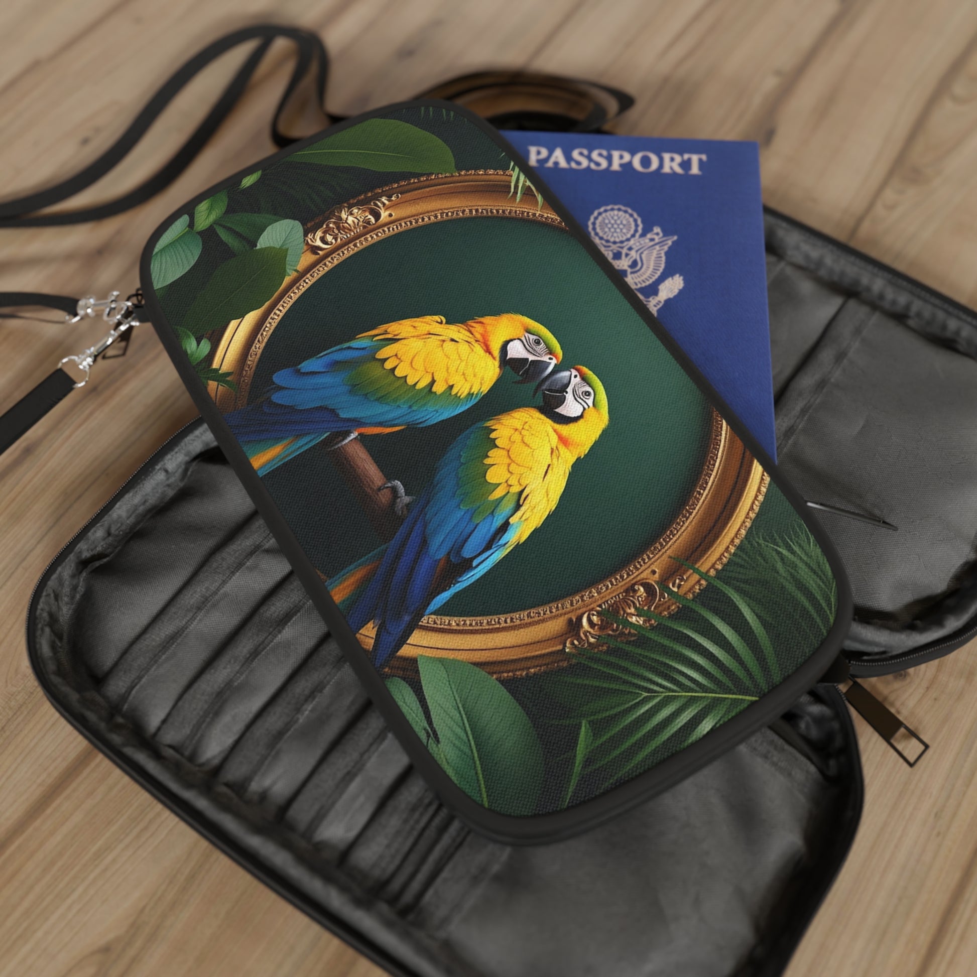 Passport Wallet – Perfect for Travelers & Adventurers / Framed Parrot Pair