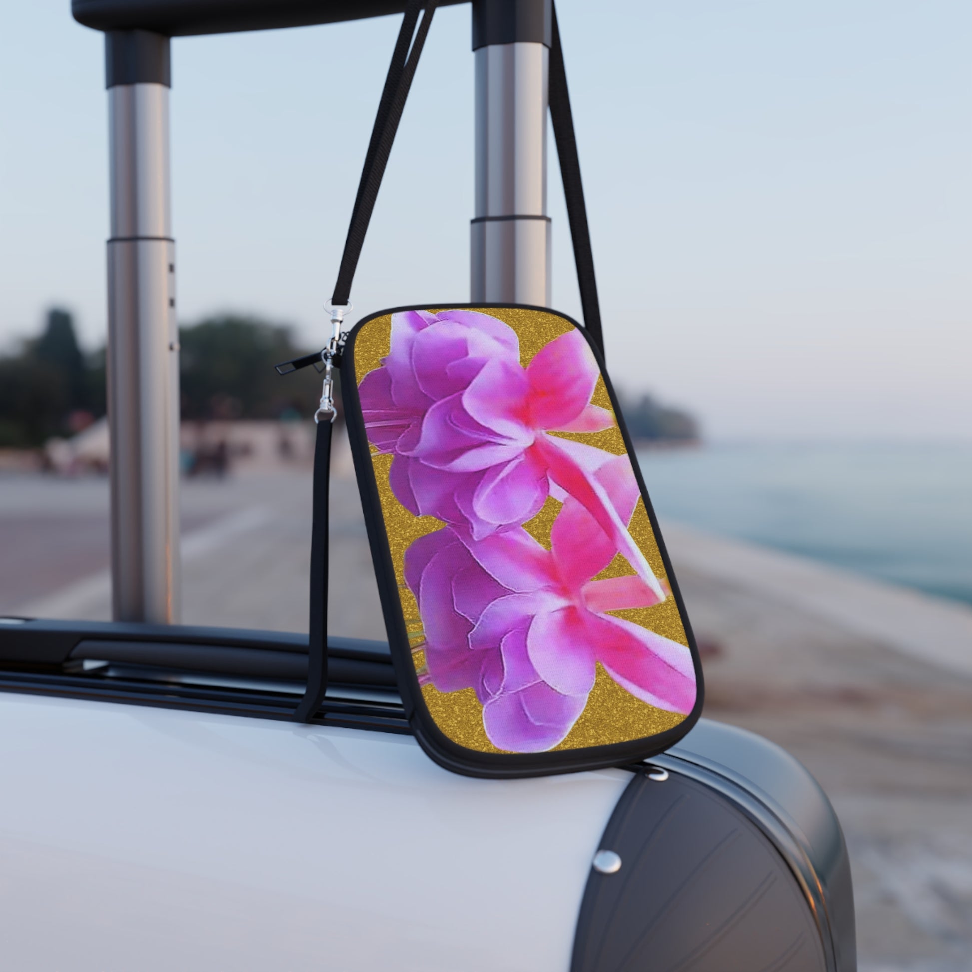 One wallet to rule them all. Lightweight and handy, this passport wallet features multiple internal compartments on both sides, and a durable, high-quality zipper for ultimate protection. It also has an additional back pocket for easy access to cards, notes and coins. Features our exclusive design made with real flower photo giving off major tropical vibes: Two Fuchsias, Gold