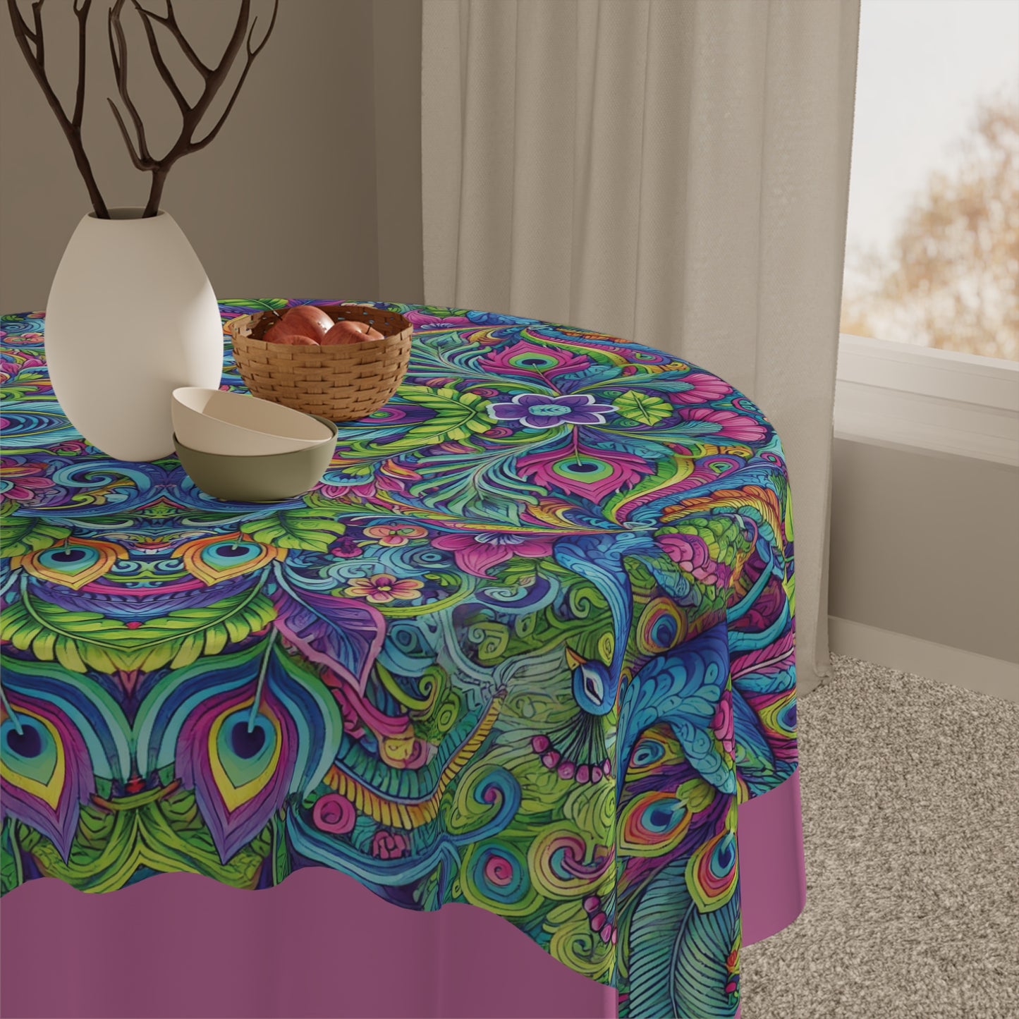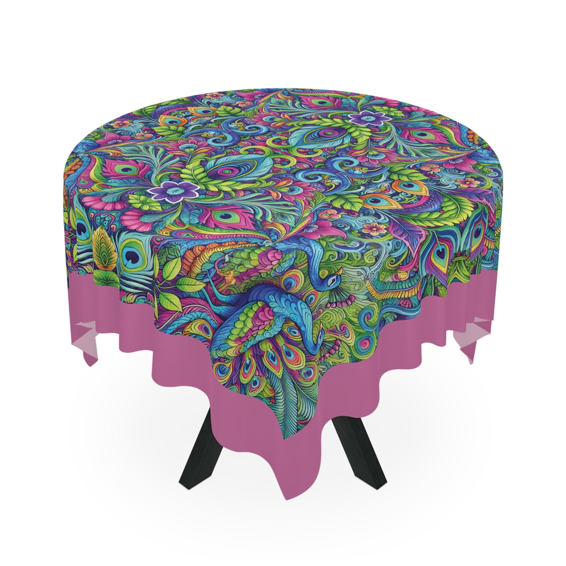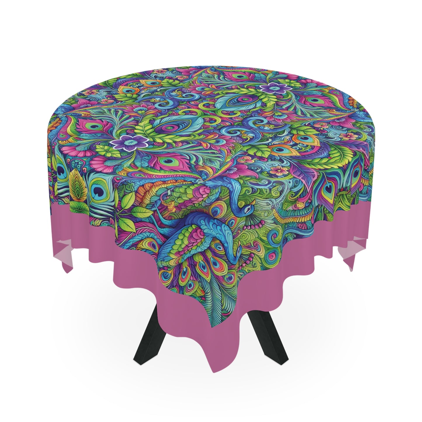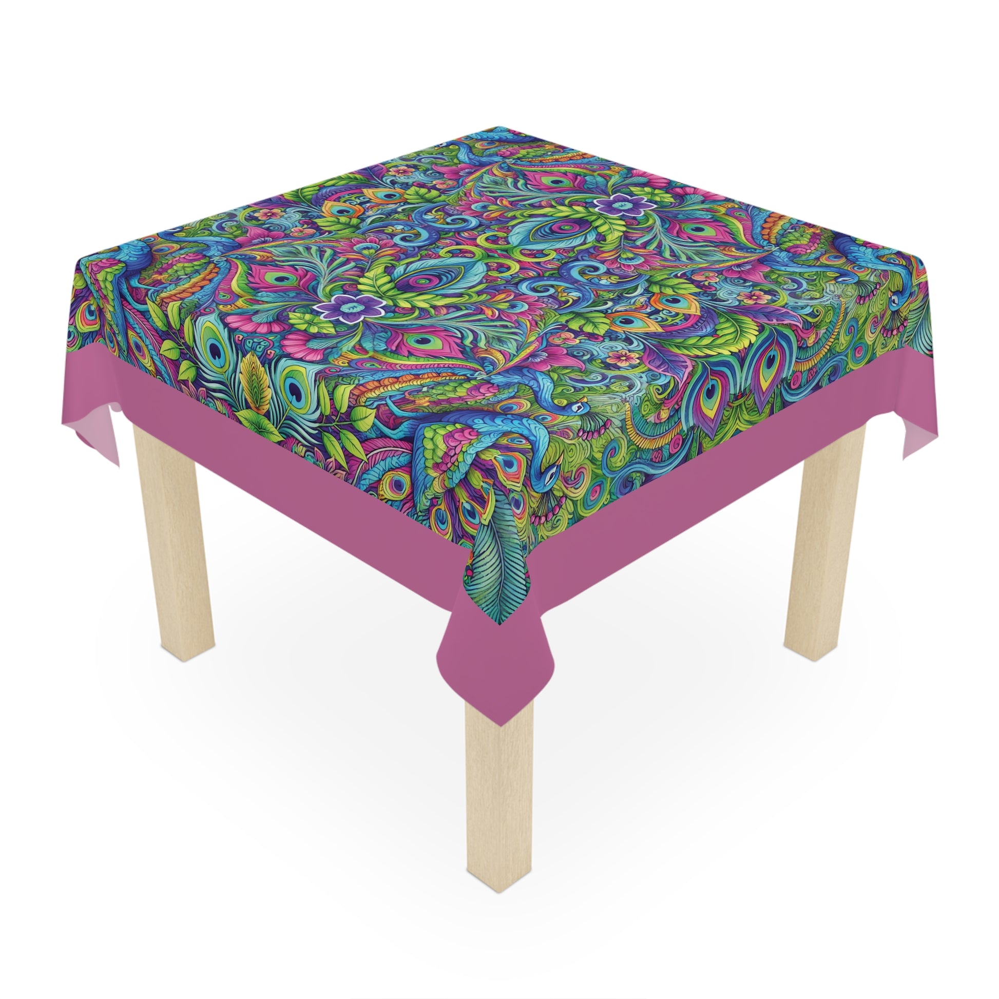 Peacock Prism/Lt. Pink ~ Square Tablecloth, 55" x 55"
