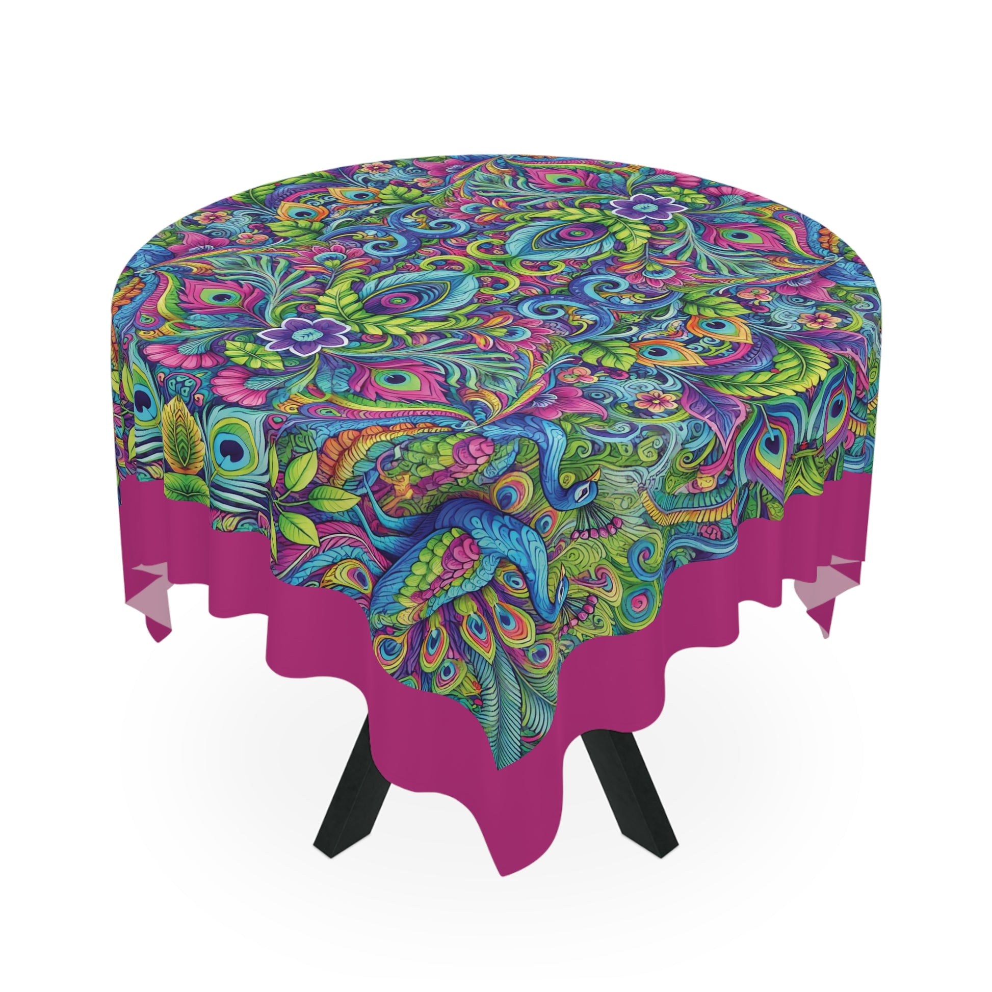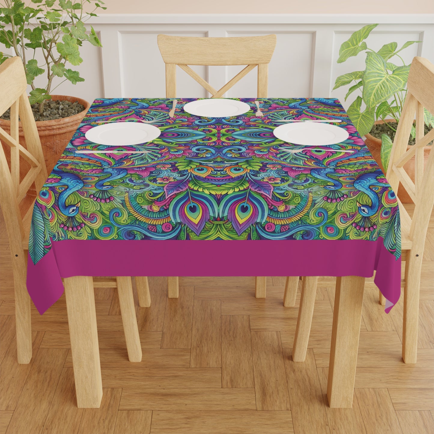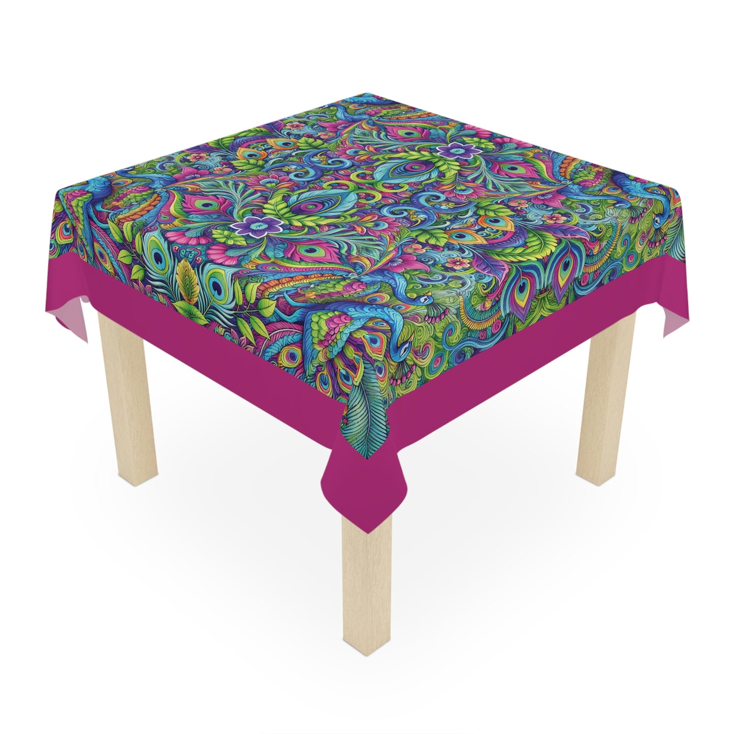 Peacock Prism/Pink ~ Square Tablecloth, 55" x 55"