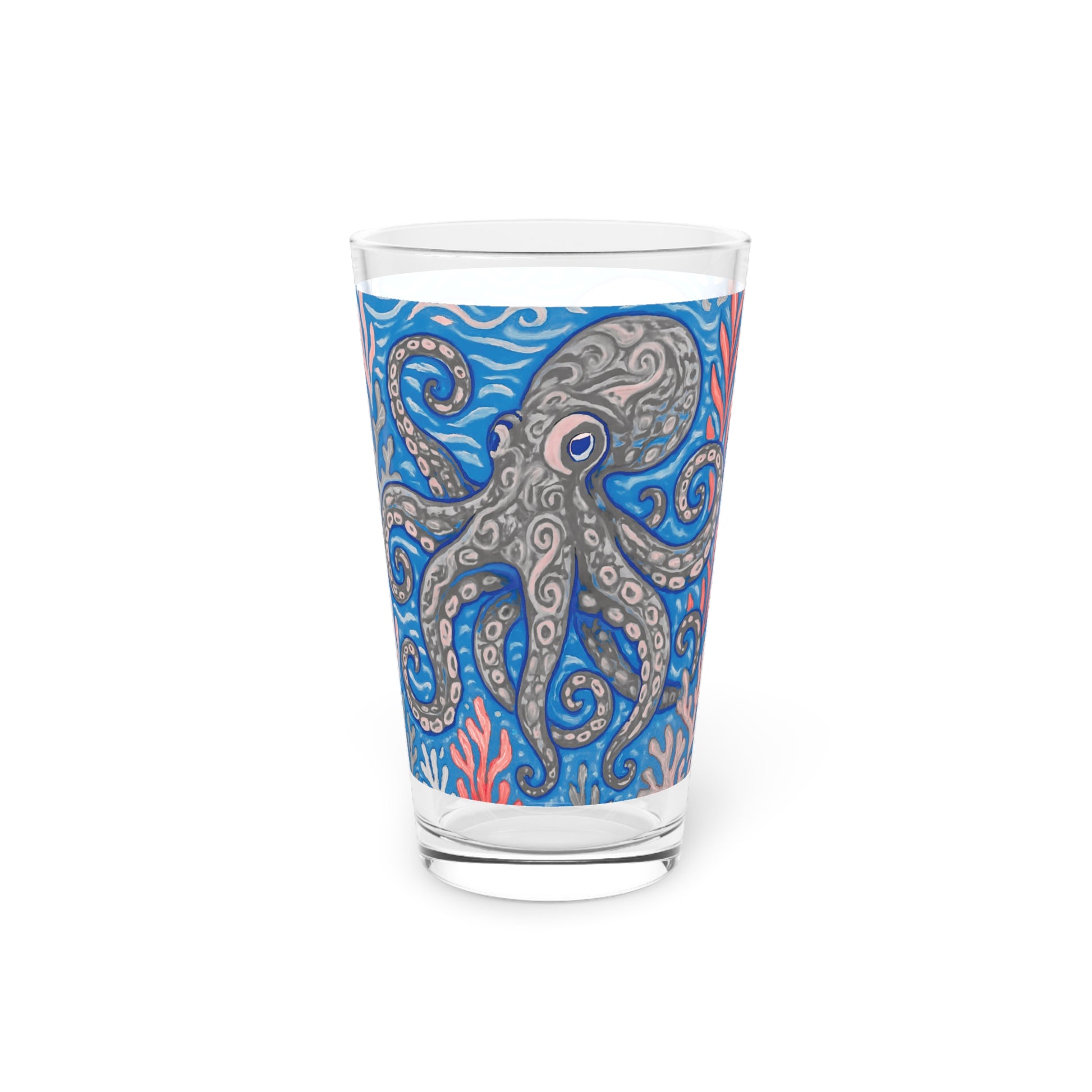 Pint Glass, 16oz - Octopus Kraken Joe, Grey